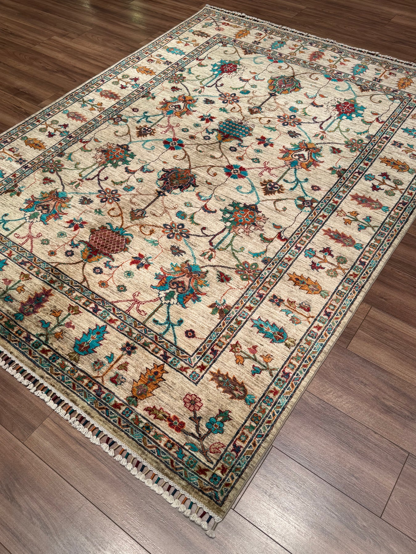 يختلف تنظيف السجاد باختلاف خامته ونوع الأوساخ. ولأن هذه السجادة مصنوعة من خيوط صوف مصبوغة بأصباغ طبيعية، فلا ينبغي استخدام شامبوهات أو منظفات السجاد التي تحتوي على مواد كيميائية. في حال انسكاب أي سائل على هذه السجادة، يجب أولاً شطف المنطقة المصابة جيدًا بمنشفة ورقية، ثم غسلها بالصابون الأبيض ومسحها بقطعة قماش. من المهم أيضًا تذكر أهمية اتخاذ الإجراءات الفورية عند حدوث أي انسكاب. إذا بقي السائل المنسكب على السجادة لفترة طويلة دون مسح، ستلتصق البقعة بالنسيج وتصبح إزالتها أصعب بكثير. أخيرًا، ننصحك بتنظيف هذه السجادة بواسطة منظف سجاد محترف تثق به ومتخصص في تنظيف السجاد المنسوج يدويًا. إذا كنت تعيش في إسطنبول، تواصل معنا لتنظيف السجاد.