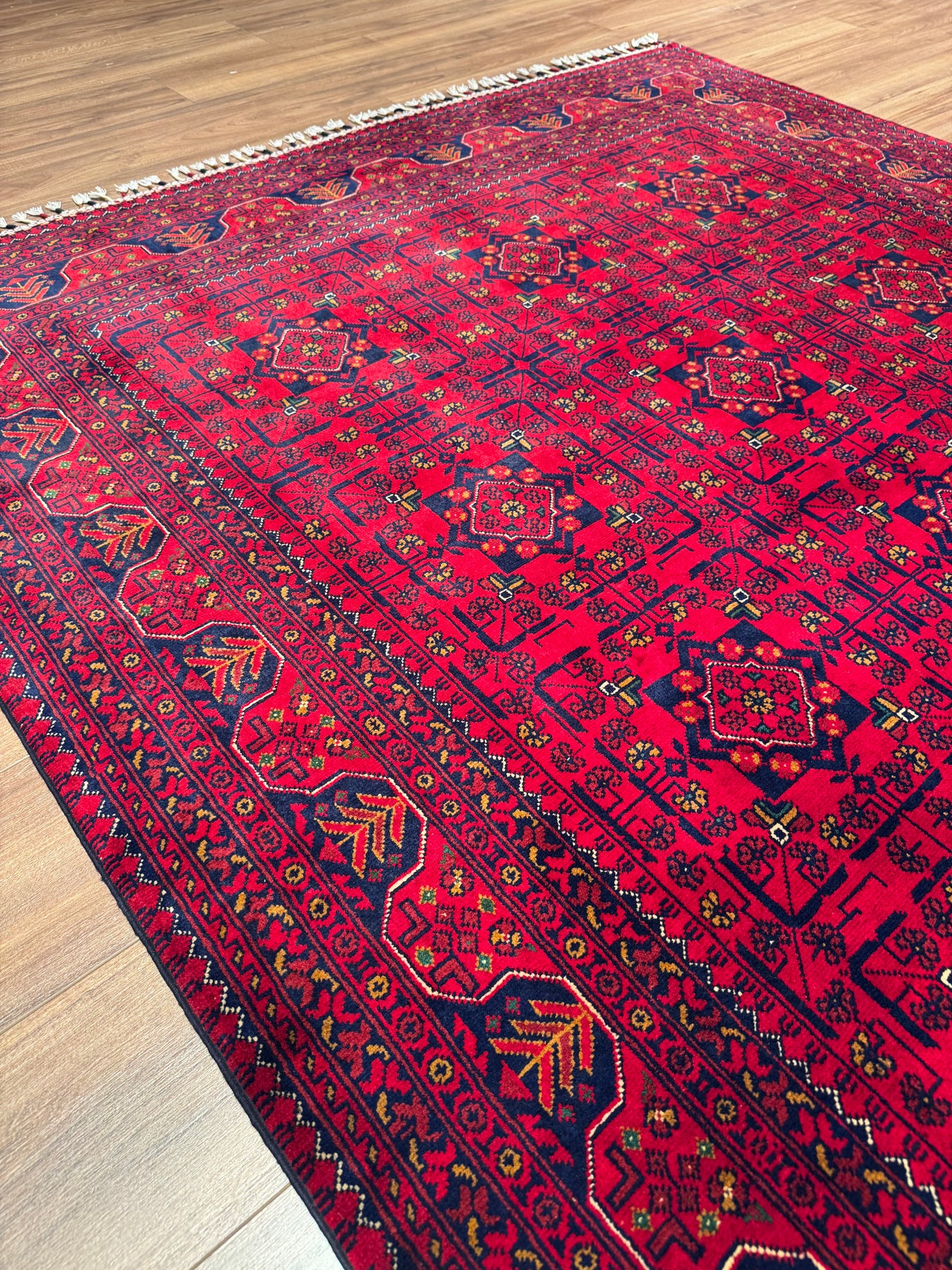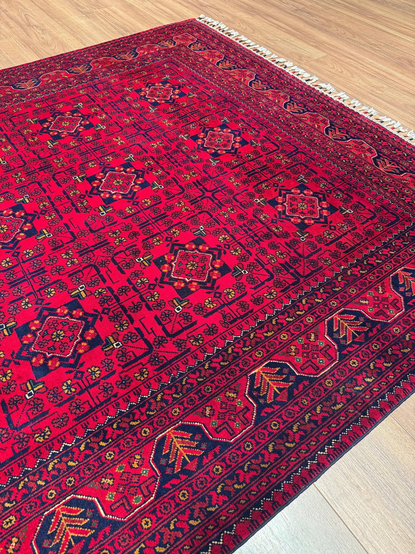 Halı temizliği, halının malzemesine ve kirin türüne göre değişmektedir. Bu halımız kök boya ile boyanmış yün ipliklerden yapılmış olduğundan, kimyasal madde içeren halı şampuanı veya detarjan kullanılmamalıdır. Bu halının üzerine herhangi bir sıvı döküldüğünde, ilgili kısmı öncelikle bir kağıt havlu ile iyice durulayıp; daha sonrasında ise beyaz kalıp sabunu köpürterek bir bez ile ilgili kısım silinmelidir. Şu husus da ayrıca unutulmamalıdır ki, halının üzerine bir şey döküldüğünde acil müdahale çok önemlidir. Dökülen sıvı, halı üzerinde silinmeden uzun bir süre kalırsa leke çözgüye iner ve çıkması çok daha zor bir hal alır. Son olarak, bu halımızın yıkamasını güvendiğiniz ve el dokuması halı yıkayan profesyonel bir halı yıkamacıya vermenizi tavsiye etmekteyiz. İstanbul’da ikamet etmekte iseniz halı yıkama için bizimle iletişime geçebilirsiniz.