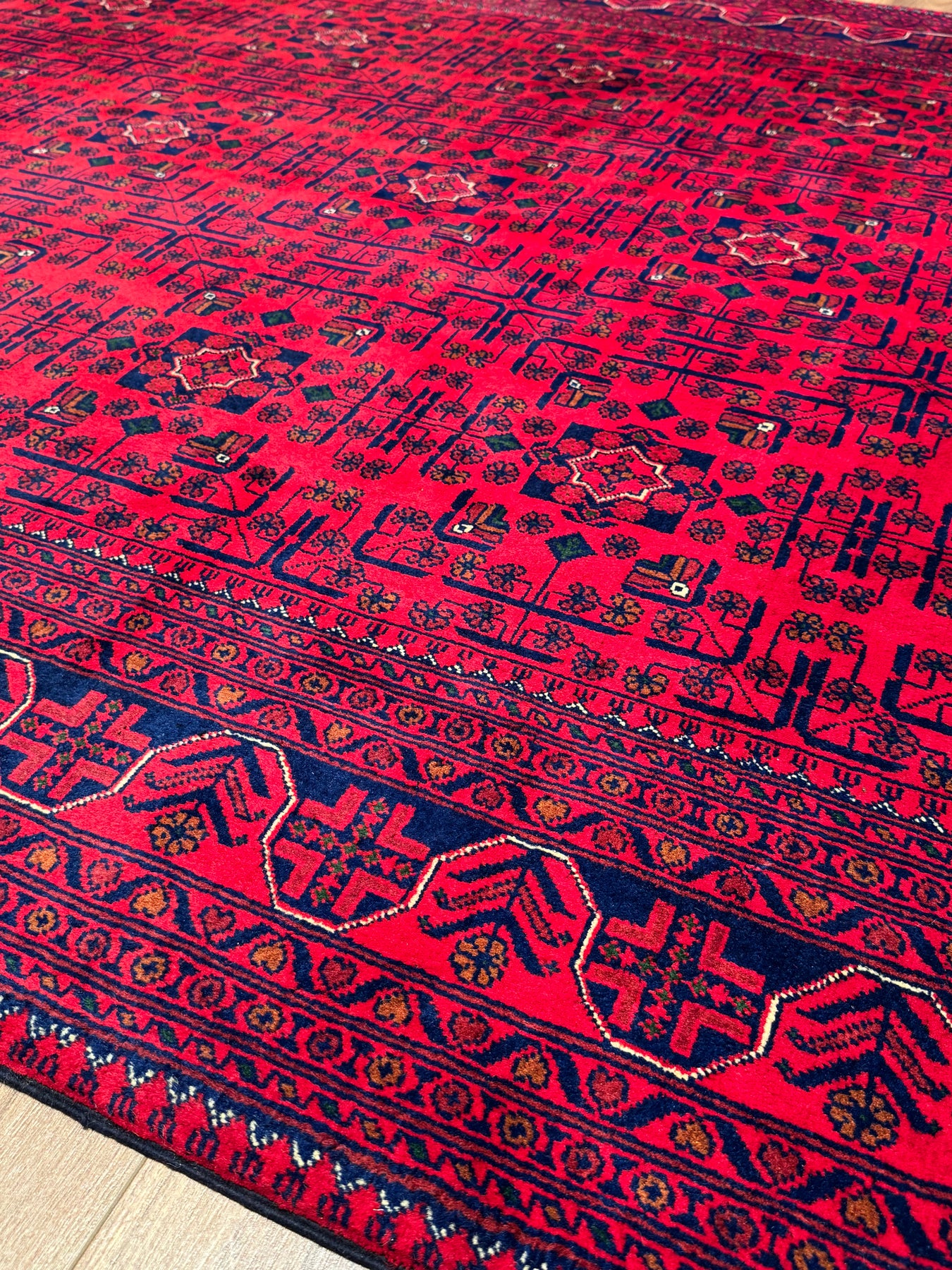 Halı temizliği, halının malzemesine ve kirin türüne göre değişmektedir. Bu halımız kök boya ile boyanmış yün ipliklerden yapılmış olduğundan, kimyasal madde içeren halı şampuanı veya detarjan kullanılmamalıdır. Bu halının üzerine herhangi bir sıvı döküldüğünde, ilgili kısmı öncelikle bir kağıt havlu ile iyice durulayıp; daha sonrasında ise beyaz kalıp sabunu köpürterek bir bez ile ilgili kısım silinmelidir. Şu husus da ayrıca unutulmamalıdır ki, halının üzerine bir şey döküldüğünde acil müdahale çok önemlidir. Dökülen sıvı, halı üzerinde silinmeden uzun bir süre kalırsa leke çözgüye iner ve çıkması çok daha zor bir hal alır. Son olarak, bu halımızın yıkamasını güvendiğiniz ve el dokuması halı yıkayan profesyonel bir halı yıkamacıya vermenizi tavsiye etmekteyiz. İstanbul’da ikamet etmekte iseniz halı yıkama için bizimle iletişime geçebilirsiniz.