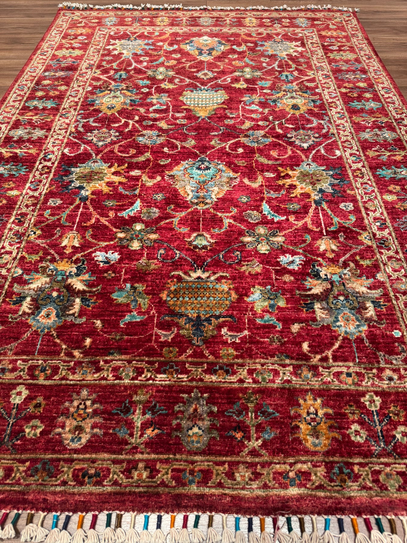 Halı temizliği, halının malzemesine ve kirin türüne göre değişmektedir. Bu halımız kök boya ile boyanmış yün ipliklerden yapılmış olduğundan, kimyasal madde içeren halı şampuanı veya deterjan kullanılmamalıdır. Bu halının üzerine herhangi bir sıvı döküldüğünde, ilgili kısmı öncelikle bir kağıt havlu ile iyice durulayıp; daha sonrasında ise beyaz kalıp sabunu köpürterek bir bez ile ilgili kısım silinmelidir. Şu husus da ayrıca unutulmamalıdır ki, halının üzerine bir şey döküldüğünde acil müdahale çok önemlidir. Dökülen sıvı, halı üzerinde silinmeden uzun bir süre kalırsa leke çözgüye iner ve çıkması çok daha zor bir hal alır. Son olarak, bu halımızın yıkamasını güvendiğiniz ve el dokuması halı yıkayan profesyonel bir halı yıkamacıya vermenizi tavsiye etmekteyiz. İstanbul’da ikamet etmekte iseniz halı yıkama için bizimle iletişime geçebilirsiniz.