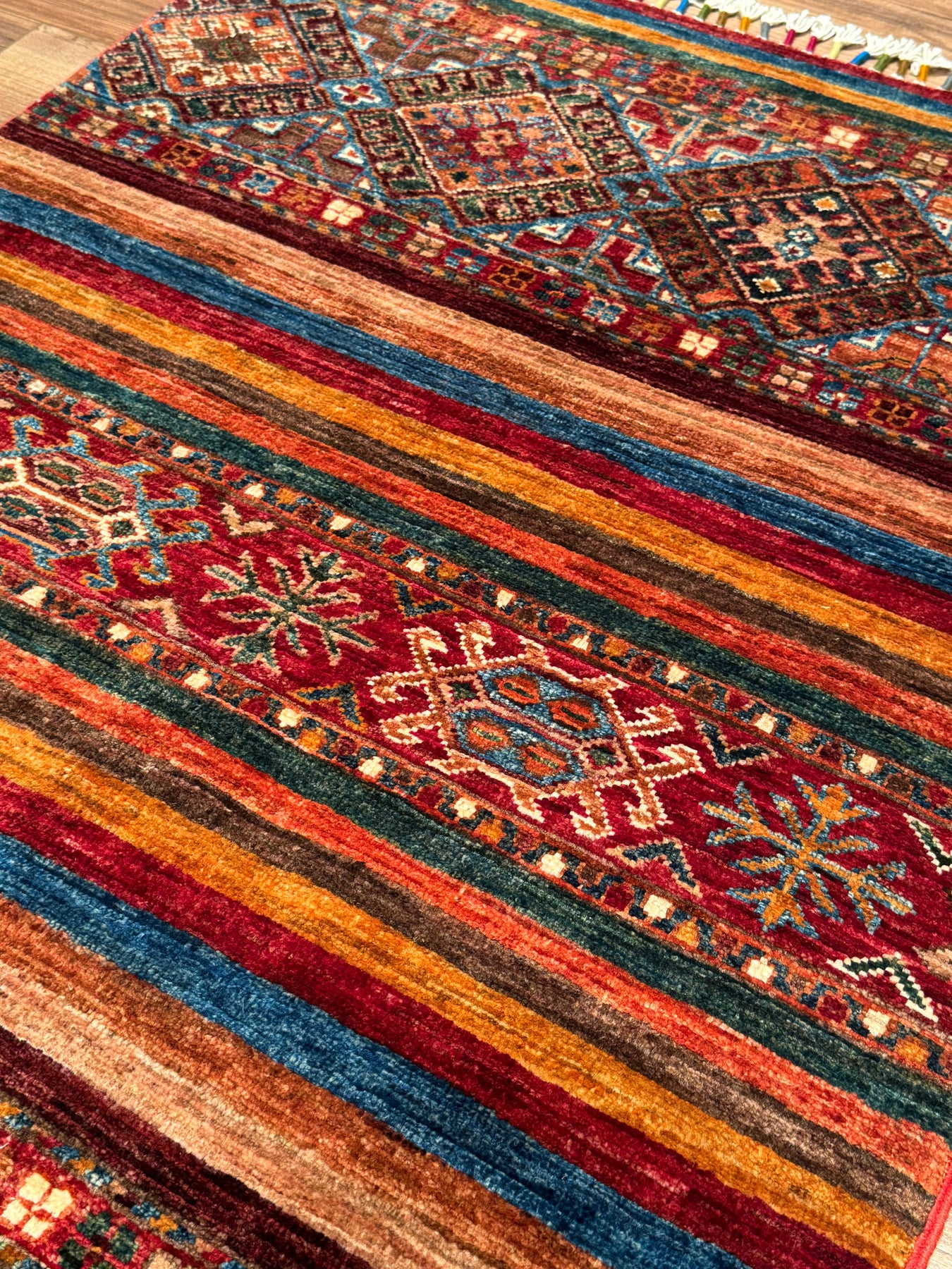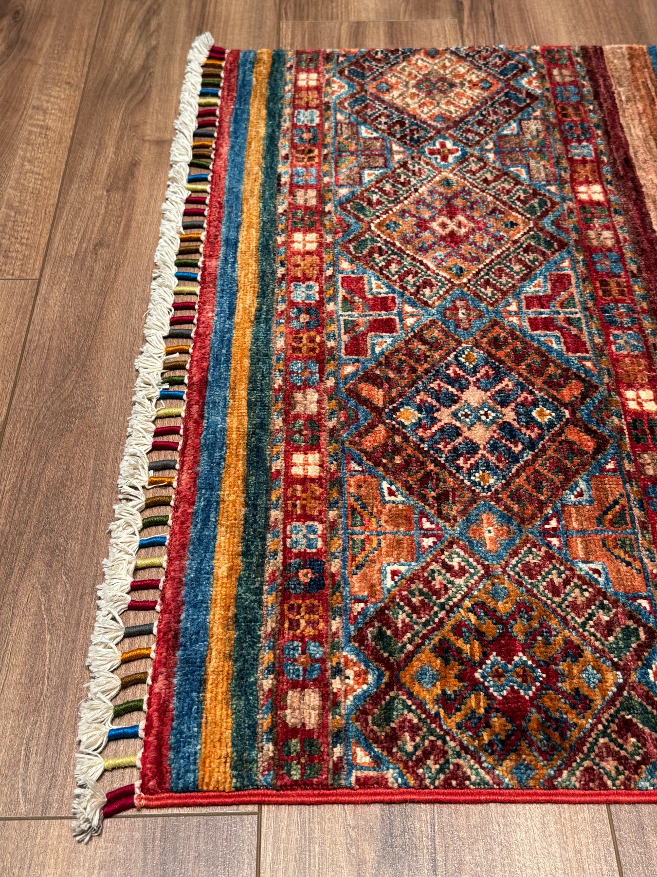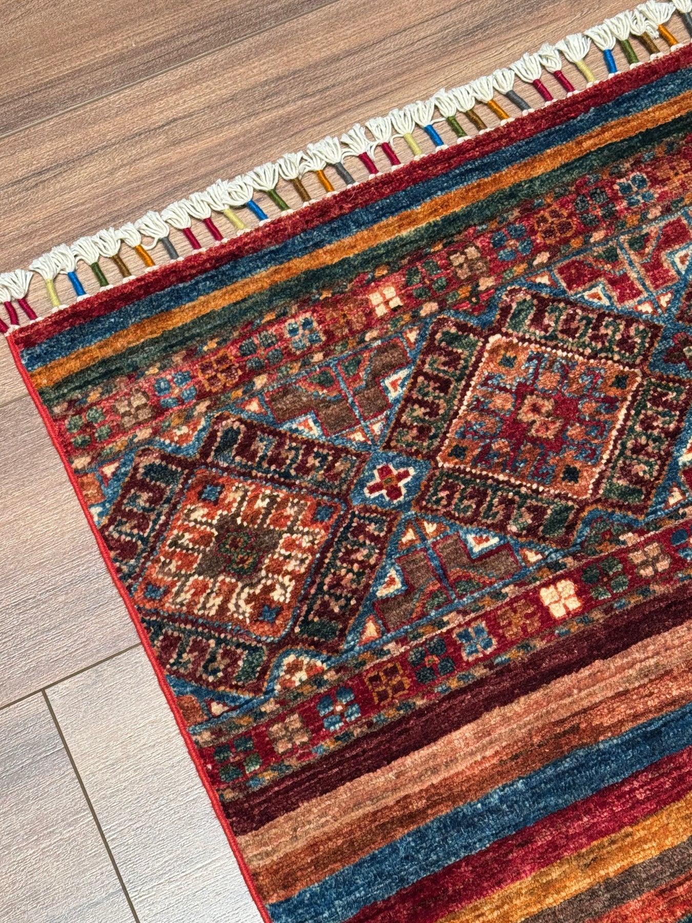 سجادة صوف خورجين الأصلية، منسوجة يدويًا، متعددة الجذور، 0.80×126، 1.01 متر مربع - 3×4 قدم