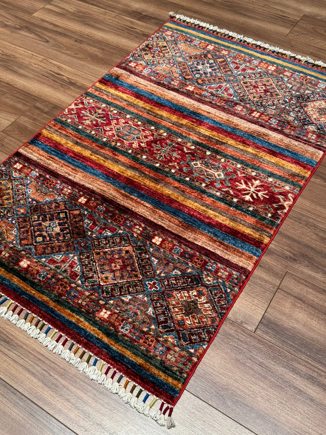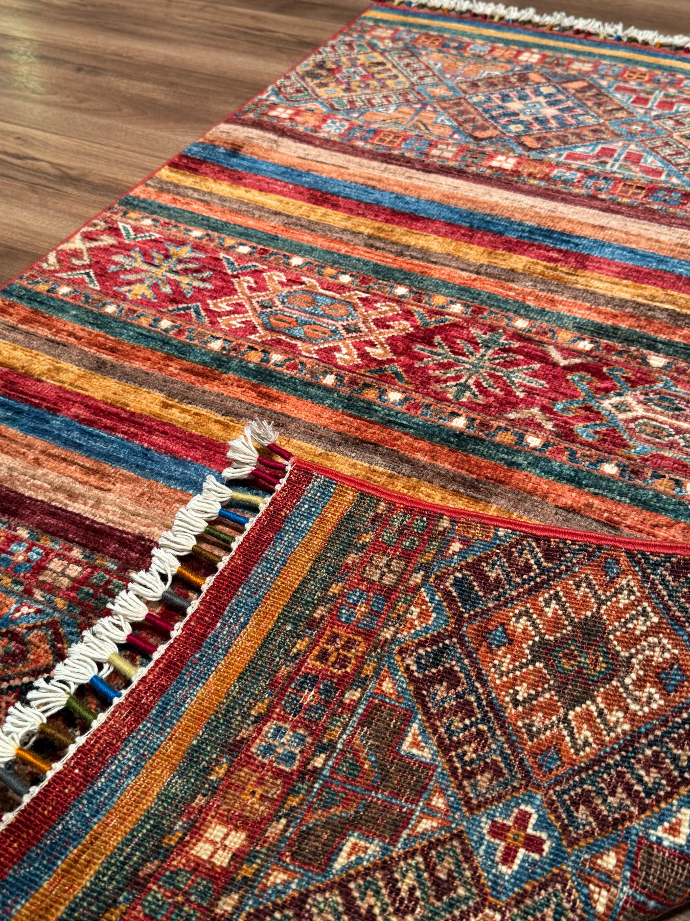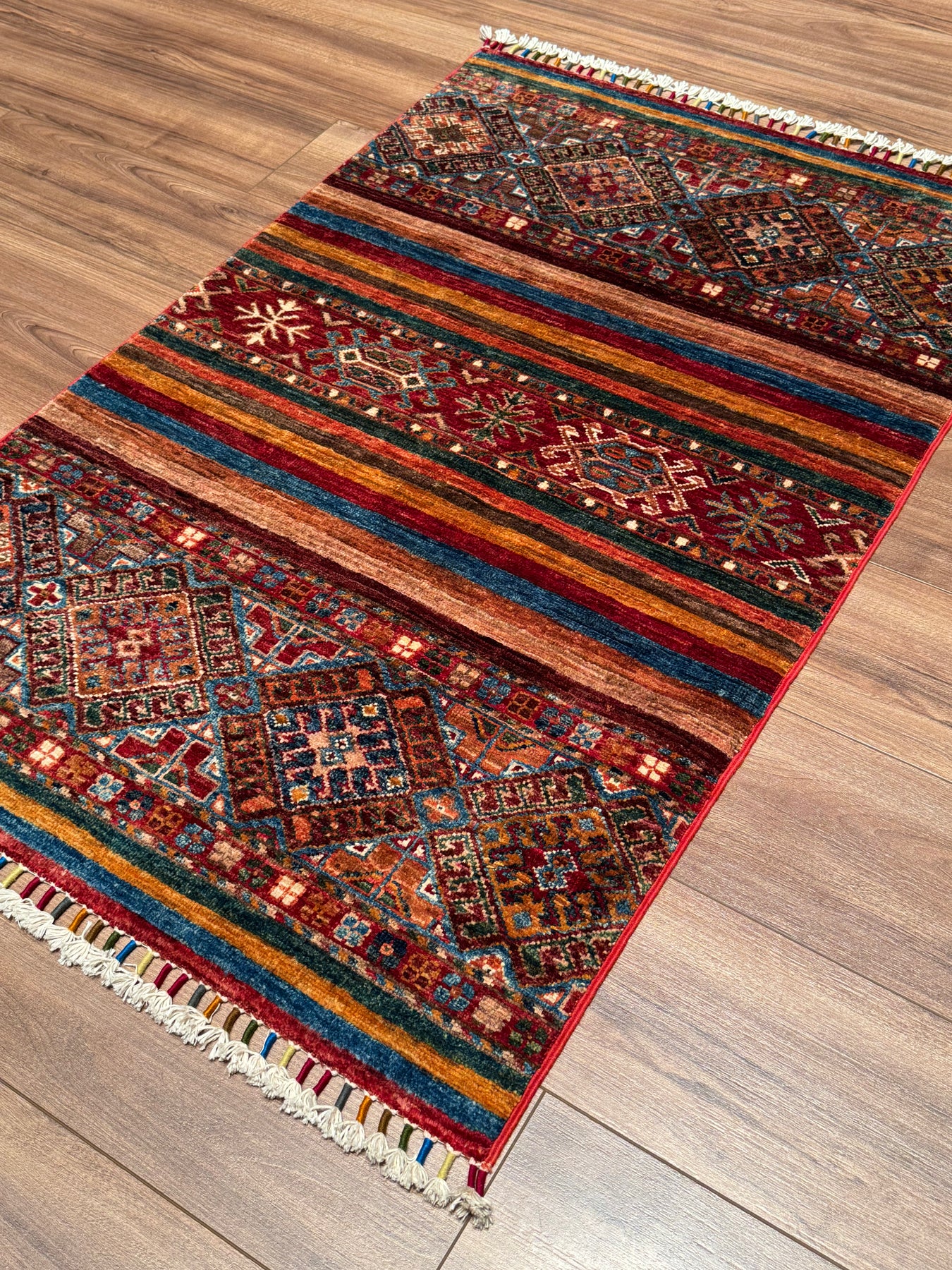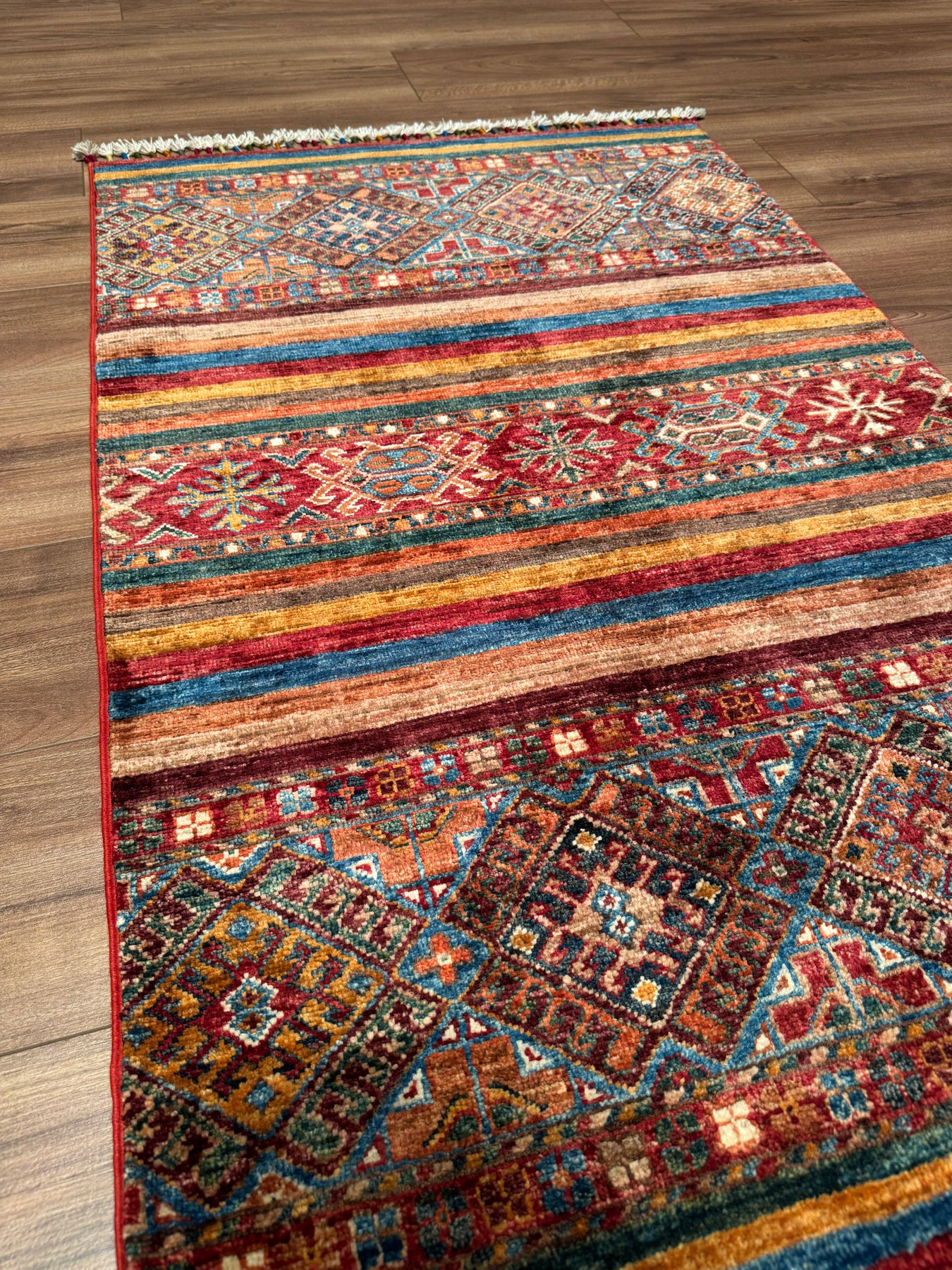 سجادة صوف خورجين الأصلية، منسوجة يدويًا، متعددة الجذور، 0.80×126، 1.01 متر مربع - 3×4 قدم