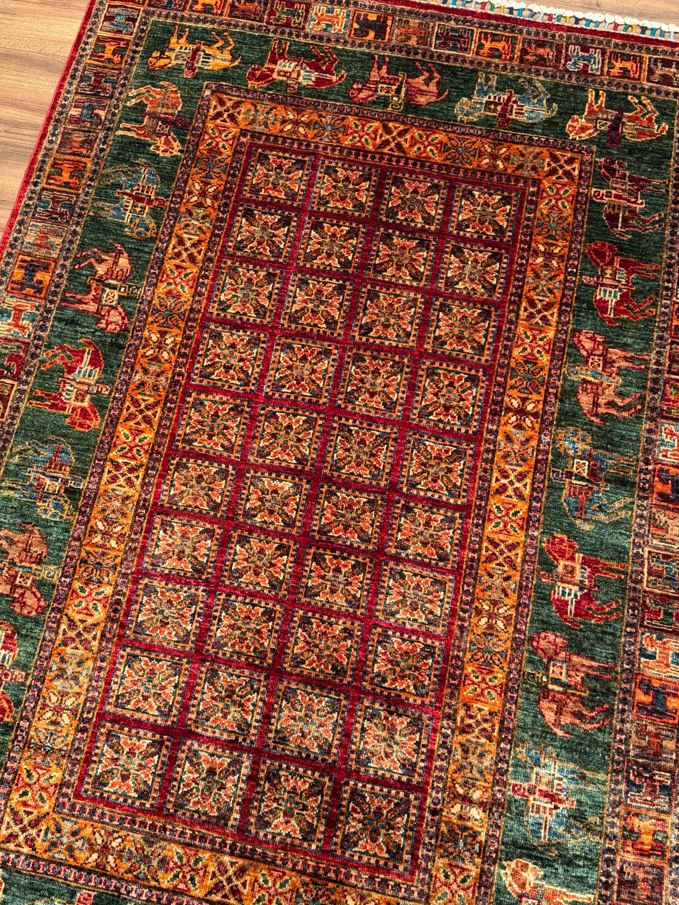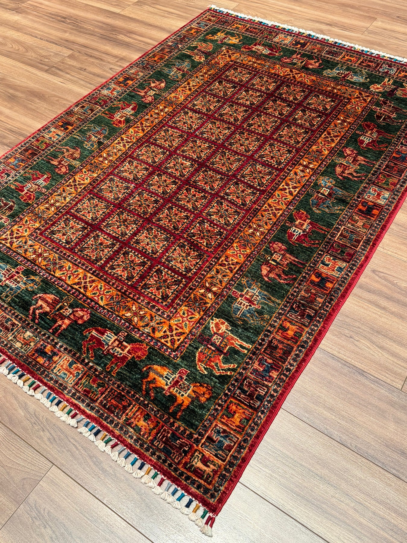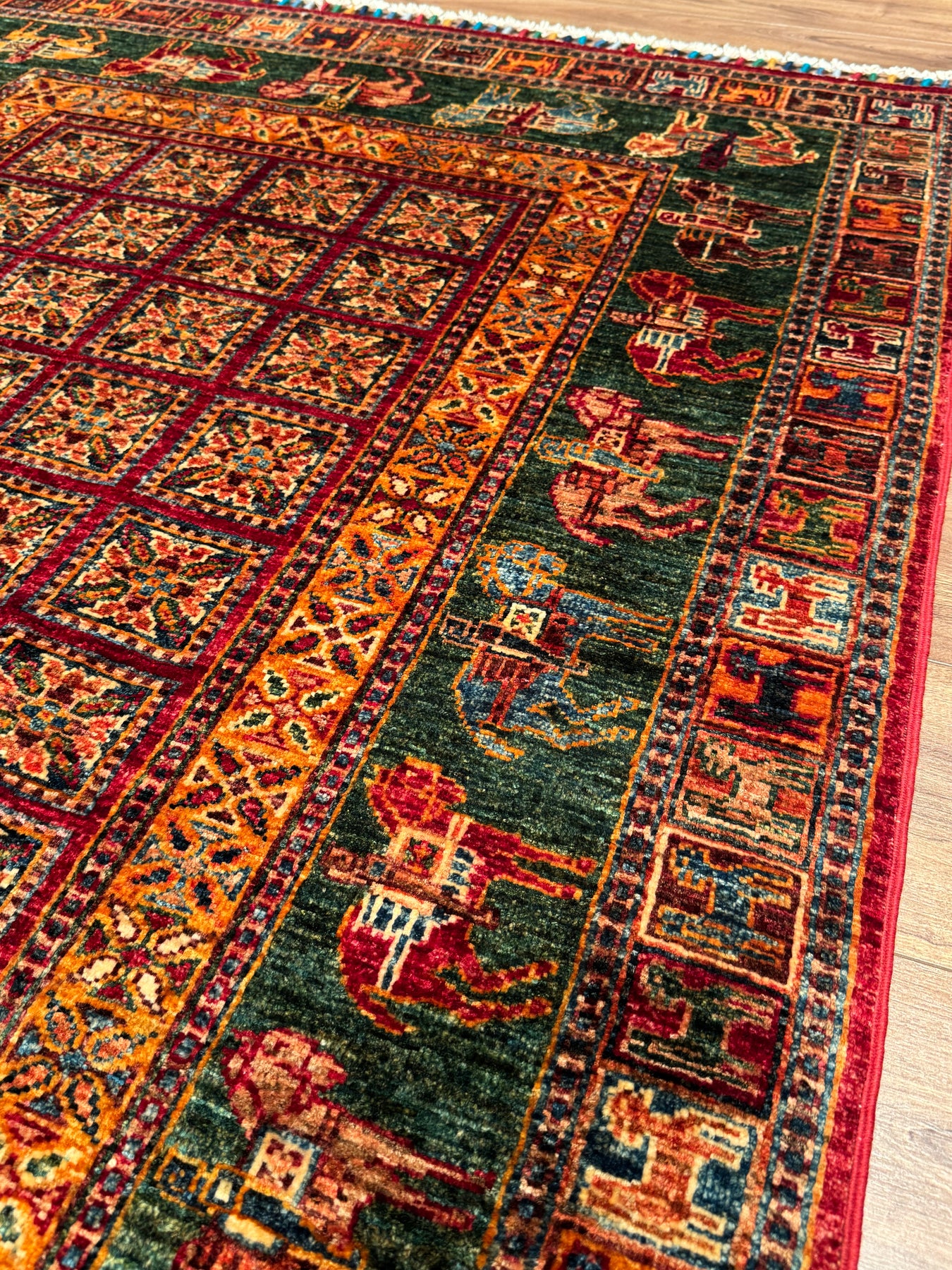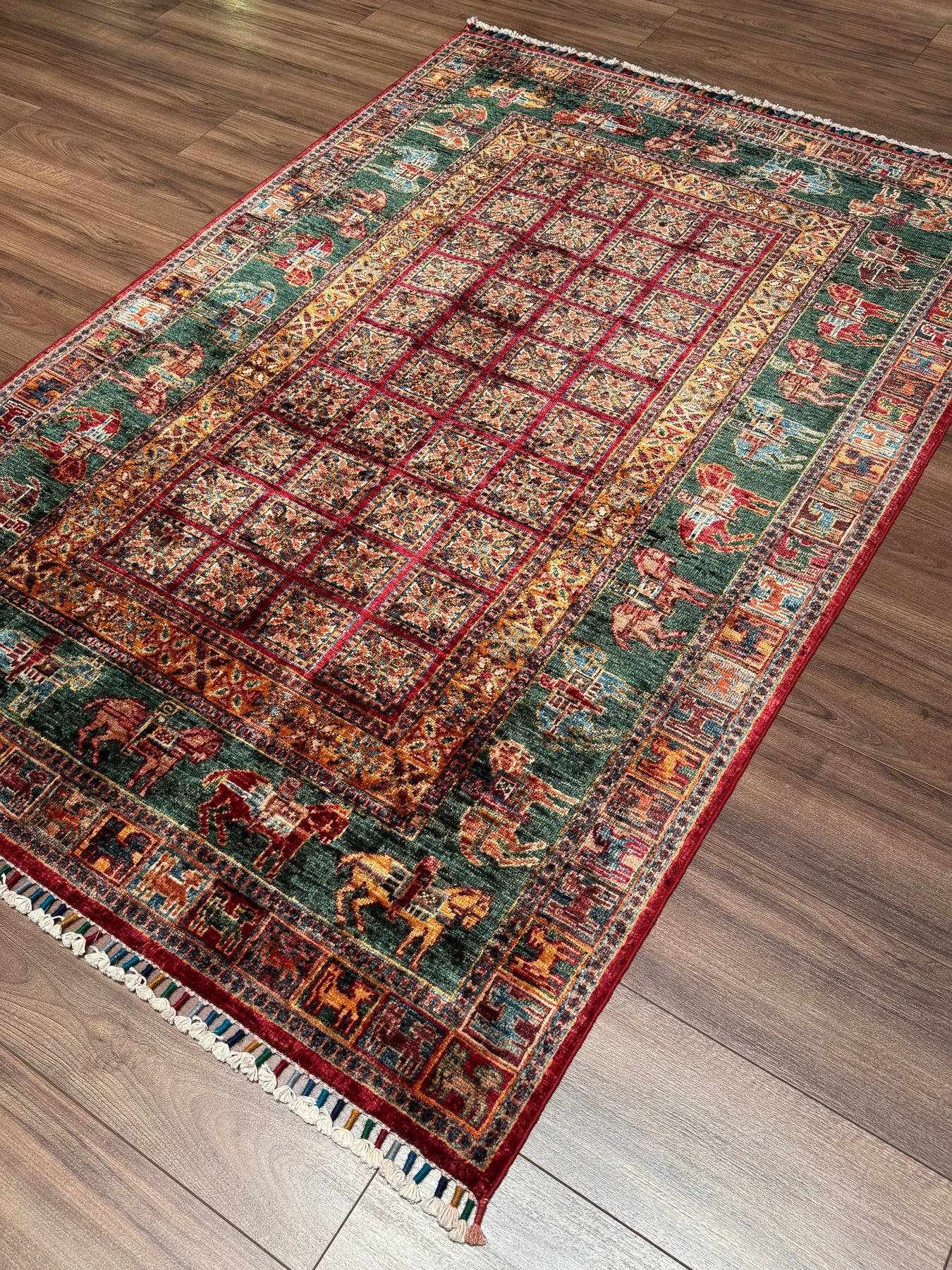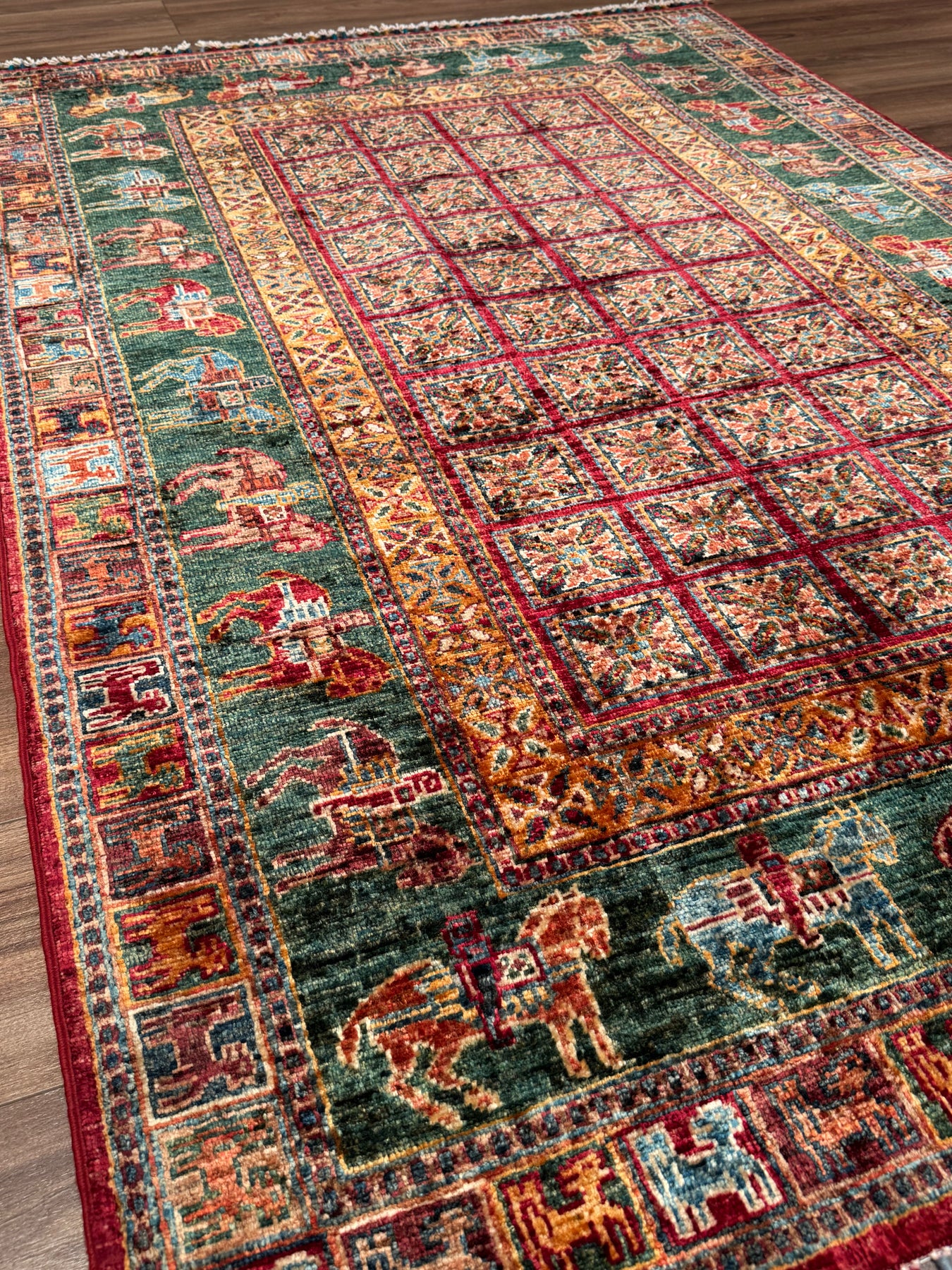 سجادة صوف أصلية من Pazırık منسوجة يدويًا ومُصبغة بجذور متعددة، 126×184، 2.32 متر مربع - 4×6 قدم