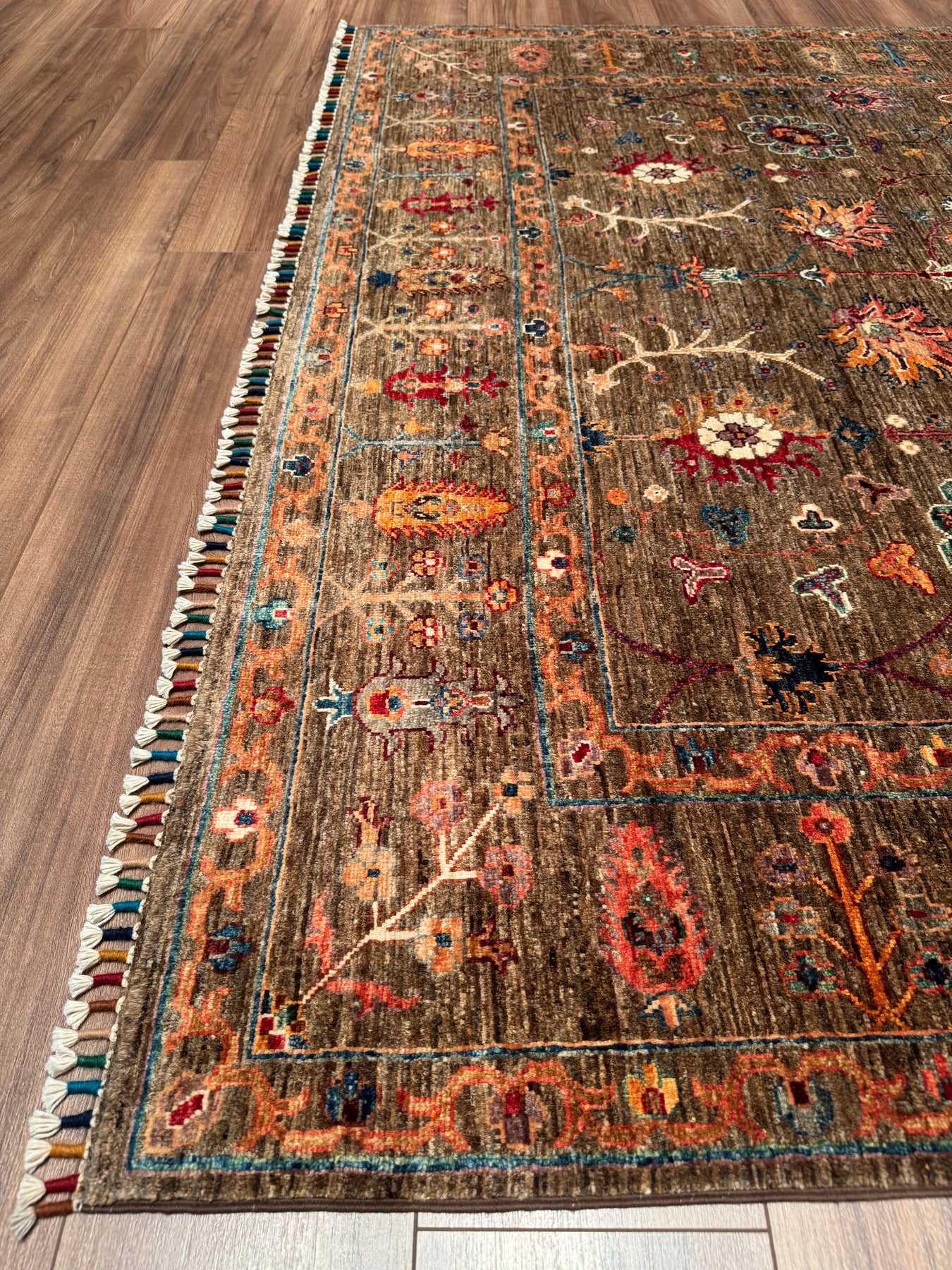 السدى واللحمة لهذه السجادة مصنوعان من خيوط قطنية. الخيوط نفسها مصنوعة يدويًا بالكامل باستخدام صبغة طبيعية. خيوط الصوف المستخدمة في العقد مصبوغة باستخدام أصباغ طبيعية، أي الفوة. على سبيل المثال، للحصول على اللون الأحمر، تُغلى خيوط الصوف مع بتلات الورد، التي تأخذ لون بتلة الورد؛ وتُسمى الخيوط المصبوغة بهذه الطريقة خيوط مصبوغة بالفوة. تصبح السجاد المصنوعة من خيوط مصبوغة بالفوة أكثر لمعانًا مع الاستخدام. علاوة على ذلك، تُعد هذه السجادة سجادة عالية الجودة من حيث كثافة النسيج، حيث منسوجة باستخدام العقدة التركية، والمعروفة أيضًا بتقنية العقدة المزدوجة. هذه الميزة تجعلها أكثر متانة ولها عمر أطول من السجاد الفارسي. وأخيرًا، تم استخدام ما يقرب من مليون خيط معقود يدويًا في نسج هذه السجادة.