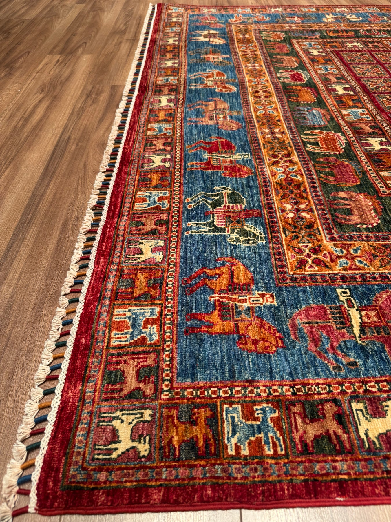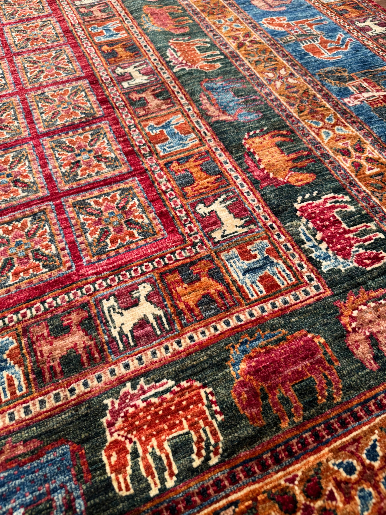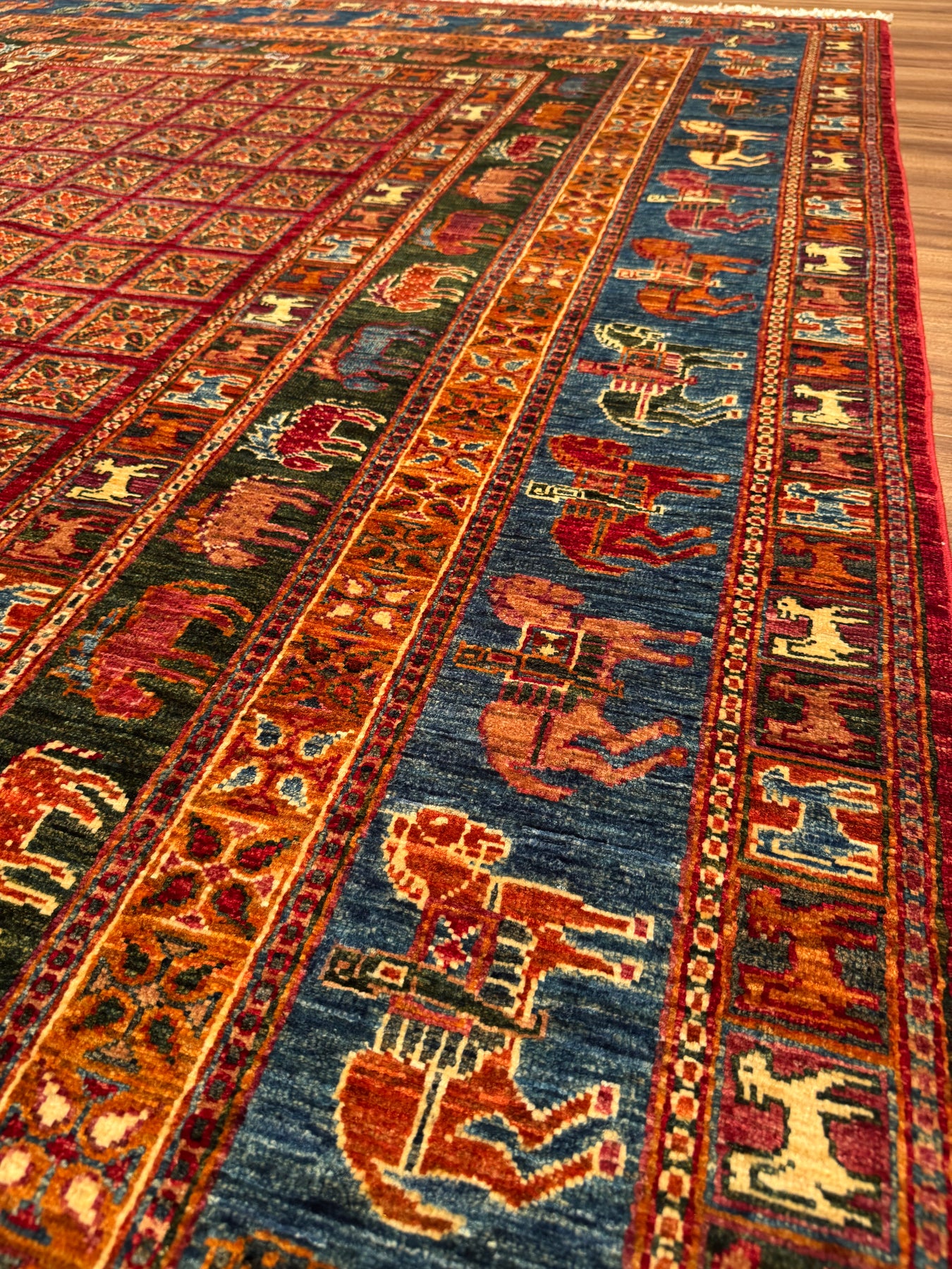 سجادة صوف أصلية من Pazırık منسوجة يدويًا ومتعددة الجذور ومُصبغة يدويًا 206 × 300 6.18 متر مربع - 7 × 10 قدم