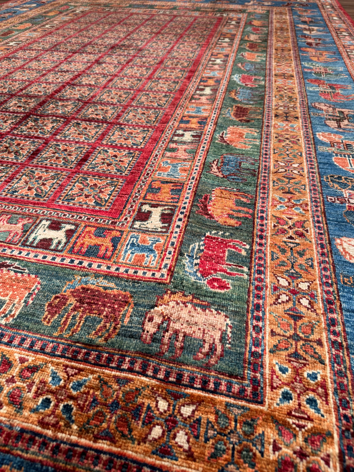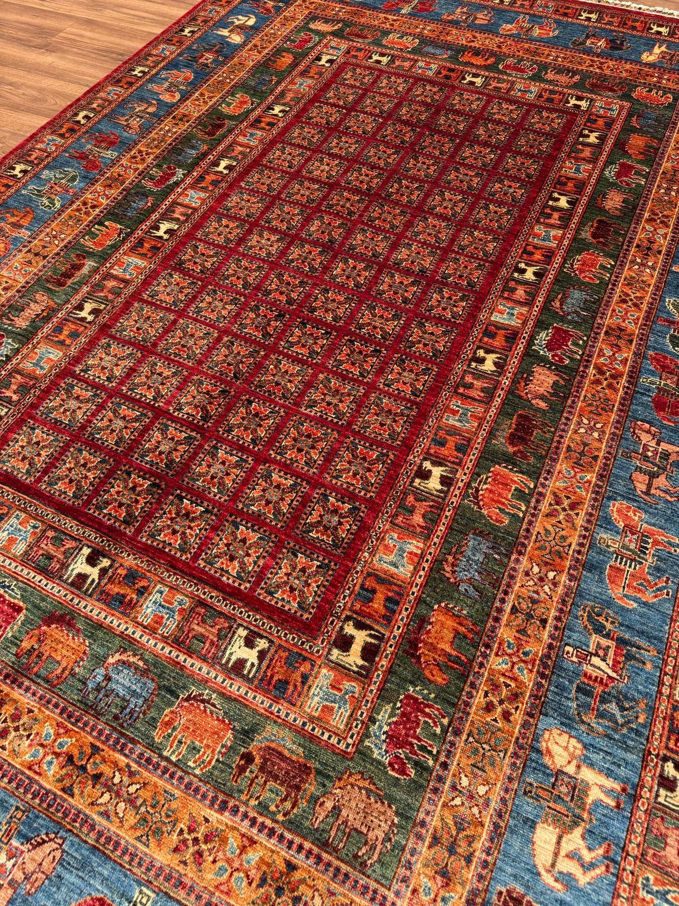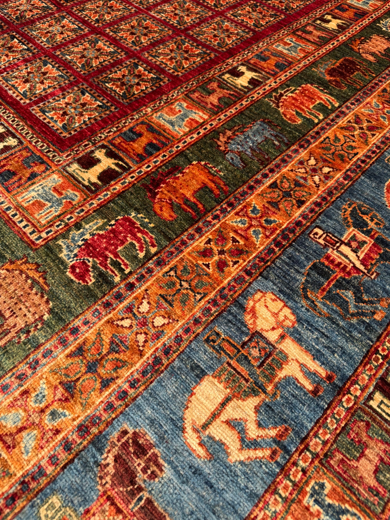 سجادة صوف أصلية من Pazırık منسوجة يدويًا ومُصبغة بجذور متعددة 213 × 320 6.82 متر مربع - 7 × 10 قدم