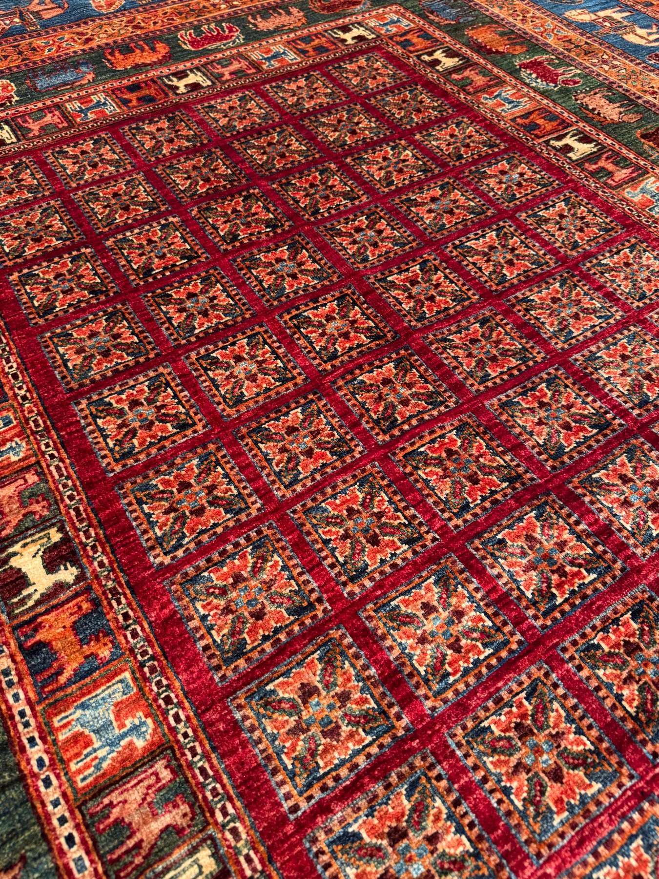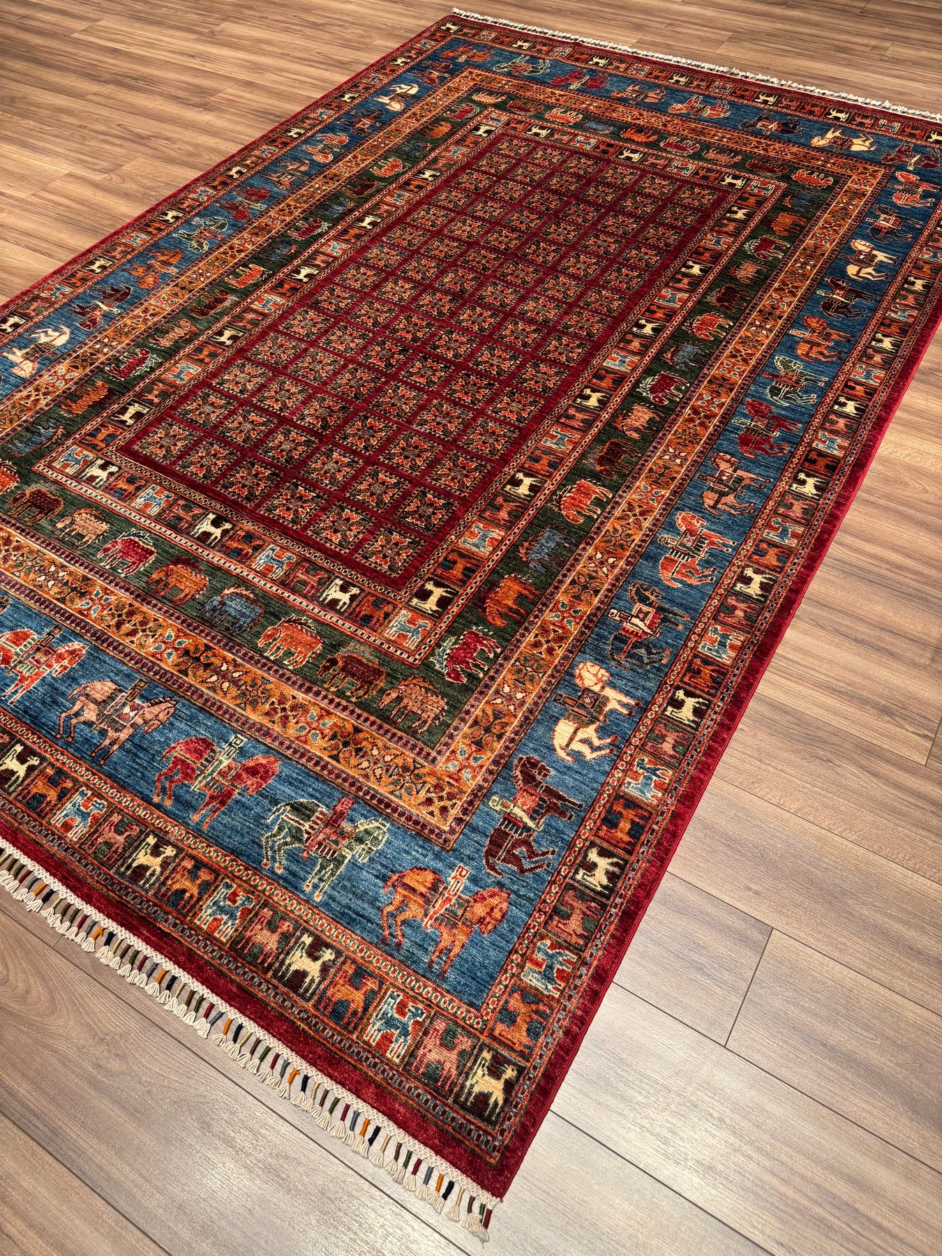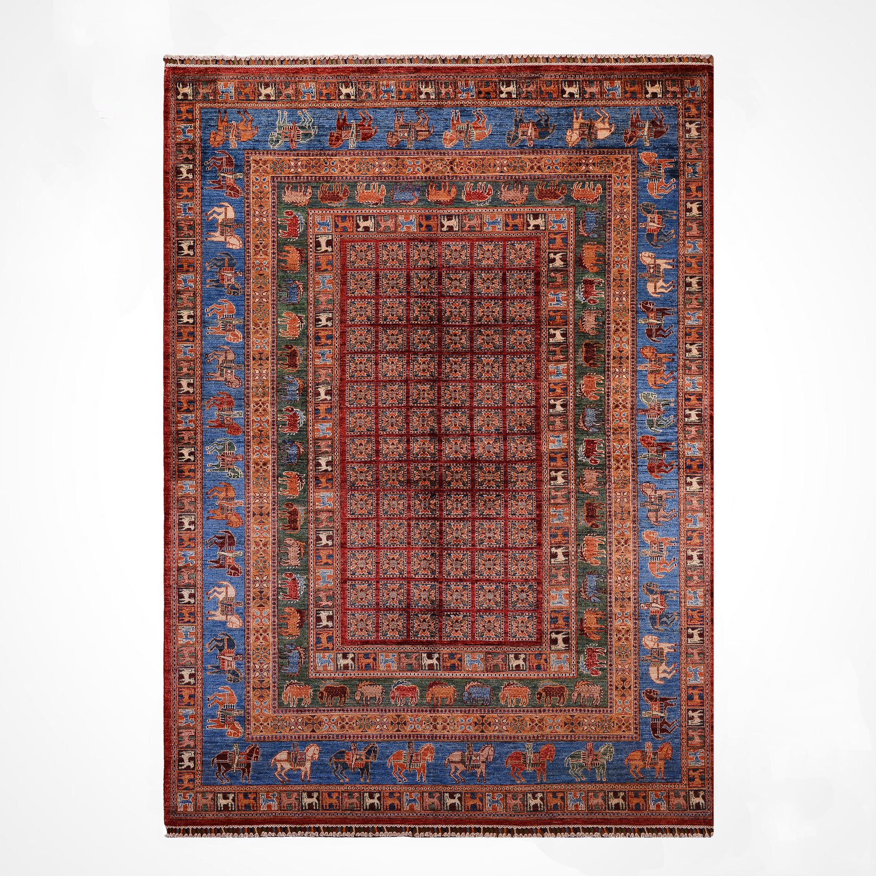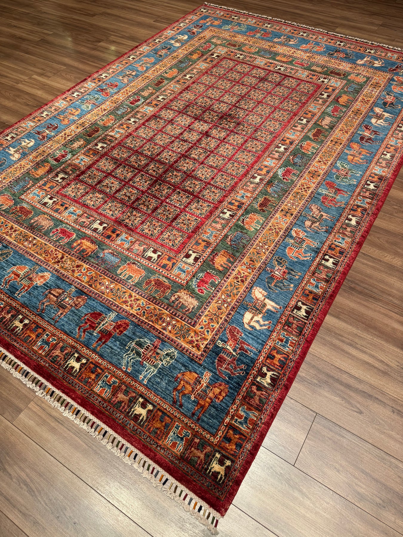 سجادة صوف أصلية من Pazırık منسوجة يدويًا ومُصبغة بجذور متعددة 213 × 320 6.82 متر مربع - 7 × 10 قدم