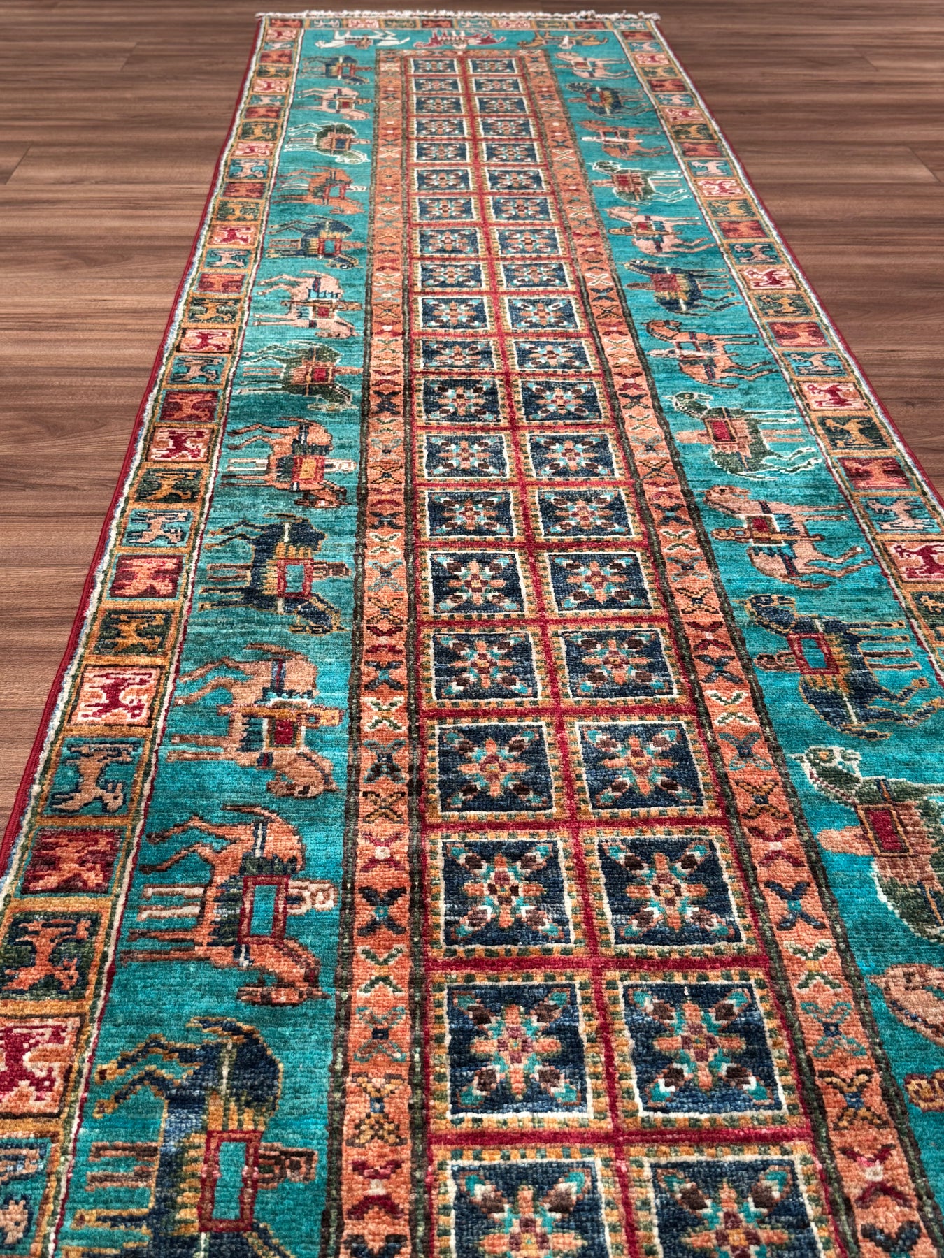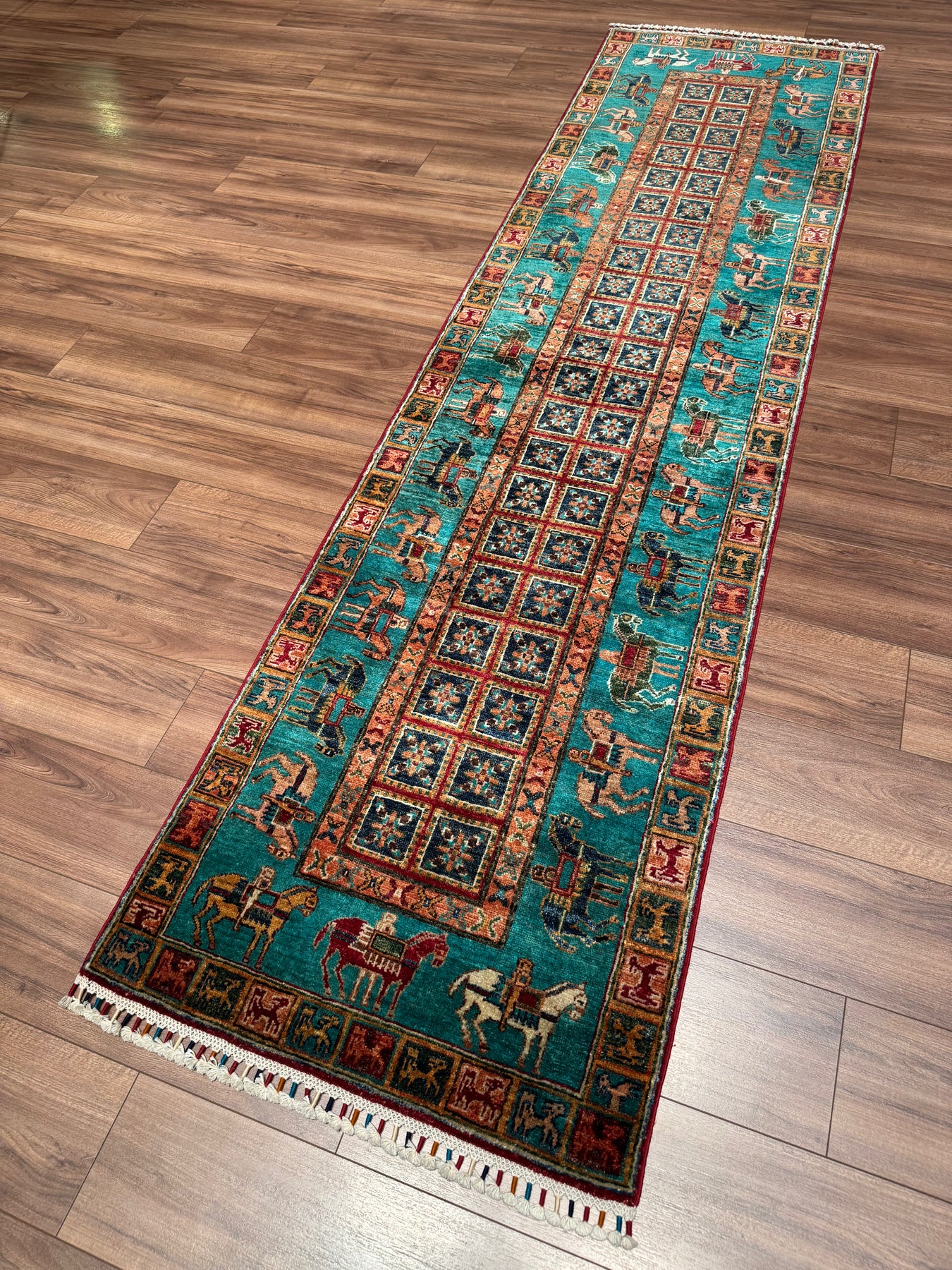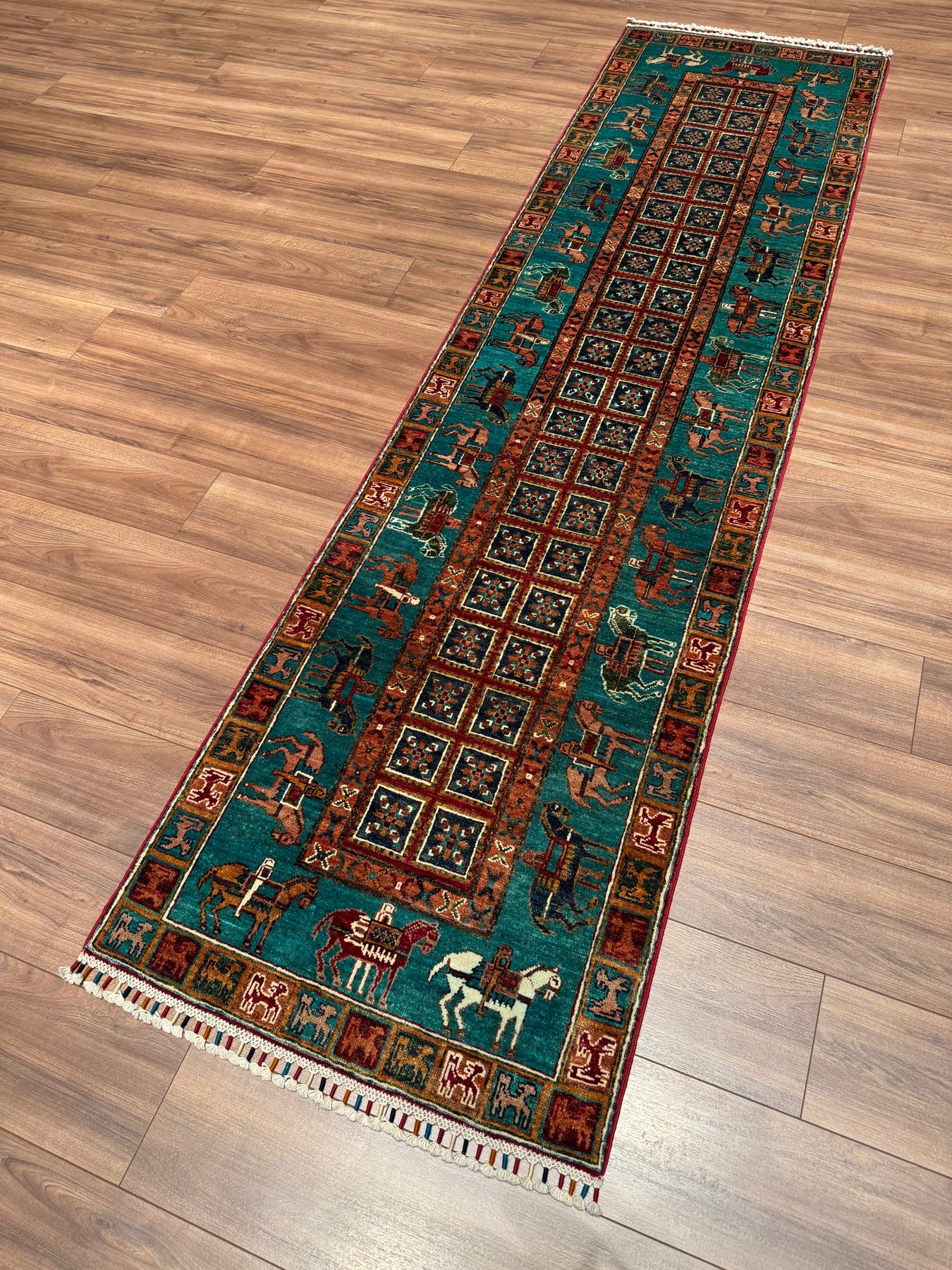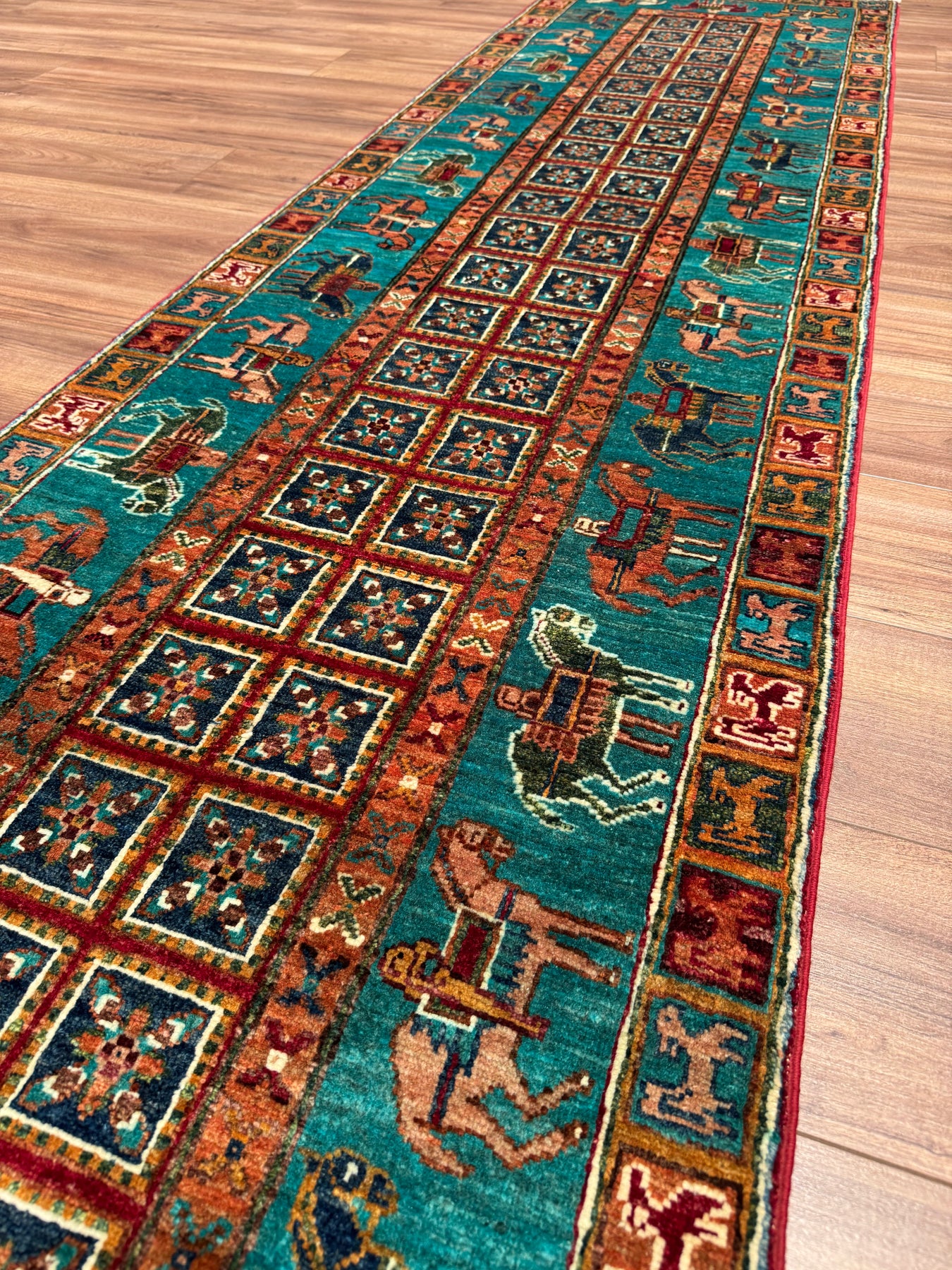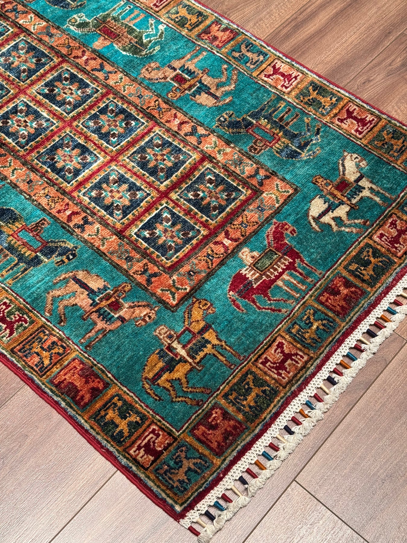 اكتُشفت هذه السجادة عام ١٩٤٩ في مقابر قبائل الهون الأثرية، المعروفة باسم بازيريك كورغانز، في جبال ألتاي بآسيا الوسطى، وهي أقدم سجادة تركية معقودة معروفة. نسجت سجادة بازيريك باستخدام زخارف بشرية وحيوانية وزهرية تحمل آثار الثقافة التركية. تحتوي المربعات التي تُشكل النقوش المركزية للسجادة على زخارف نباتية رباعية الفصوص، بينما يُزين أحد حوافها العريضة صفوفًا من أتراك الهون يمتطون الخيول. وأخيرًا، يُزين الحافة الضيقة أشكال غريفين.