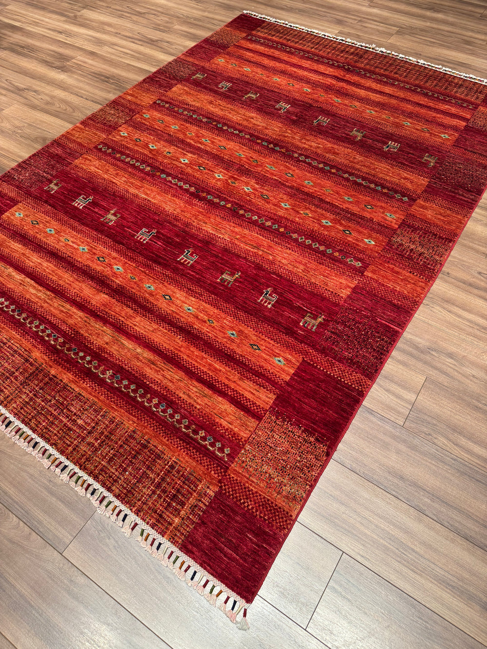 تُضفي السجادات المزخرفة بنقشة البايسلي لمسةً أنيقةً وحيويةً، بفضل زخارف البايسلي (اللوزية)، رمز الثقافة الشرقية. تتميز هذه السجادات ببنيتها المتعرجة وأنماطها الإيقاعية، ما يجعلها خيارًا فريدًا لمن يبحثون عن إضفاء لمسة جمالية تقليدية على مساحات المعيشة العصرية.