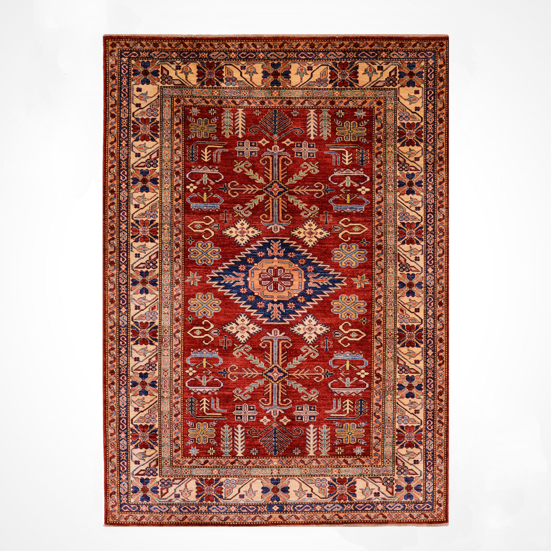 سجادة شيرفان الأصلية المصنوعة يدويًا من الصوف بلون أحمر كريمي مصبوغة بالجذور، مقاس 178×236، 4.20 متر مربع - 5×8 قدم