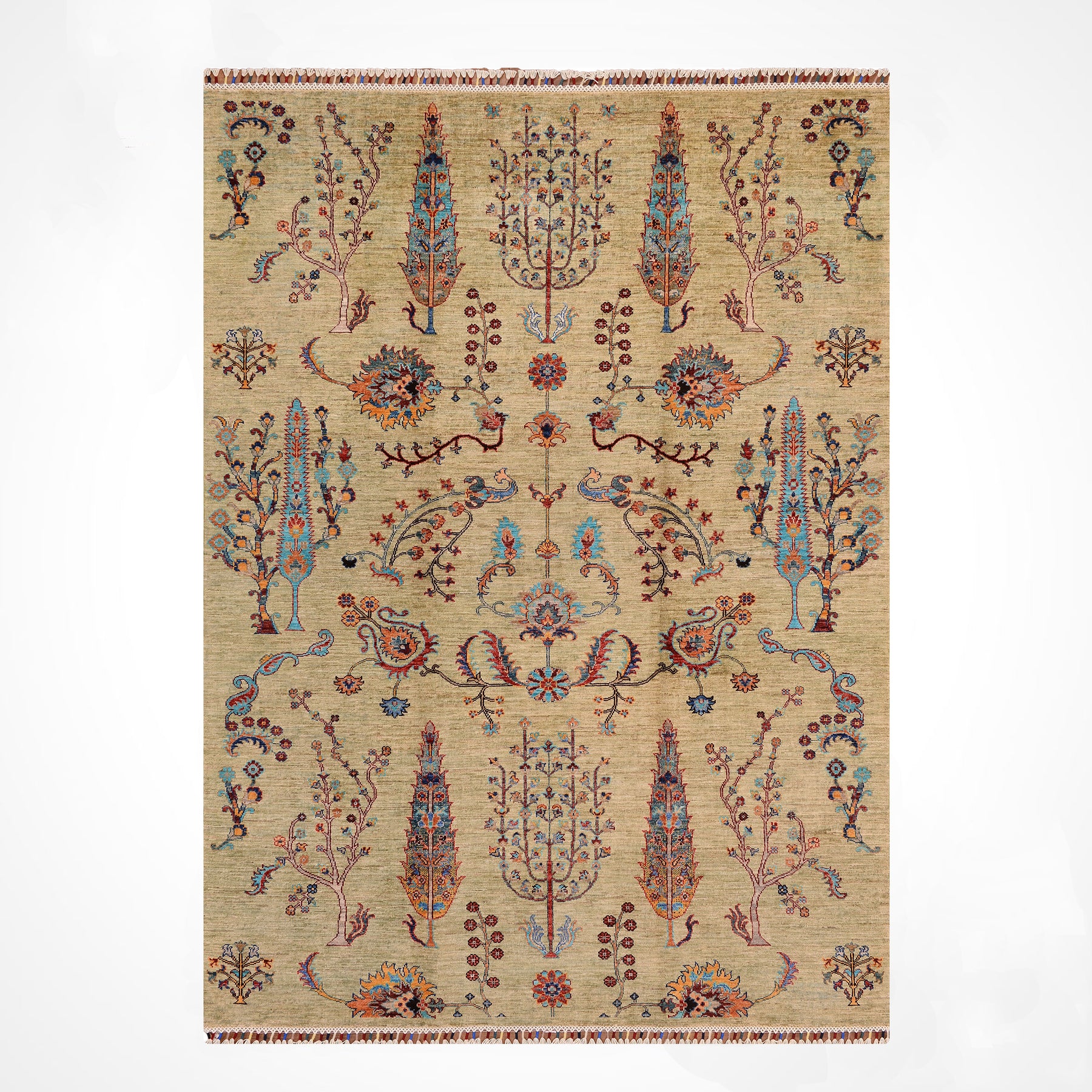 سجادة صوفية أصلية منسوجة يدويًا بنمط شجرة سلطاني، 179 × 251، 4.49 متر مربع - 5 × 8 قدم
