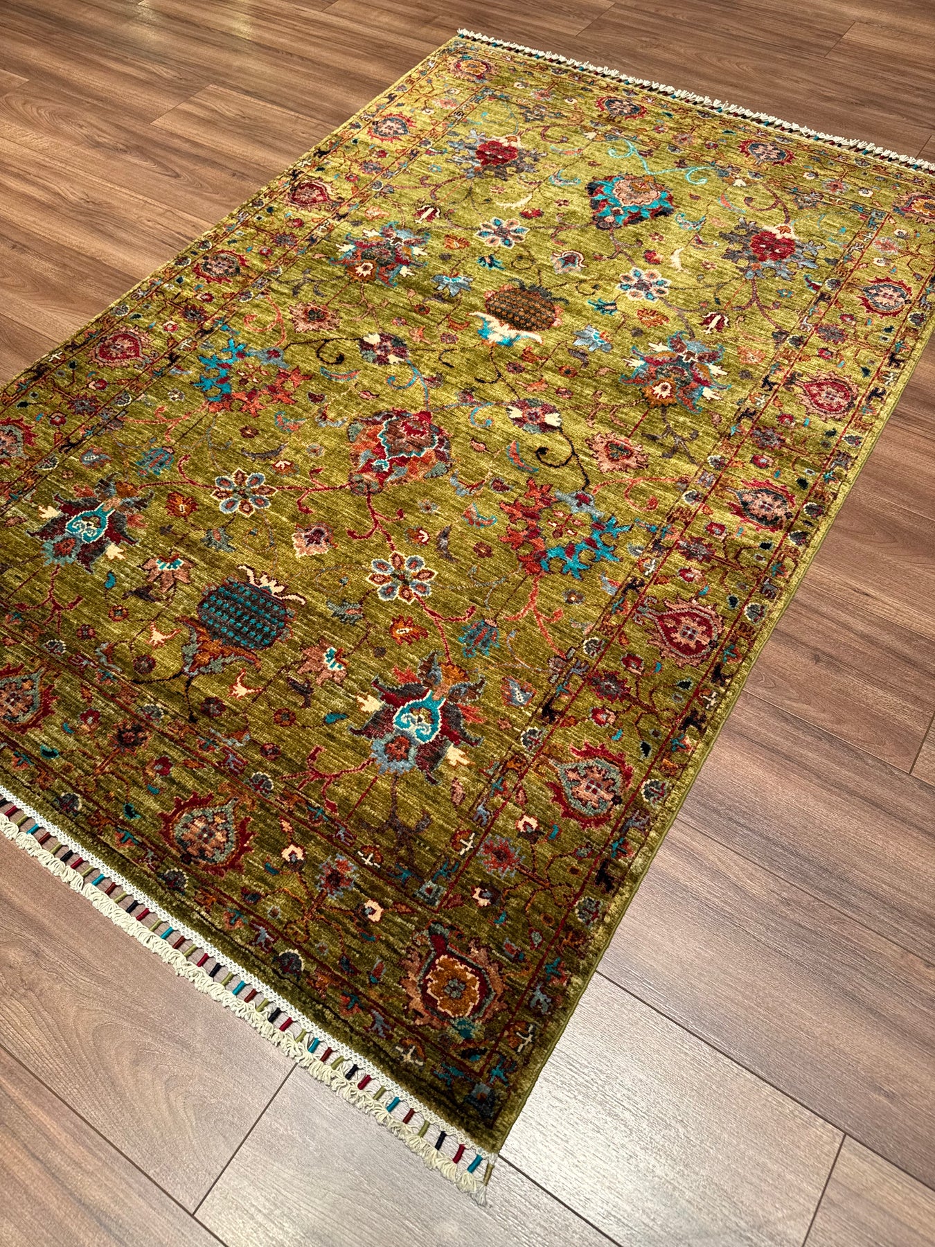 تختلف عملية تنظيف السجاد حسب مادة السجاد ونوع الأوساخ. نظرًا لأن هذه السجادة مصنوعة من خيوط صوف مصبوغة بصبغة الجذور، فلا ينبغي استخدام شامبو السجاد أو المنظفات التي تحتوي على مواد كيميائية. إذا انسكب أي سائل على هذه السجادة، قم أولاً بشطف الجزء المعني جيدًا بمنشفة ورقية؛ بعد ذلك يجب غسل المنطقة المصابة بالصابون الأبيض ومسحها بقطعة قماش. ومن الجدير بالذكر أيضًا أنه عند انسكاب شيء ما على السجادة، فإن التدخل الفوري مهم جدًا. إذا بقي السائل المسكوب على السجادة لفترة طويلة دون أن يتم مسحه، فإن البقعة سوف تلتصق بالسجادة وتصبح إزالتها أكثر صعوبة. وأخيرًا، ننصحك بغسل هذه السجادة بواسطة غسالة سجاد محترفة تثق بها وتغسل السجاد المنسوج يدويًا. إذا كنت تقيم في اسطنبول، يمكنك الاتصال بنا لتنظيف السجاد.