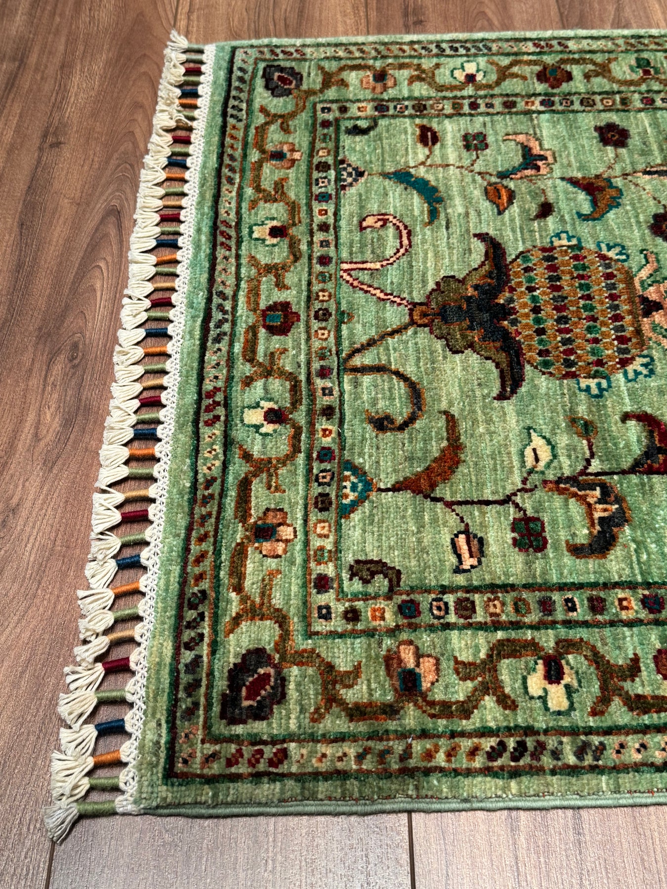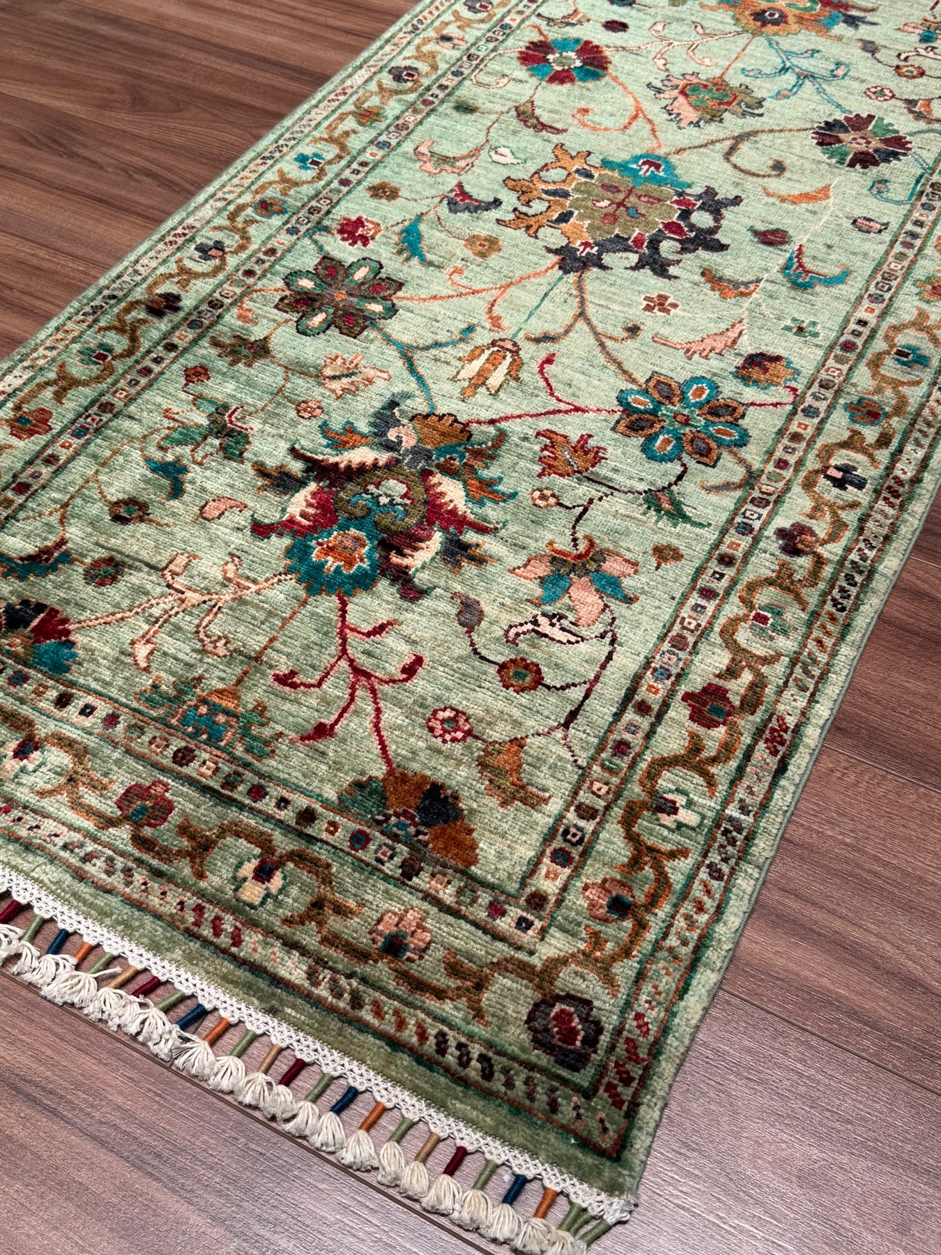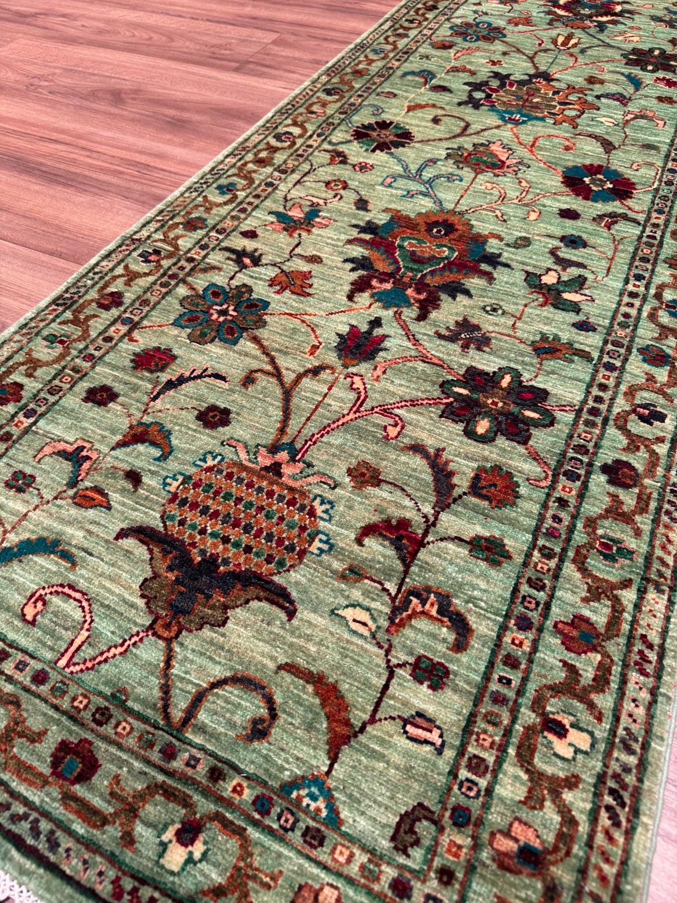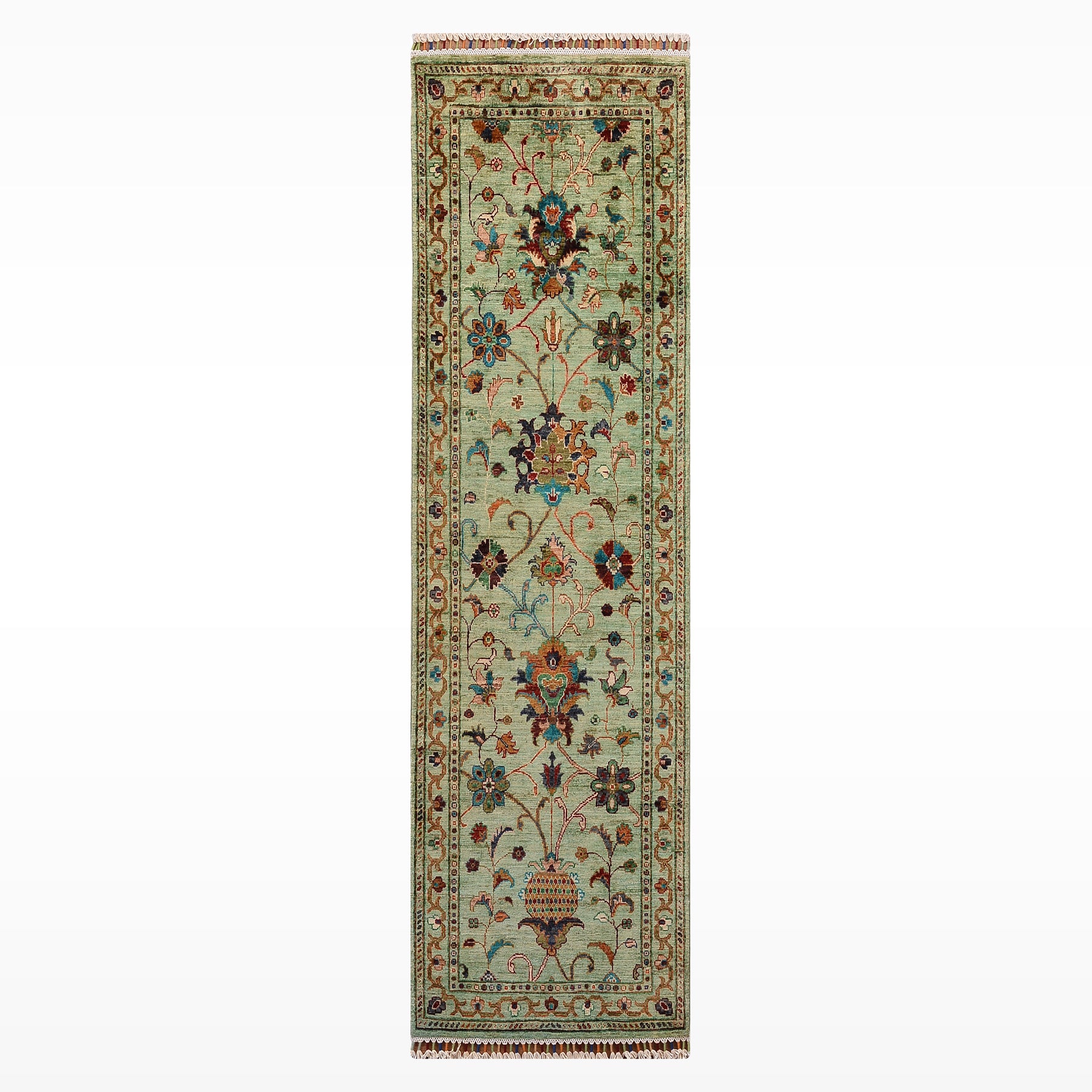 سجادة سلطاني بينبيرجيس رانر الأصلية المصنوعة يدويًا من الصوف الأخضر المصبوغ بالجذور 0.73 × 202 سم 1.47 متر مربع - 2 × 6 قدم
