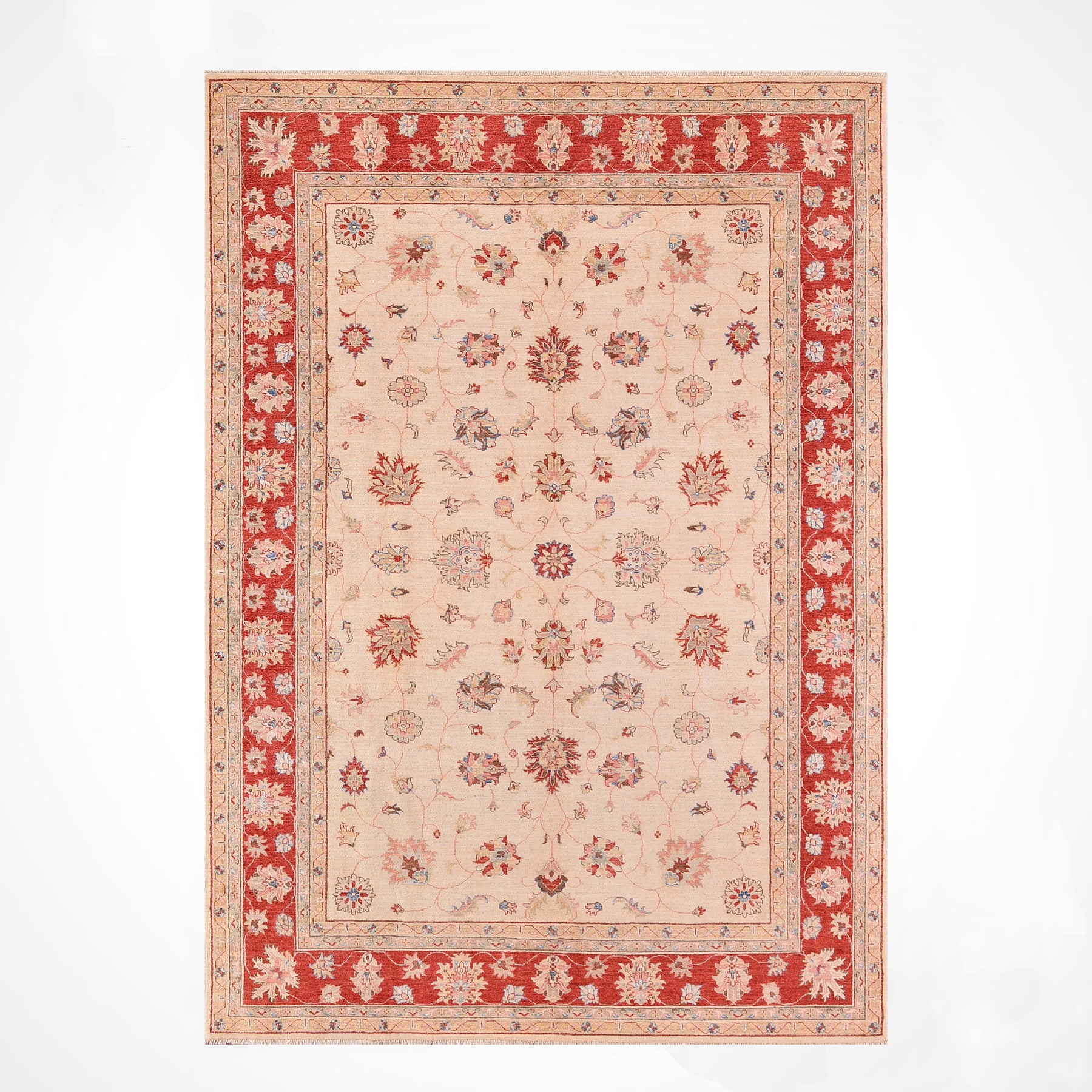 سجادة أوشاك الأصلية المصنوعة يدويًا من الصوف المصبوغ باللون الأحمر الكريمي 205 × 290 5.95 متر مربع - 8 × 10 قدم