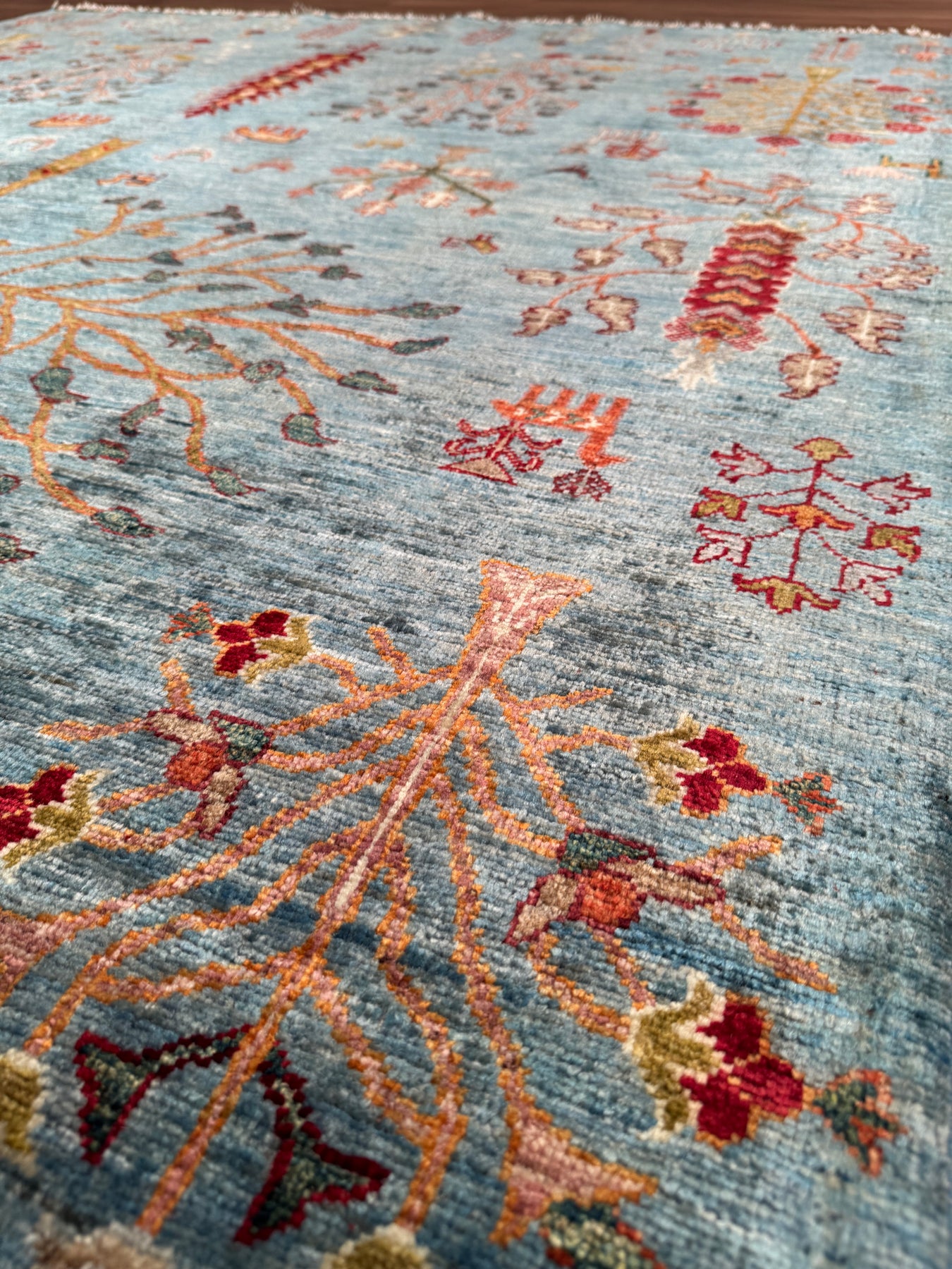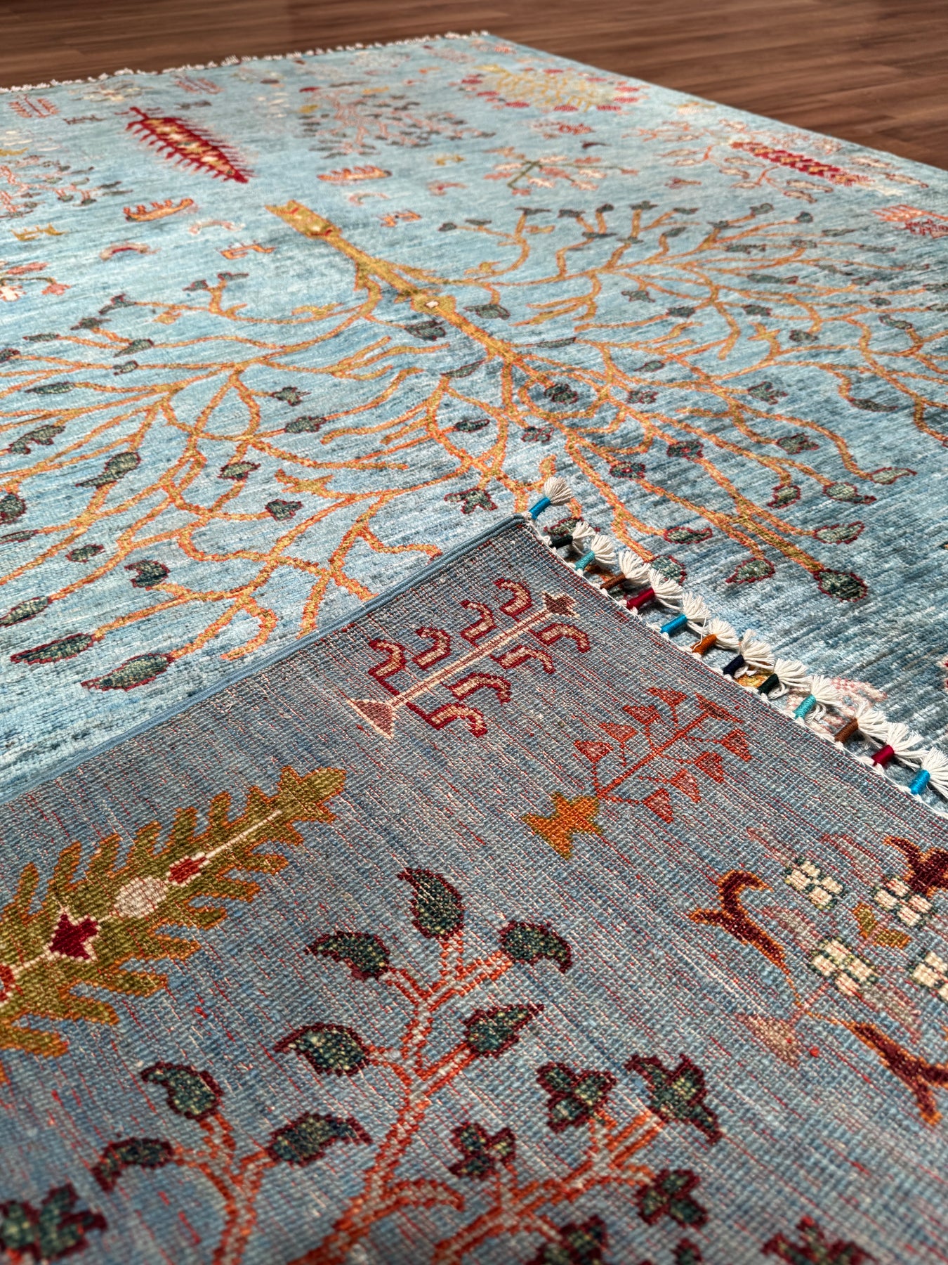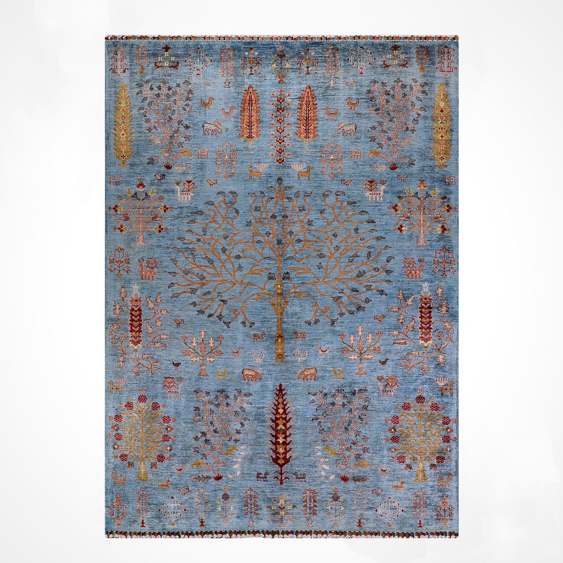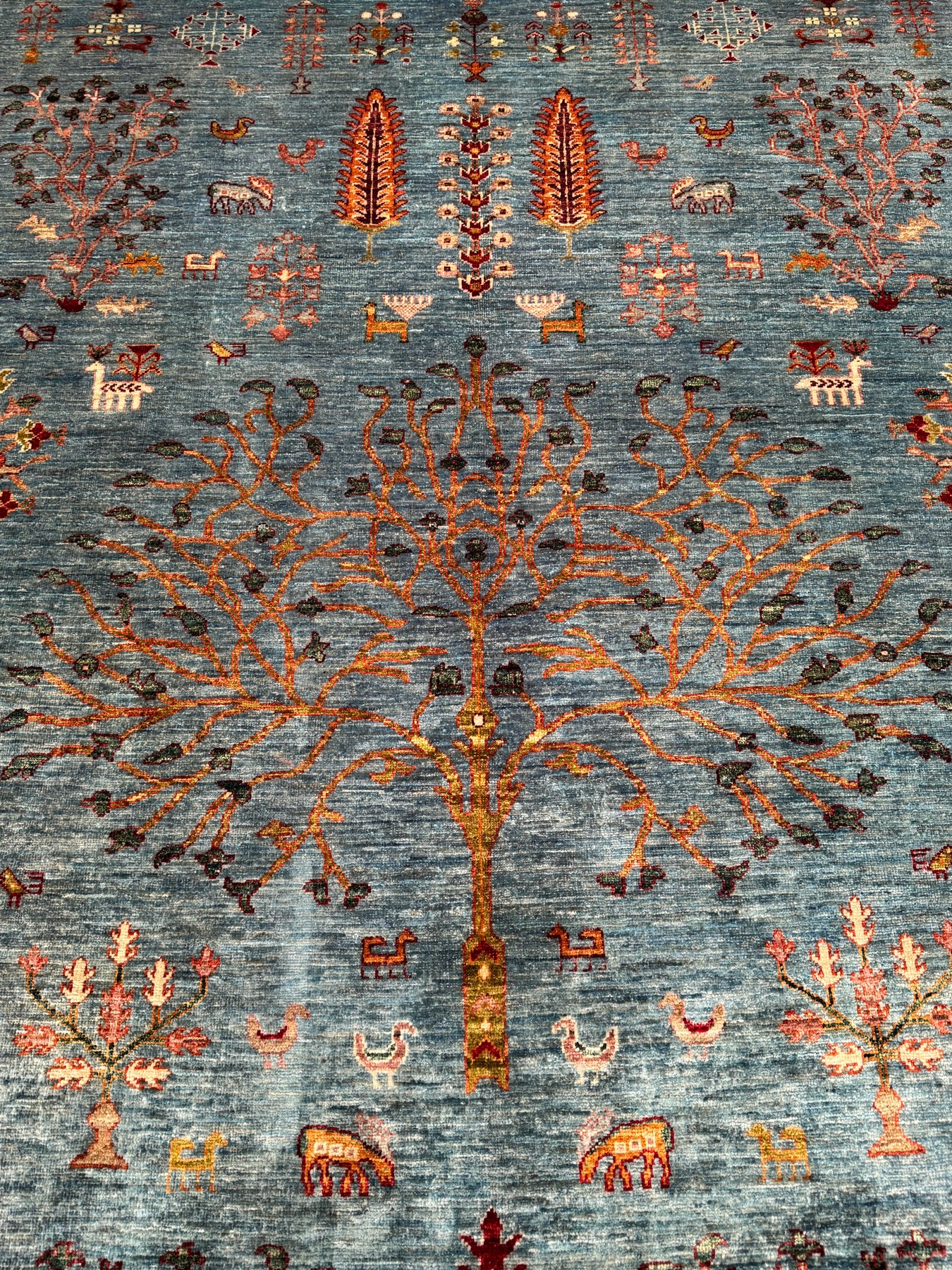 Khorjin Hayat Ağacı Orijinal El Dokuması Turkuaz Kök Boya Yün Halı 180x253 4.55 Metrekare - 5x8 ft