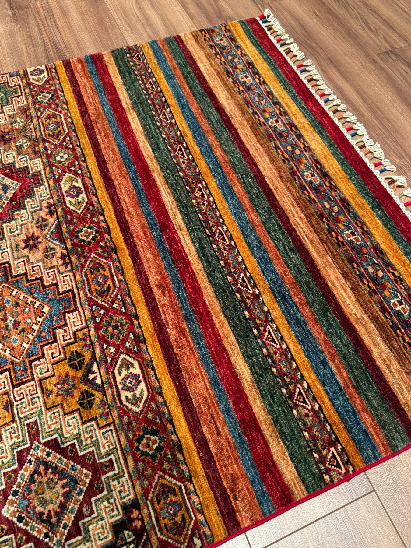Halı temizliği, halının malzemesine ve kirin türüne göre değişmektedir. Bu halımız kök boya ile boyanmış yün ipliklerden yapılmış olduğundan, kimyasal madde içeren halı şampuanı veya detarjan kullanılmamalıdır. Bu halının üzerine herhangi bir sıvı döküldüğünde, ilgili kısmı öncelikle bir kağıt havlu ile iyice durulayıp; daha sonrasında ise beyaz kalıp sabunu köpürterek bir bez ile ilgili kısım silinmelidir. Şu husus da ayrıca unutulmamalıdır ki, halının üzerine bir şey döküldüğünde acil müdahale çok önemlidir. Dökülen sıvı, halı üzerinde silinmeden uzun bir süre kalırsa leke çözgüye iner ve çıkması çok daha zor bir hal alır. Son olarak, bu halımızın yıkamasını güvendiğiniz ve el dokuması halı yıkayan profesyonel bir halı yıkamacıya vermenizi tavsiye etmekteyiz. İstanbul’da ikamet etmekte iseniz halı yıkama için bizimle iletişime geçebilirsiniz.