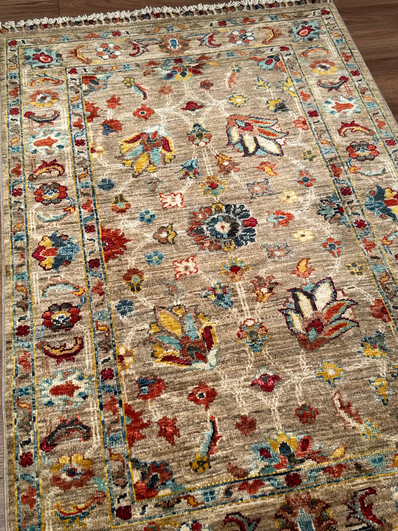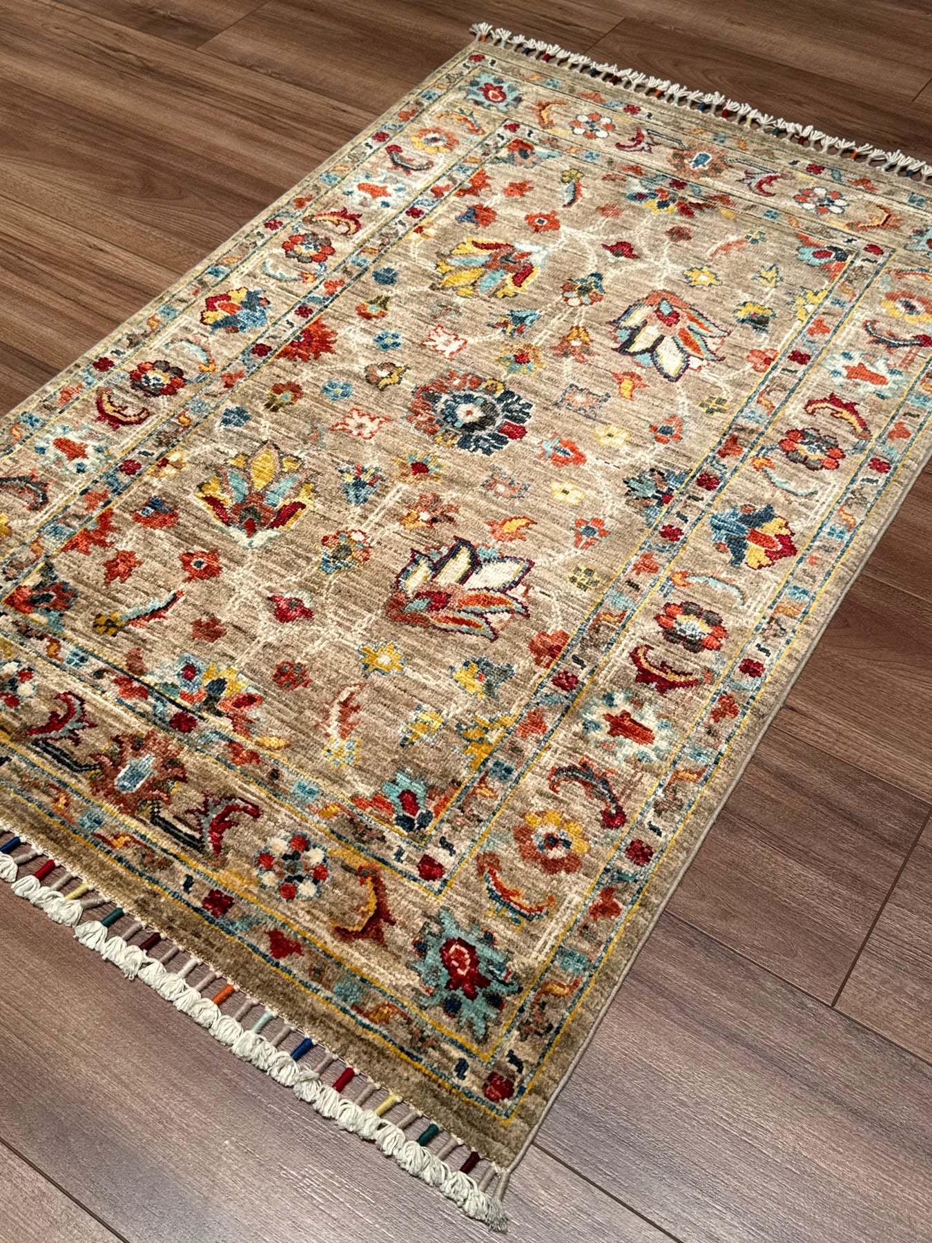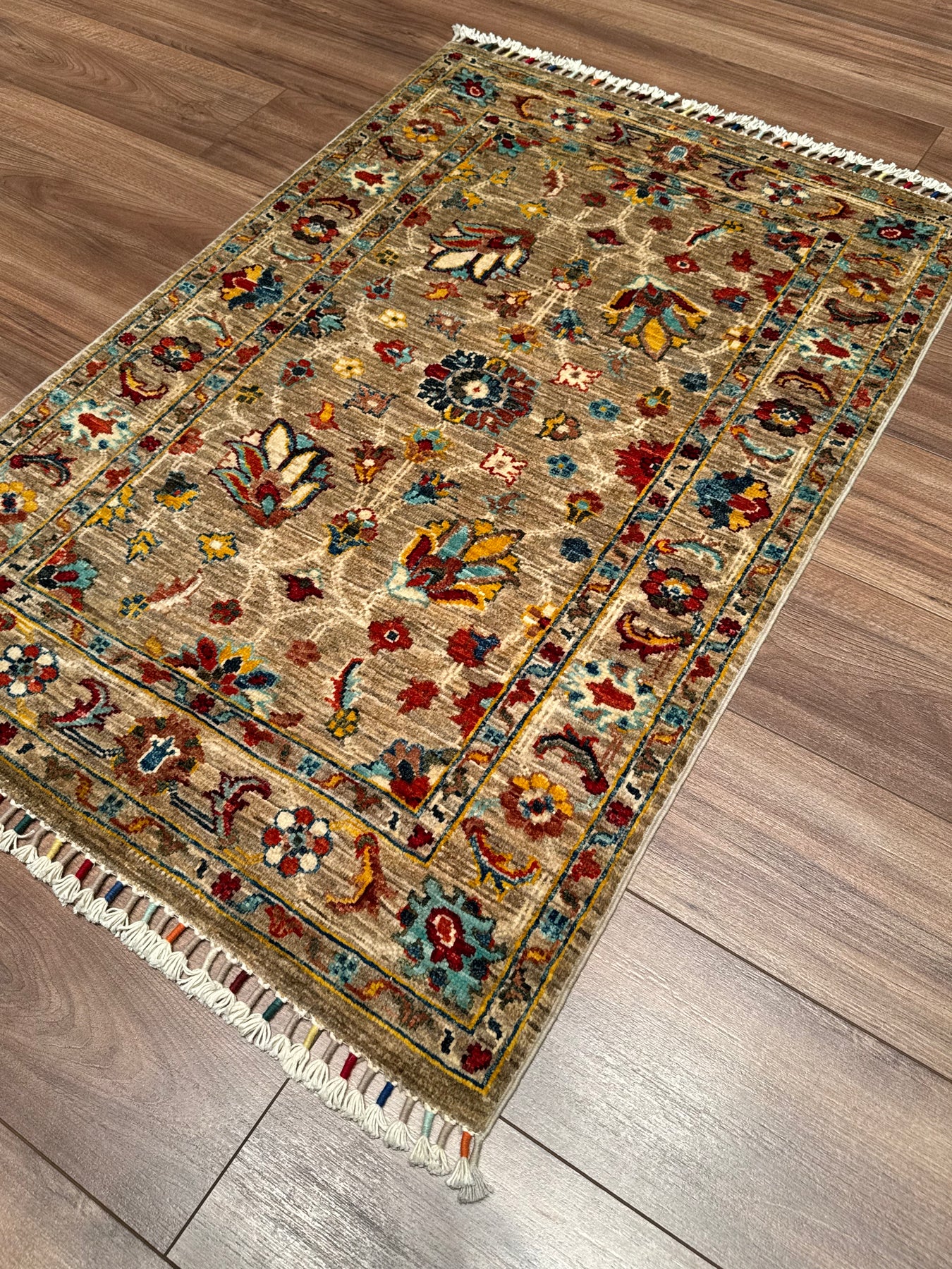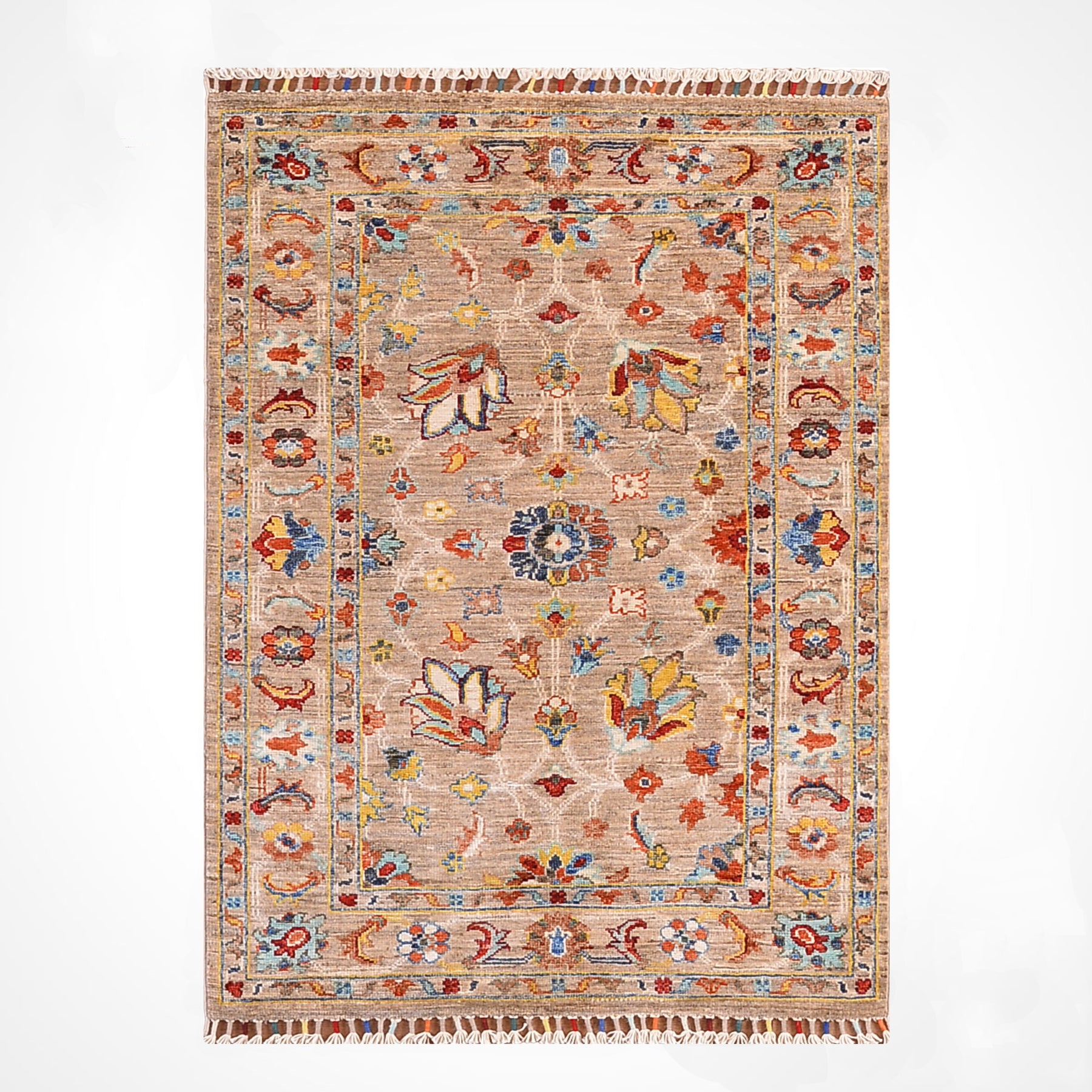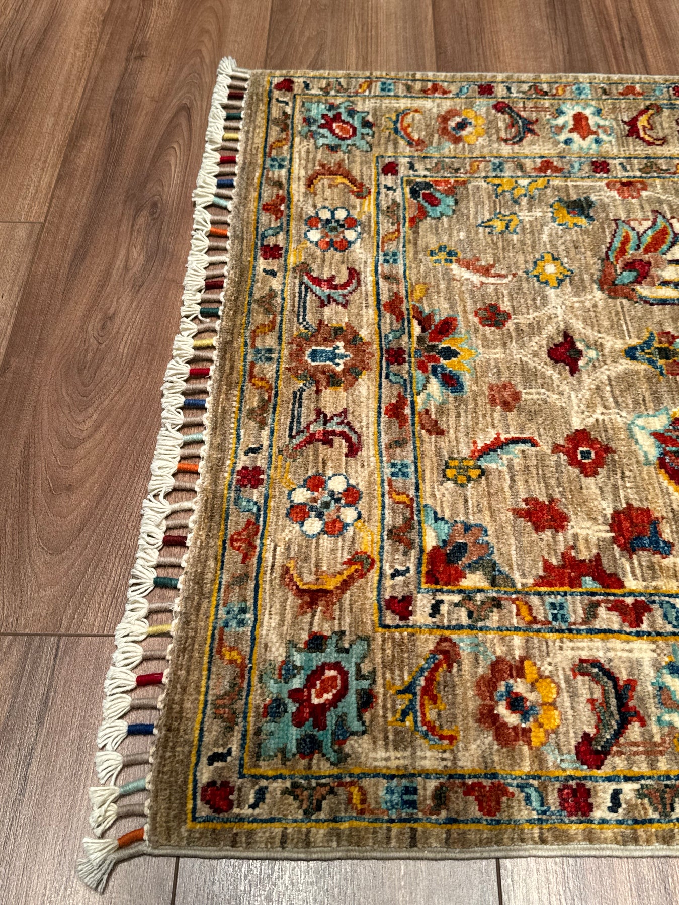 Sultani Binbirgece Orijinal El Dokuması Bej Kök Boya Yün Halı 0.80x120 0.96 Metrekare - 3x4 ft