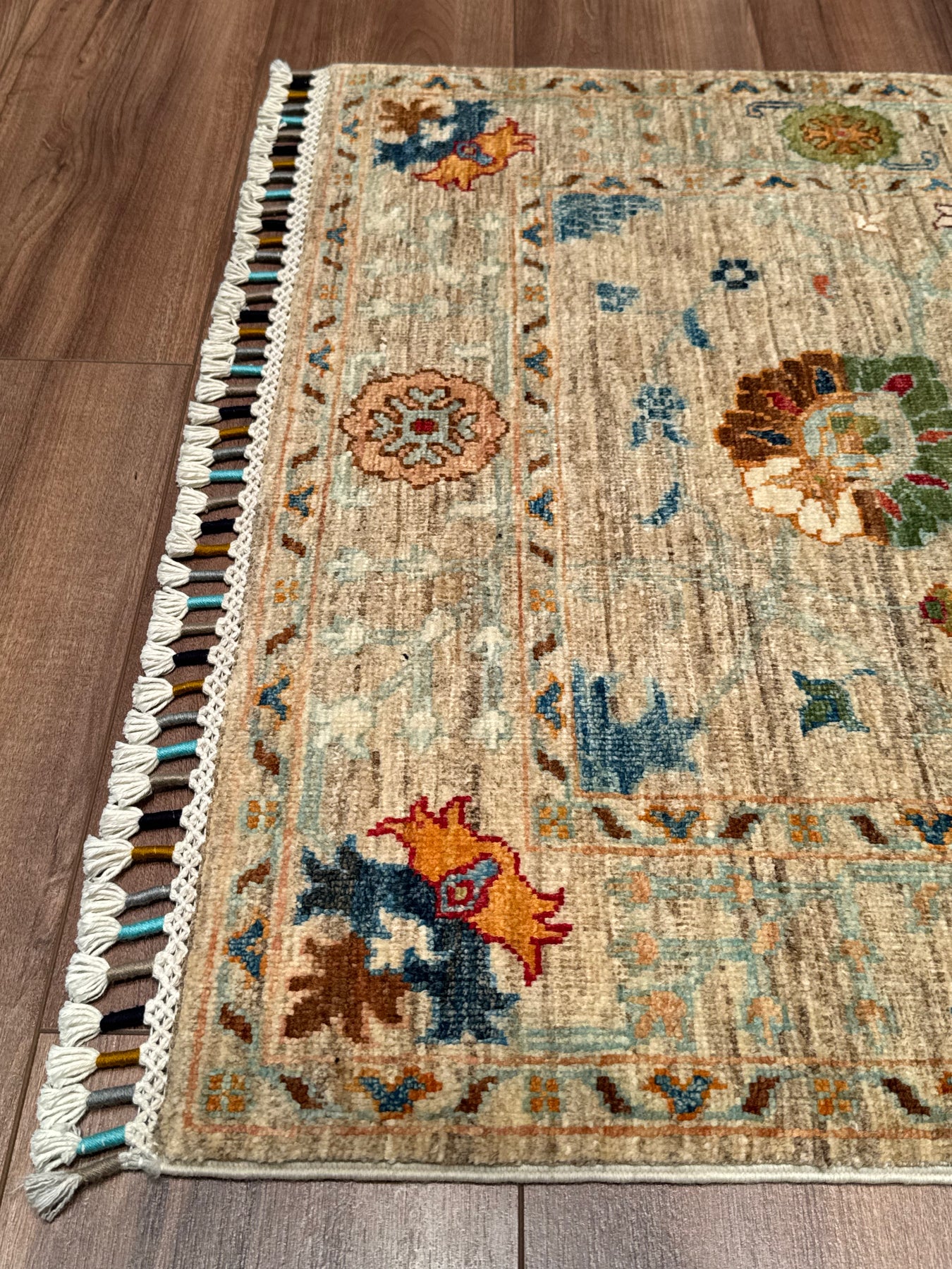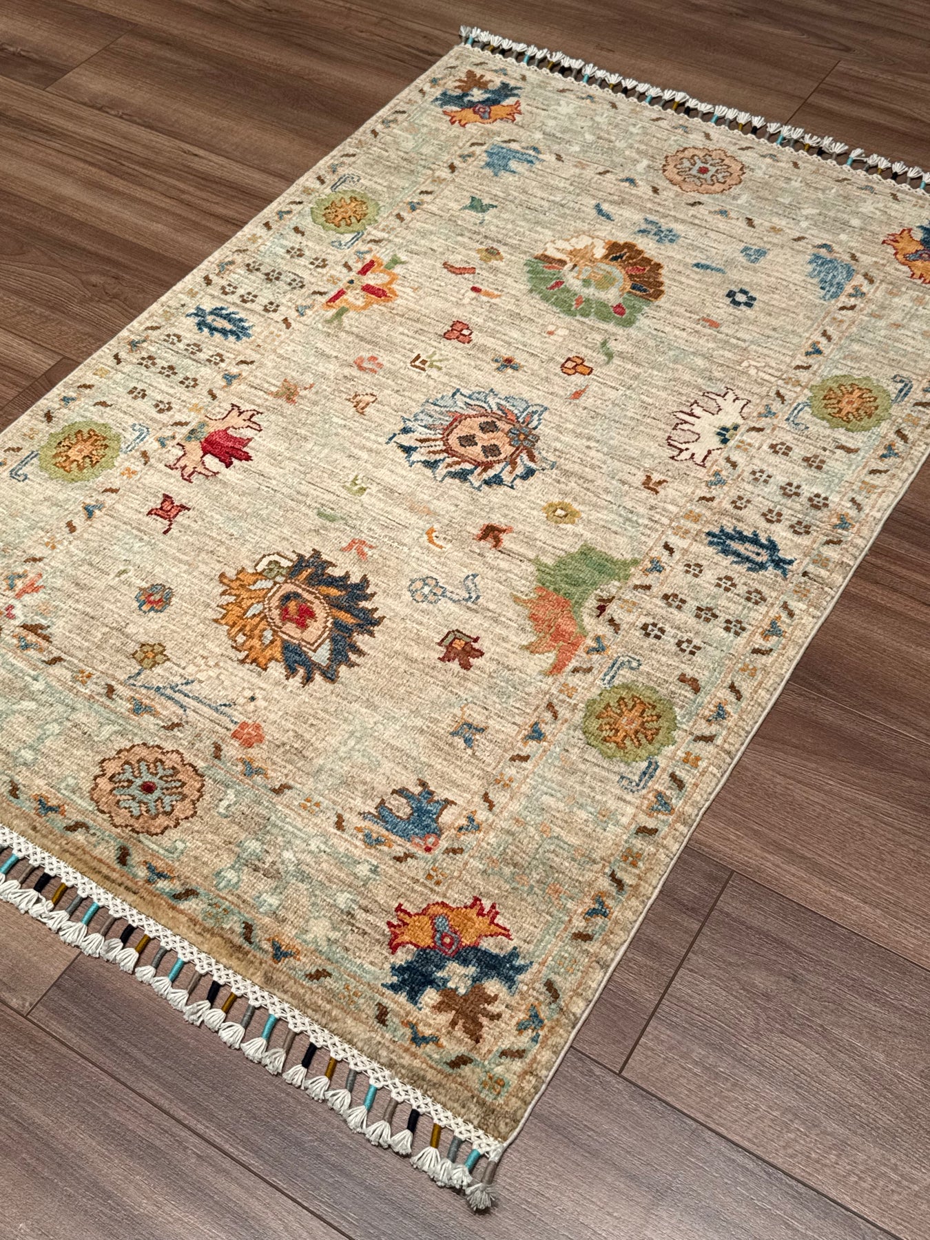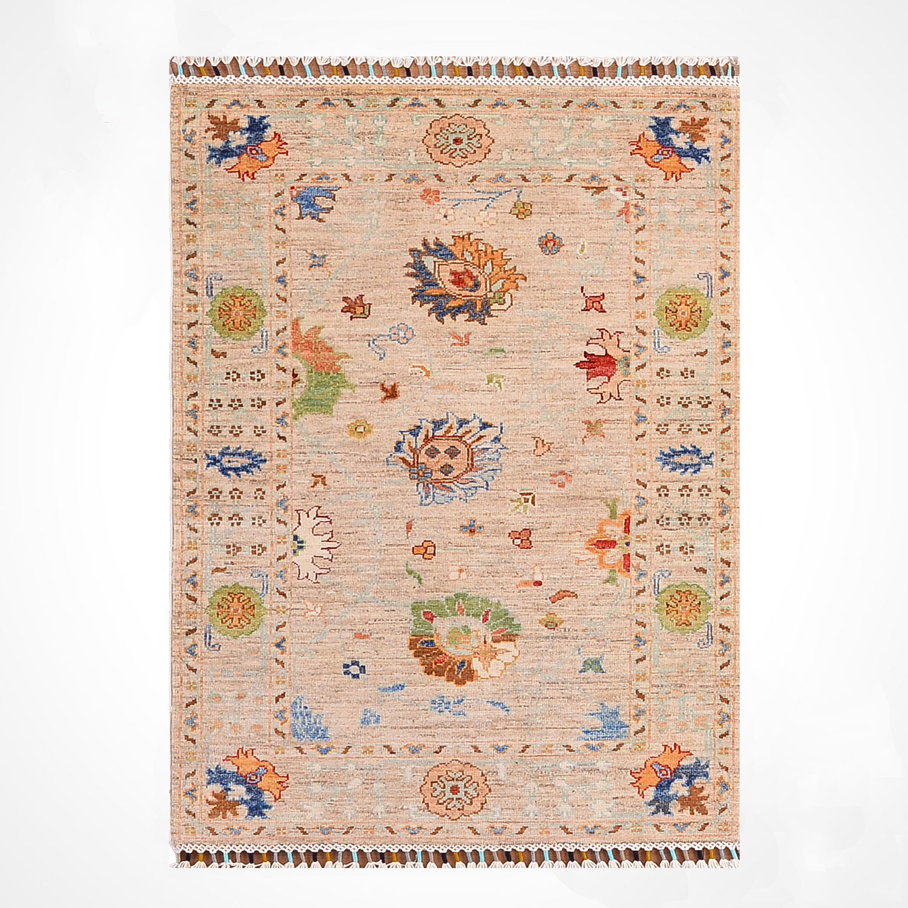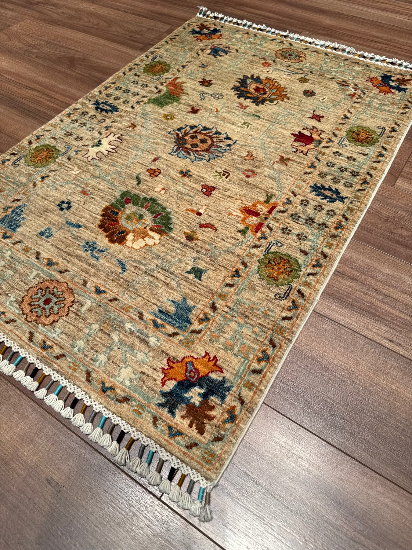 Sultani Binbirgece Orijinal El Dokuması Bej Kök Boya Yün Halı 0.81x120 0.97 Metrekare - 3x4 ft