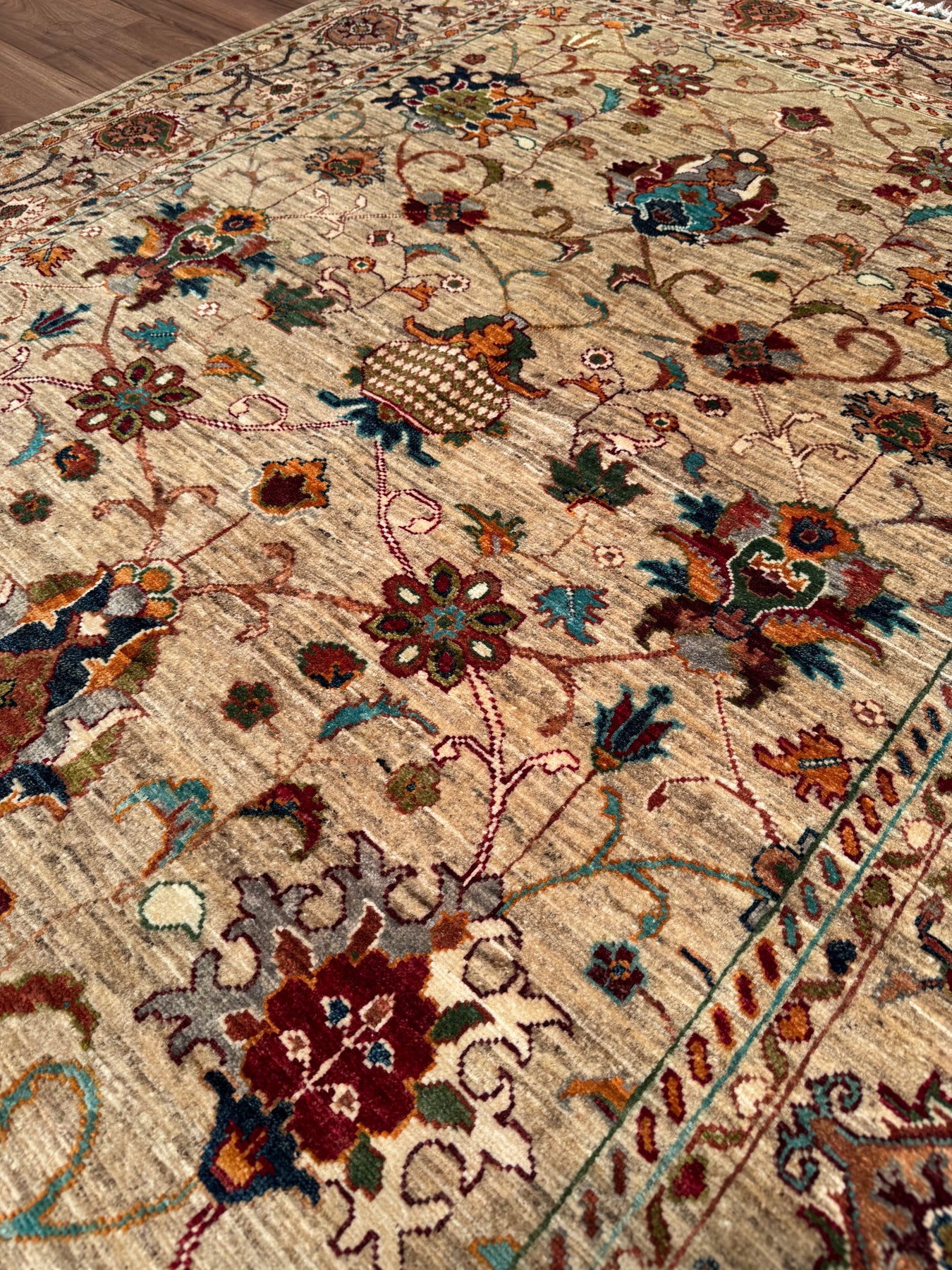 Sultani Binbirgece Orijinal El Dokuması Bej Kök Boya Yün Halı 152x196 2.98 Metrekare - 5x6 ft