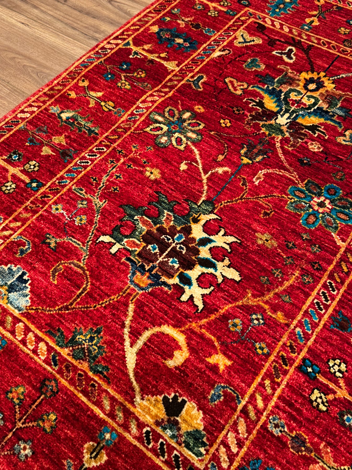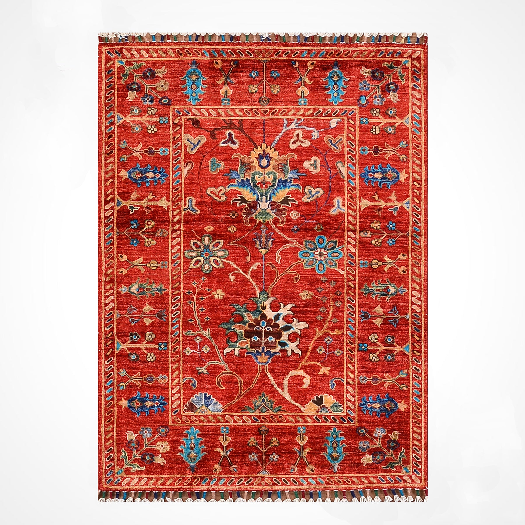 Sultani Binbirgece Orijinal El Dokuması Kırmızı Kök Boya Yün Halı 0.90x126 1.13 Metrekare - 3x4 ft