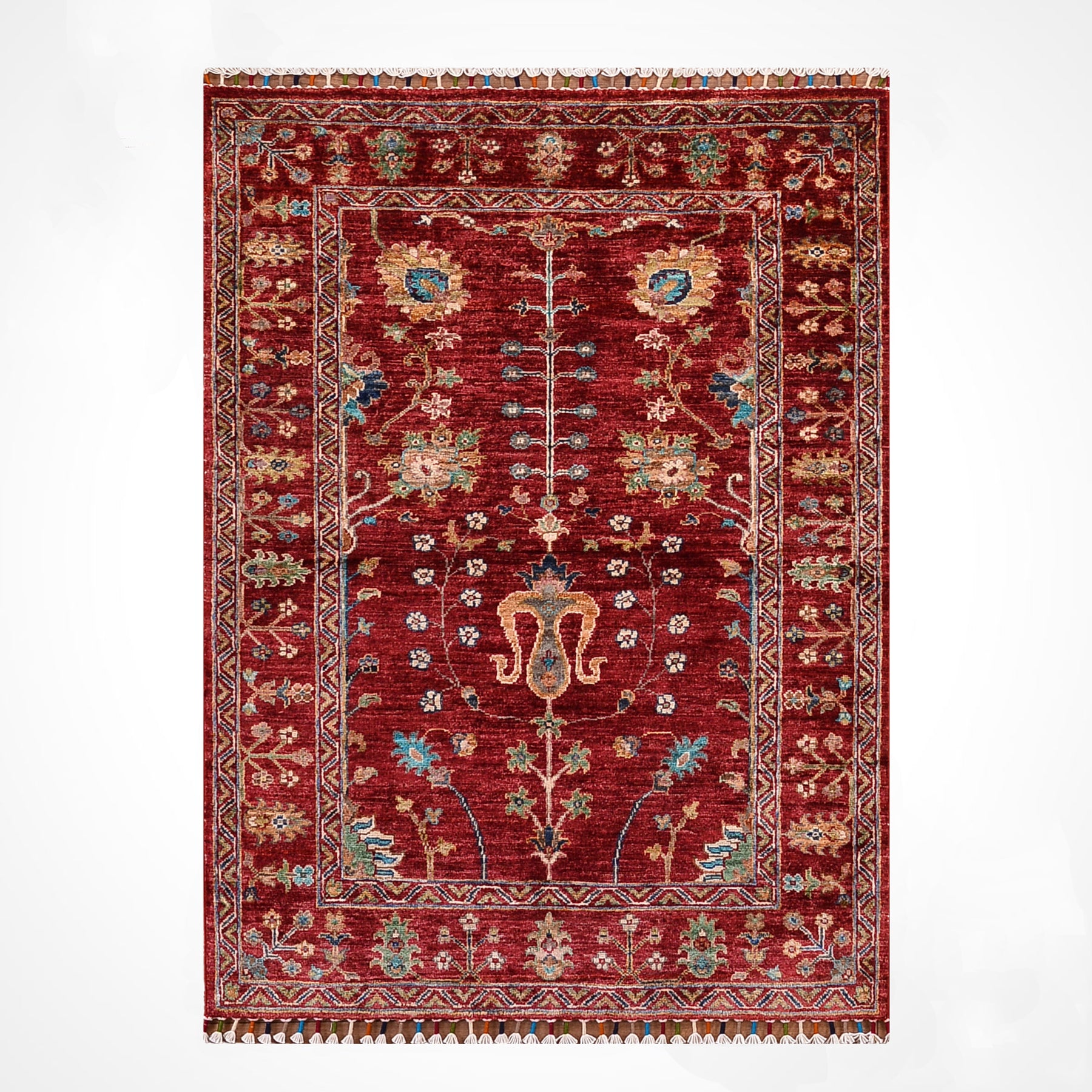 Sultani Çiçekli Orijinal El Dokuması Kırmızı Kök Boya Yün Halı 100x146 1.46 Metrekare - 3x5 ft