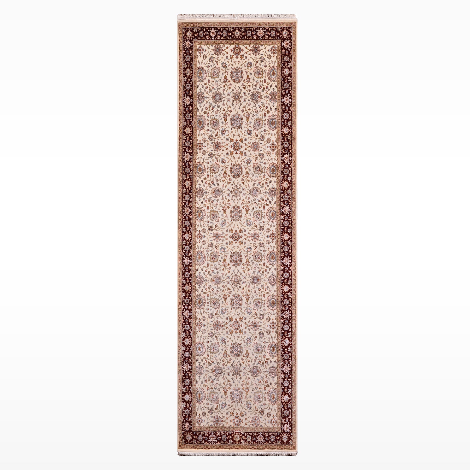 Hint Uşağı Orijinal El Dokuması Bej Kırmızı Yün Bambu Yolluk 103x301 3.10 Metrekare - 4x10 ft