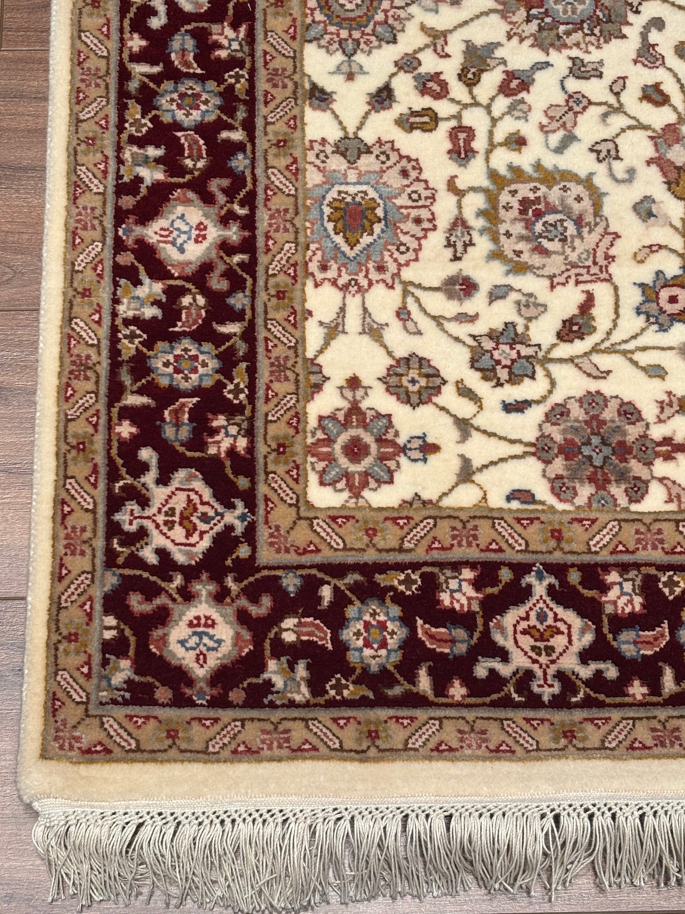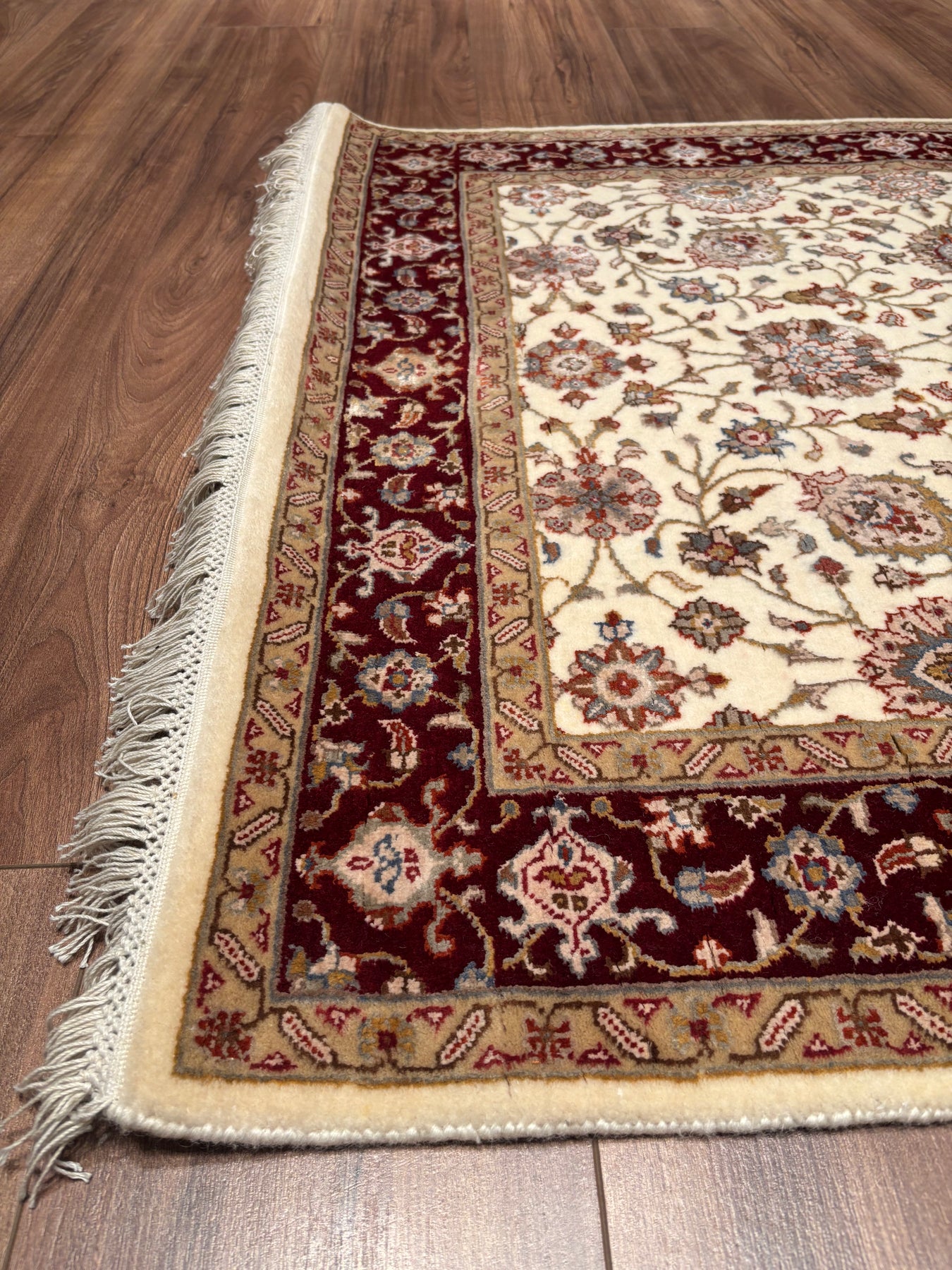 Bu halımızın atkı ve çözgüsü pamuk düğümleri yün ve bambu ipliktir. İplikler de tamamen el ile kirman kullanılarak üretilmiştir. Öte yandan, bu halımız dokuma sıklığı açısından üst kalite bir halı olup Türk düğümü bir diğer değişle çift düğüm tekniği ile dokunmuştur; bu özelliği sayesinde, daha dayanıklı olup İran halılarına kıyasla daha uzun ömre sahiptir. Son olarak, bu halımızın dokumasında yaklaşık 2.200.000 El düğümü atılmıştır.