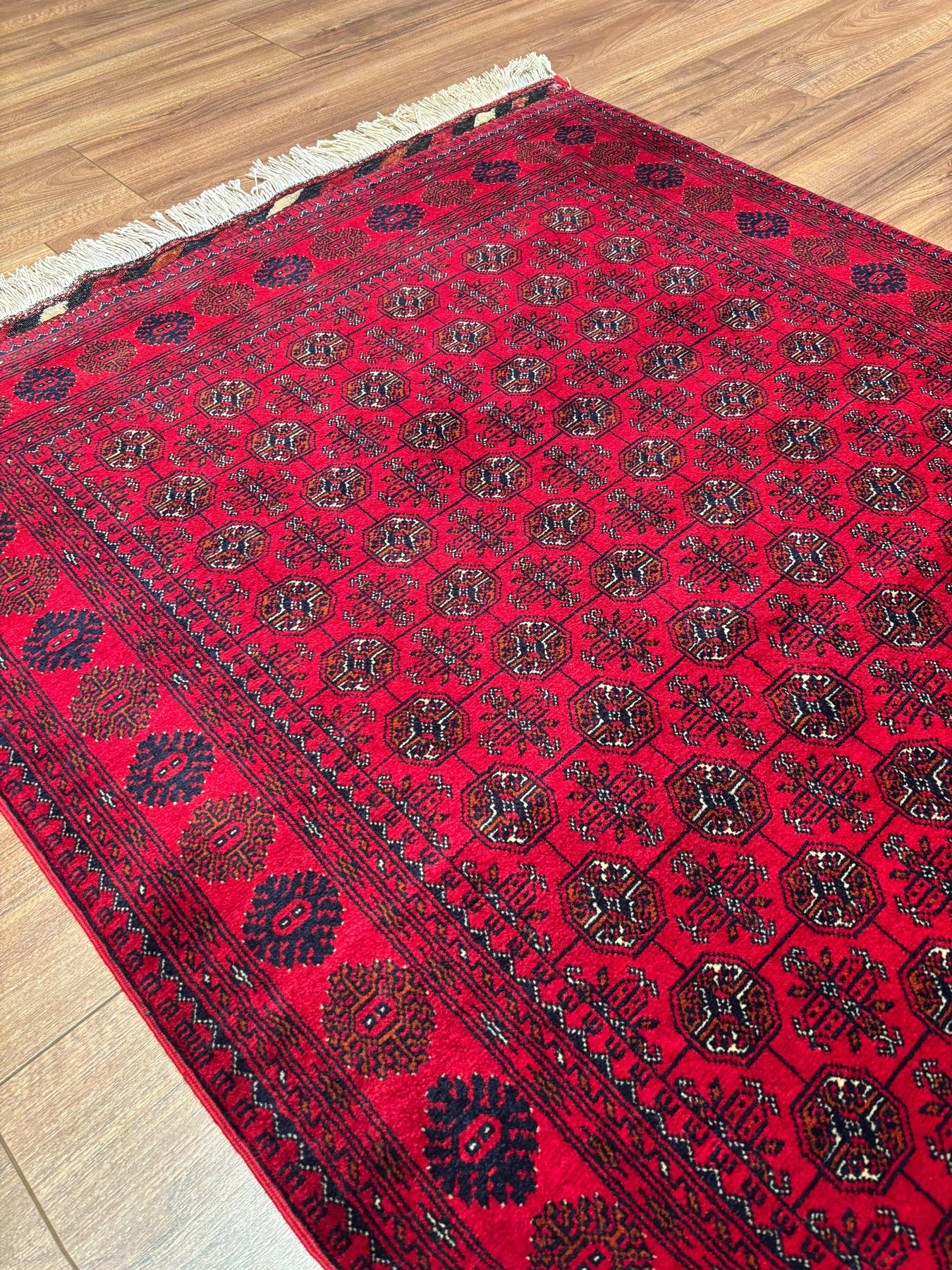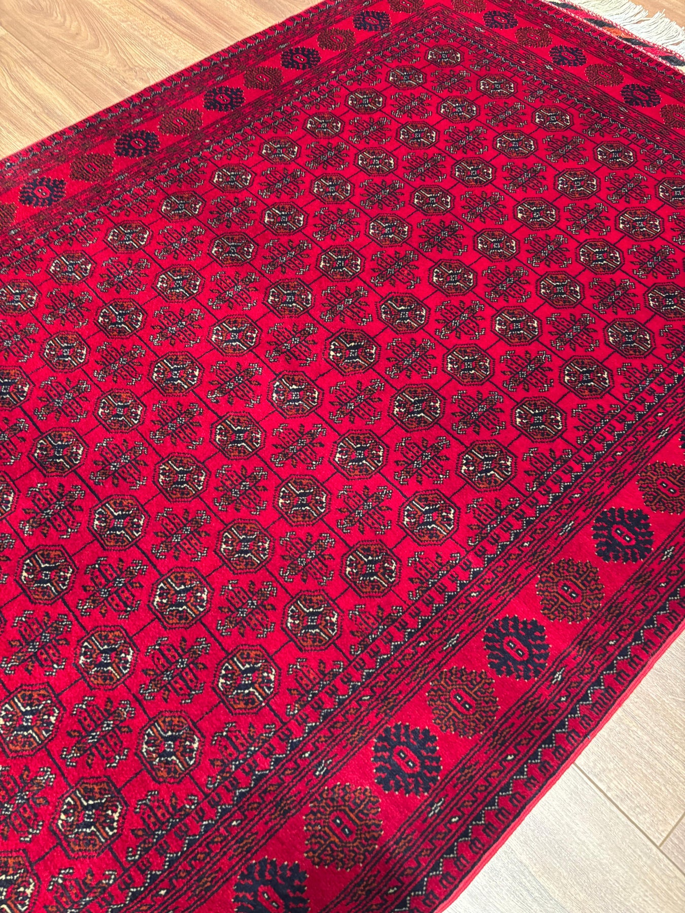 Afgan Halısı Bilcik Buhara Orijinal El Dokuması Kök Boya Yün 100x150 1.5 Metrekare - 3x5 ft