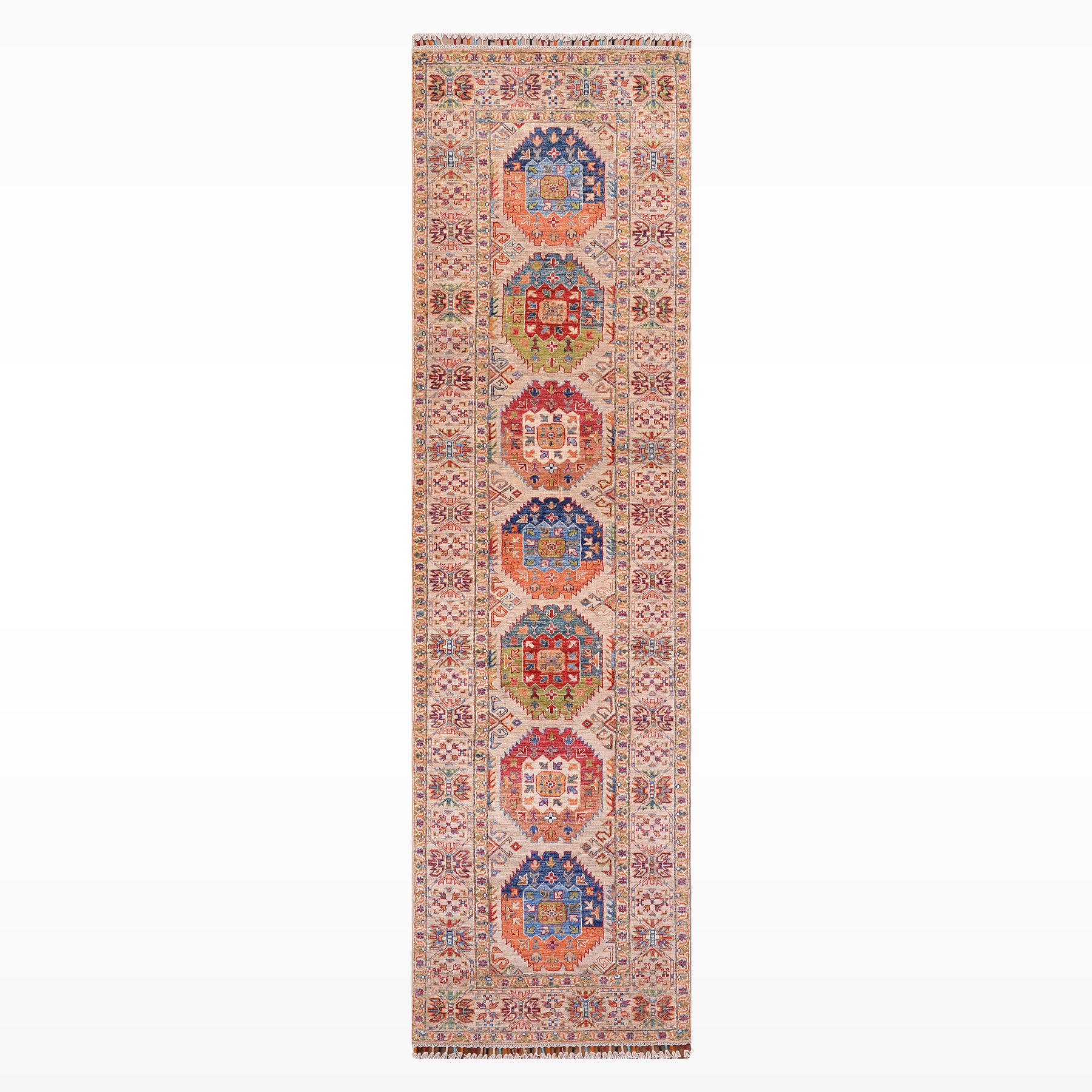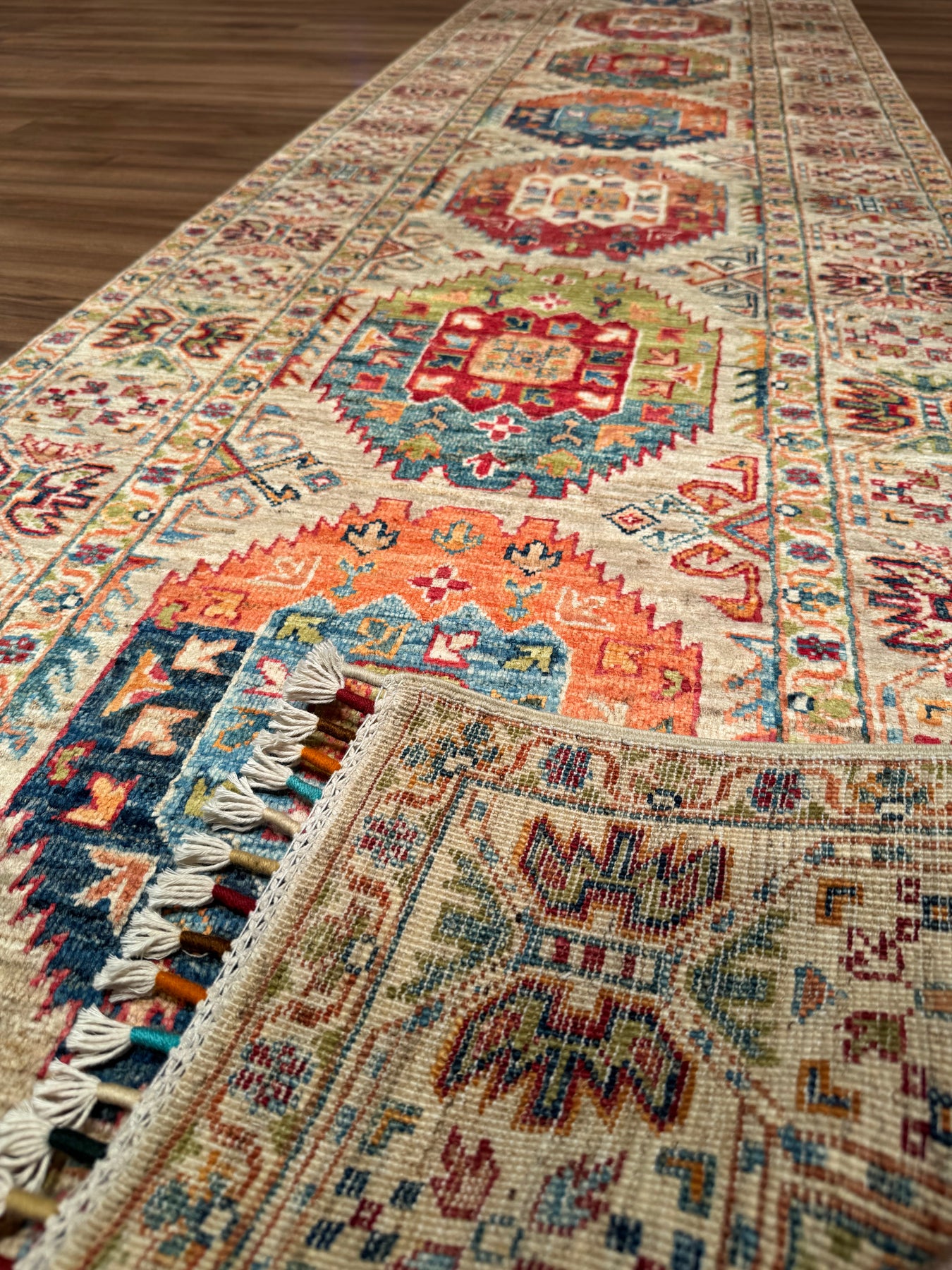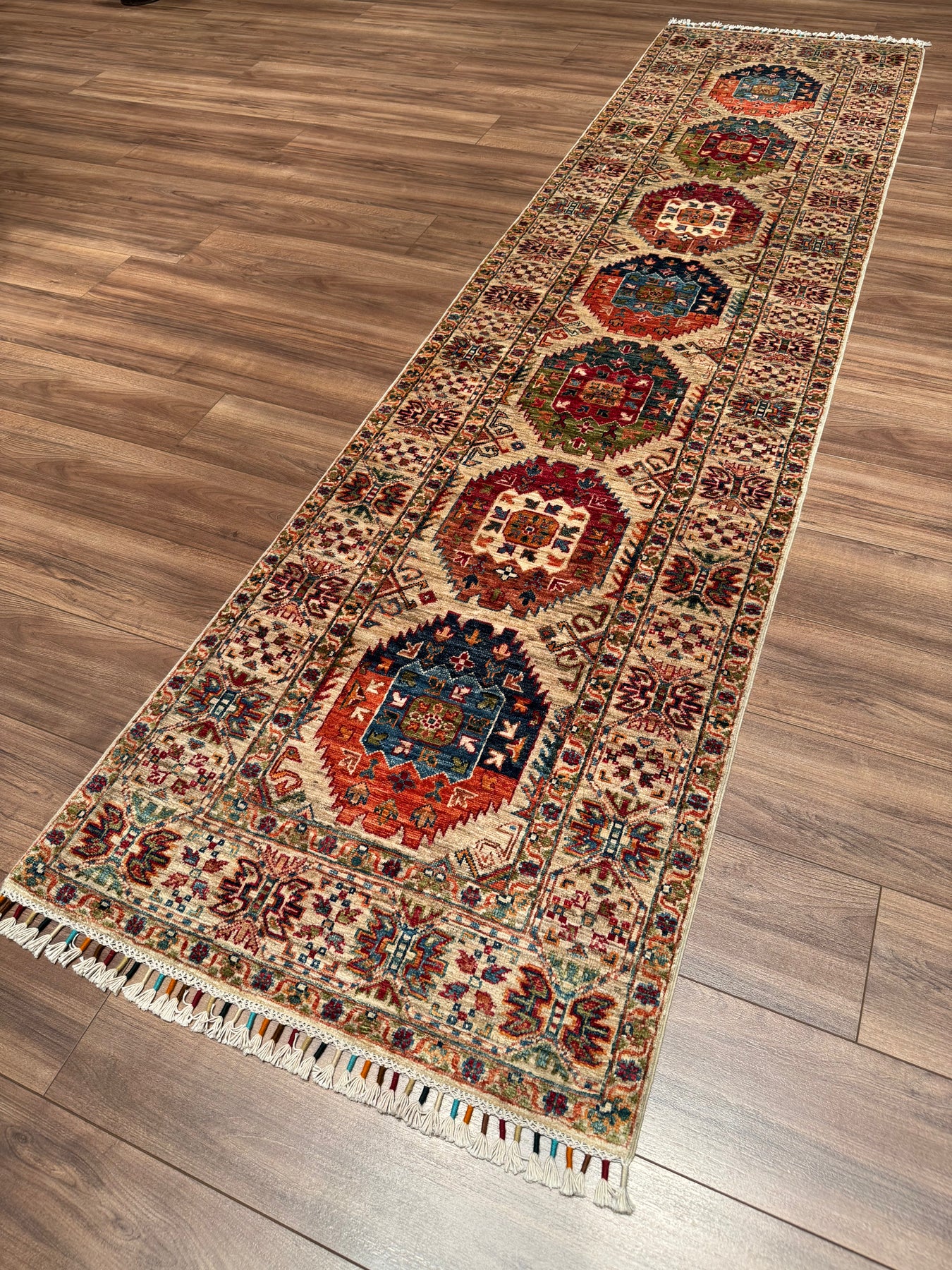 Veziri Orijinal El Dokuması Yolluk Bej Kök Boya Yün Halı 0.79x308 2.43 Metrekare - 3x10 ft
