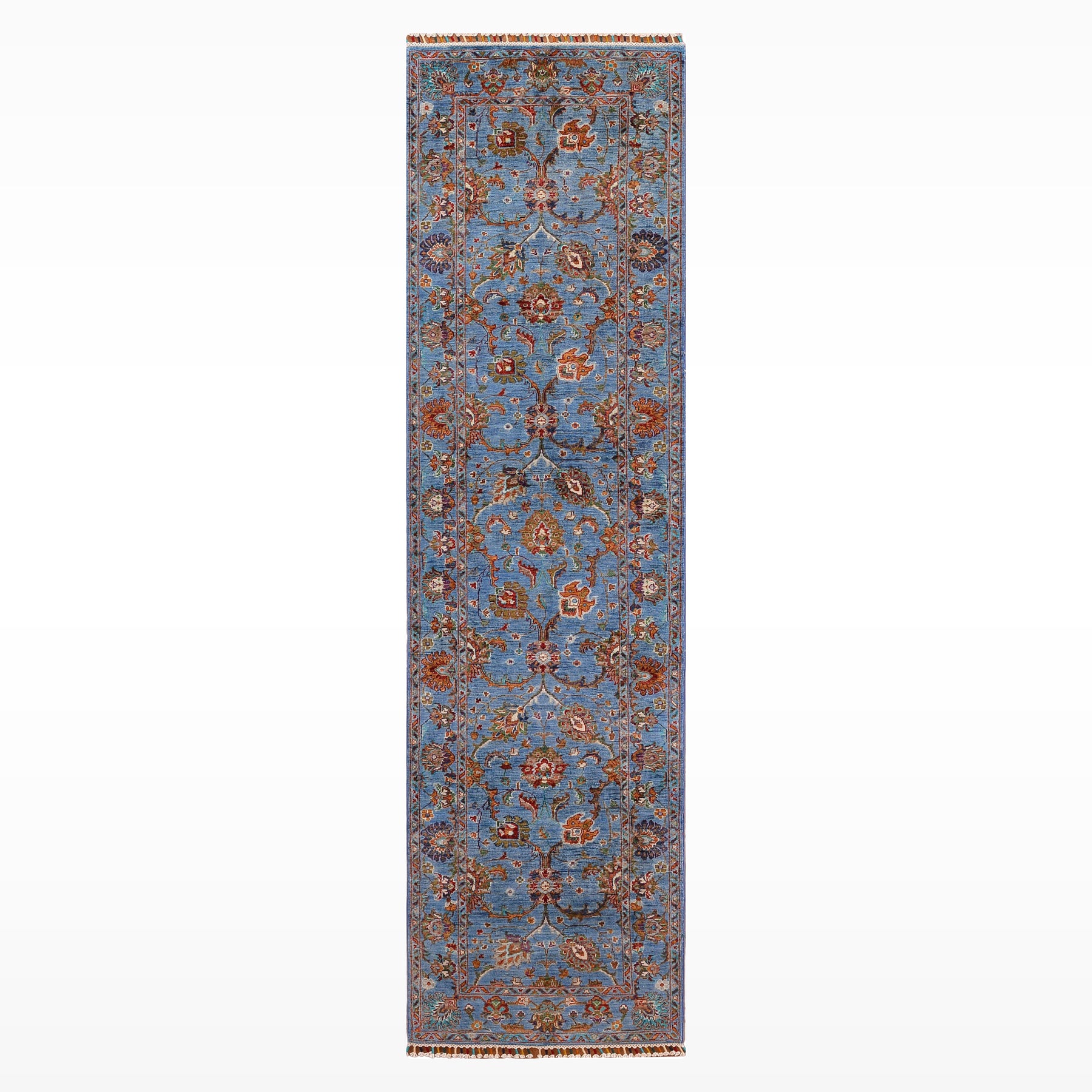 Sultani Binbirgece Yolluk Orijinal El Dokuması Mavi Kök Boya Yün Halı 0.82x298 2.44 Metrekare - 2x8 ft