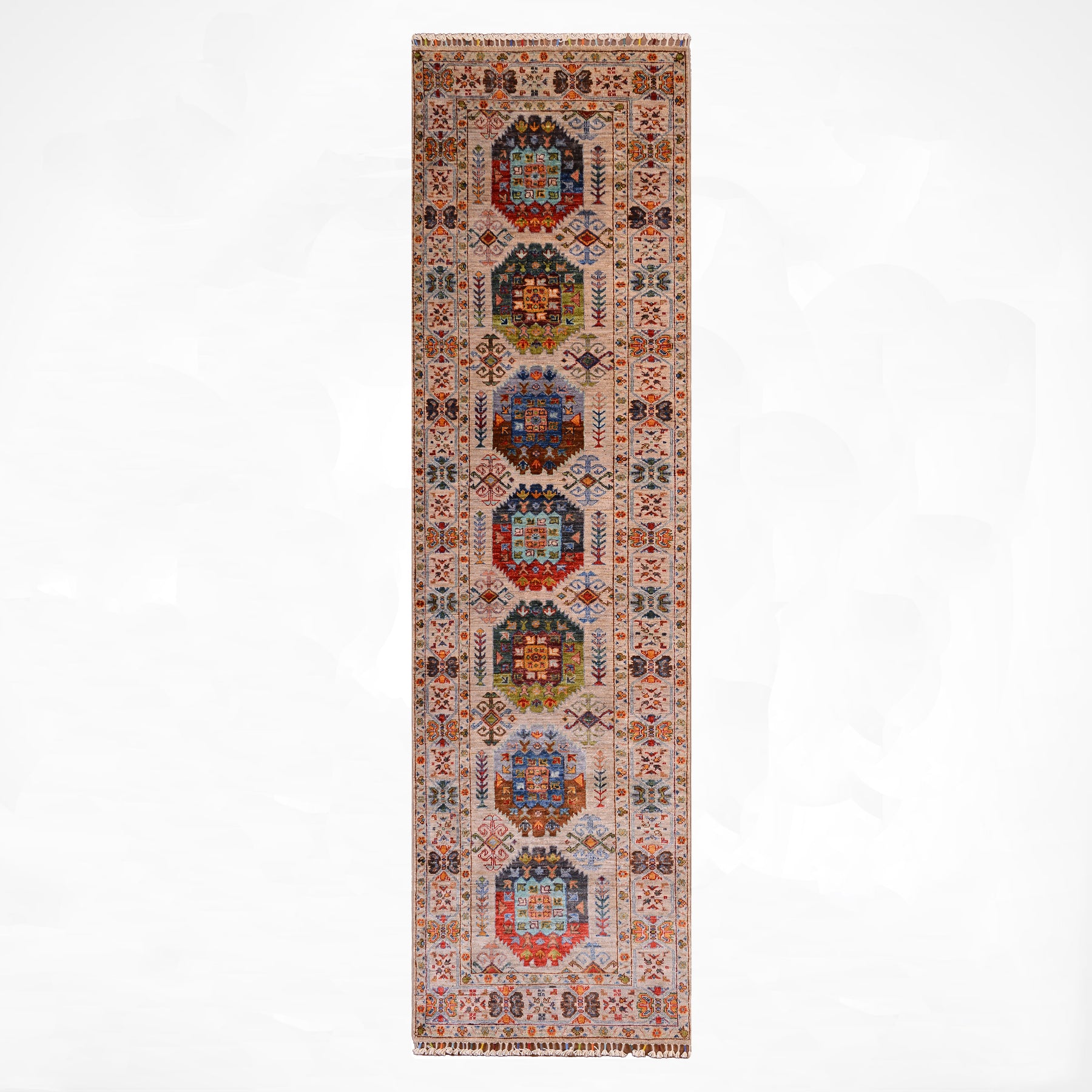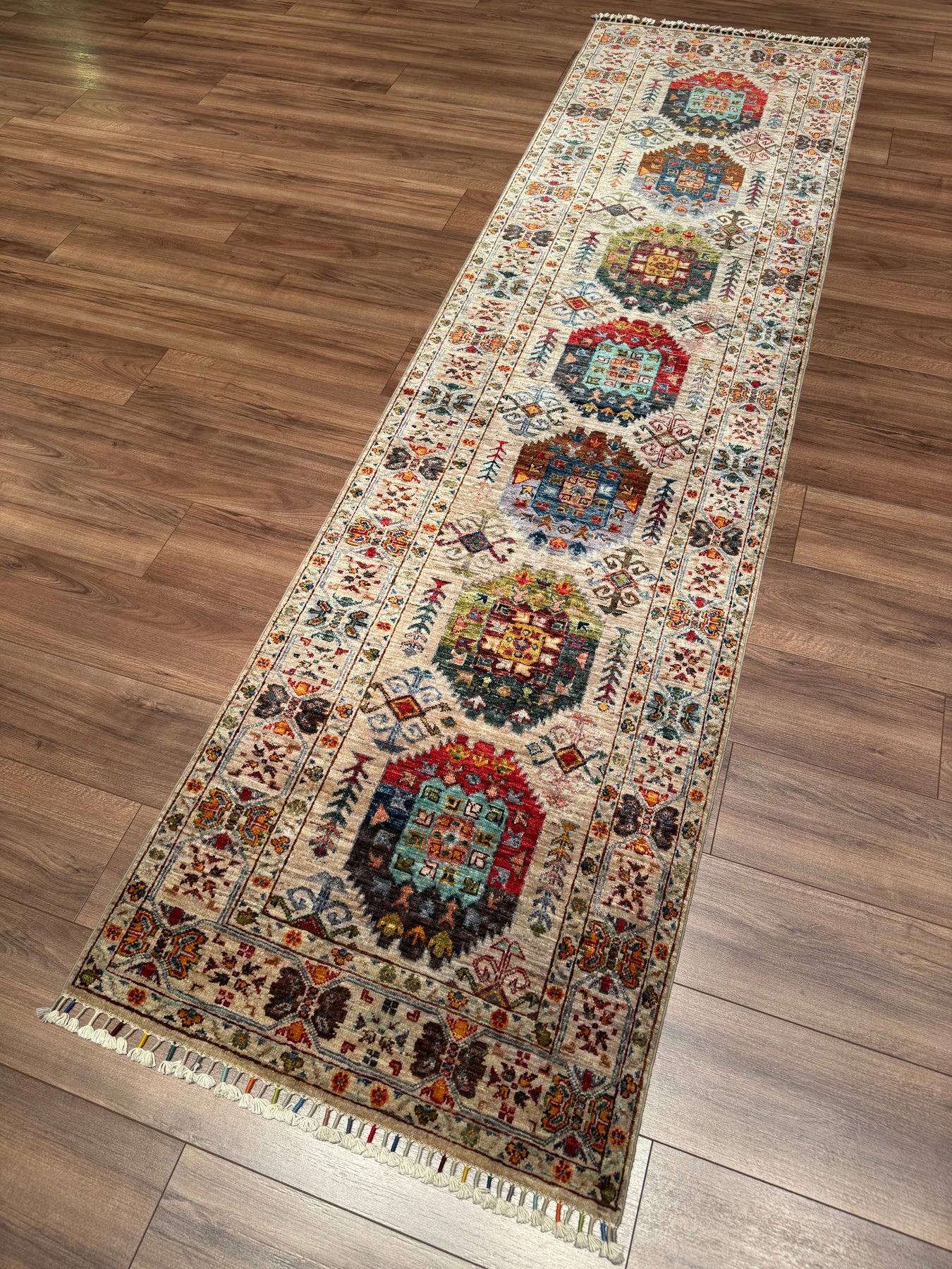 Veziri Orijinal El Dokuması Yolluk Bej Kök Boya Yün Halı 0.79x300 2.37 Metrekare - 3x10 ft