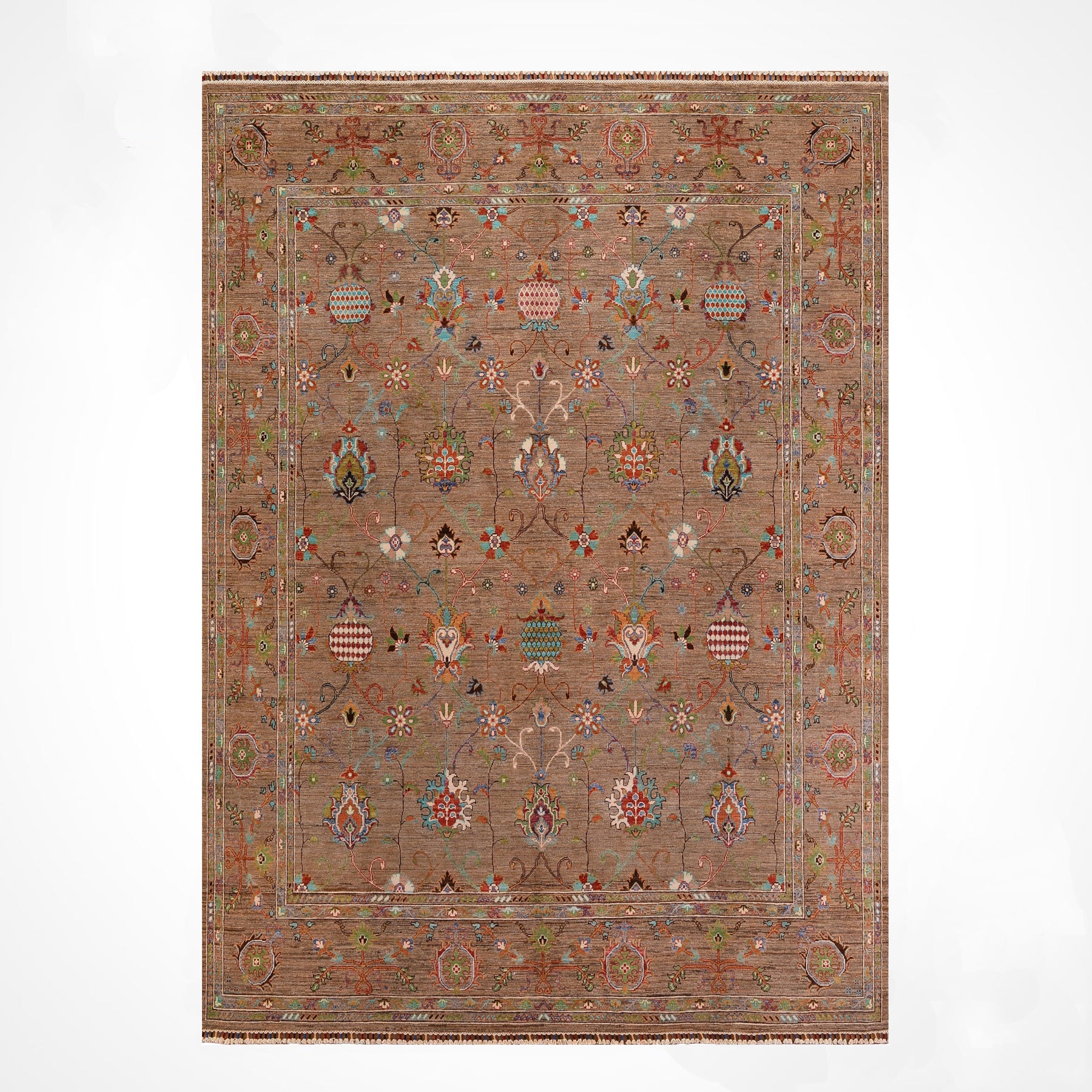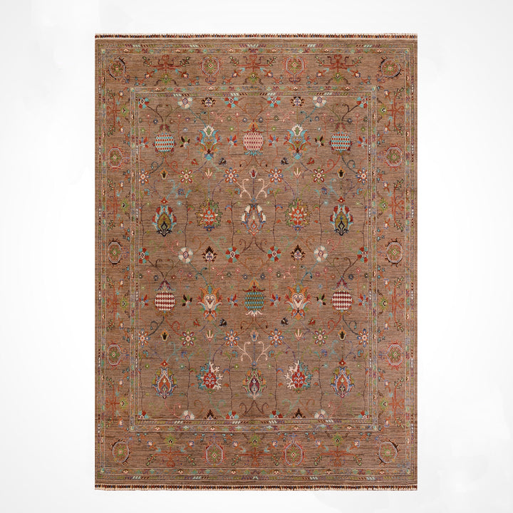 Sultani Binbirgece Orijinal El Dokuması Kahverengi Kök Boya Yün Halı 246x301 7.40 Metrekare - 8x10 ft