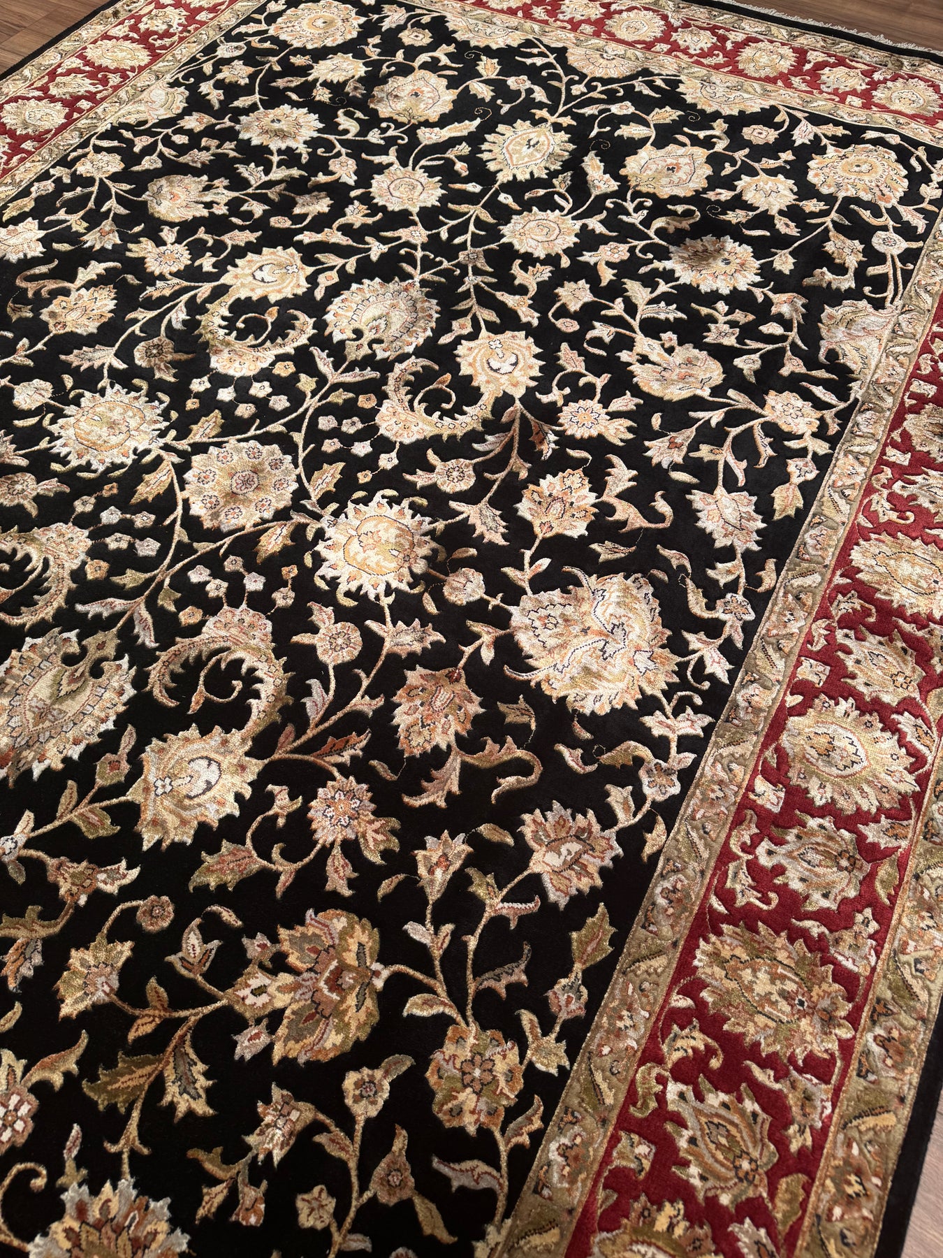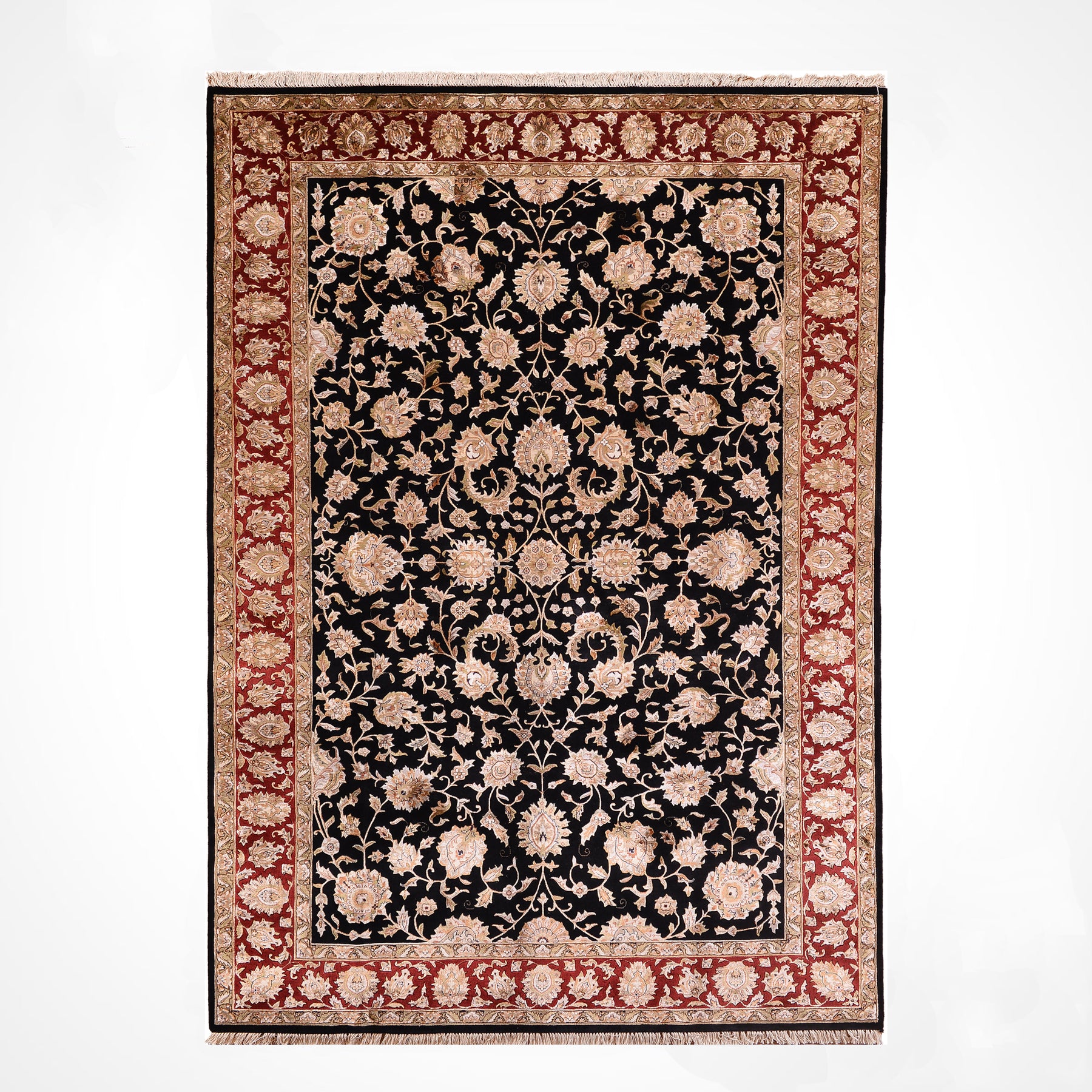 Hint Uşağı Orijinal El Dokuması Siyah Kırmızı Yün Bambu Halı 203x307 6.23 Metrekare - 8x10 ft
