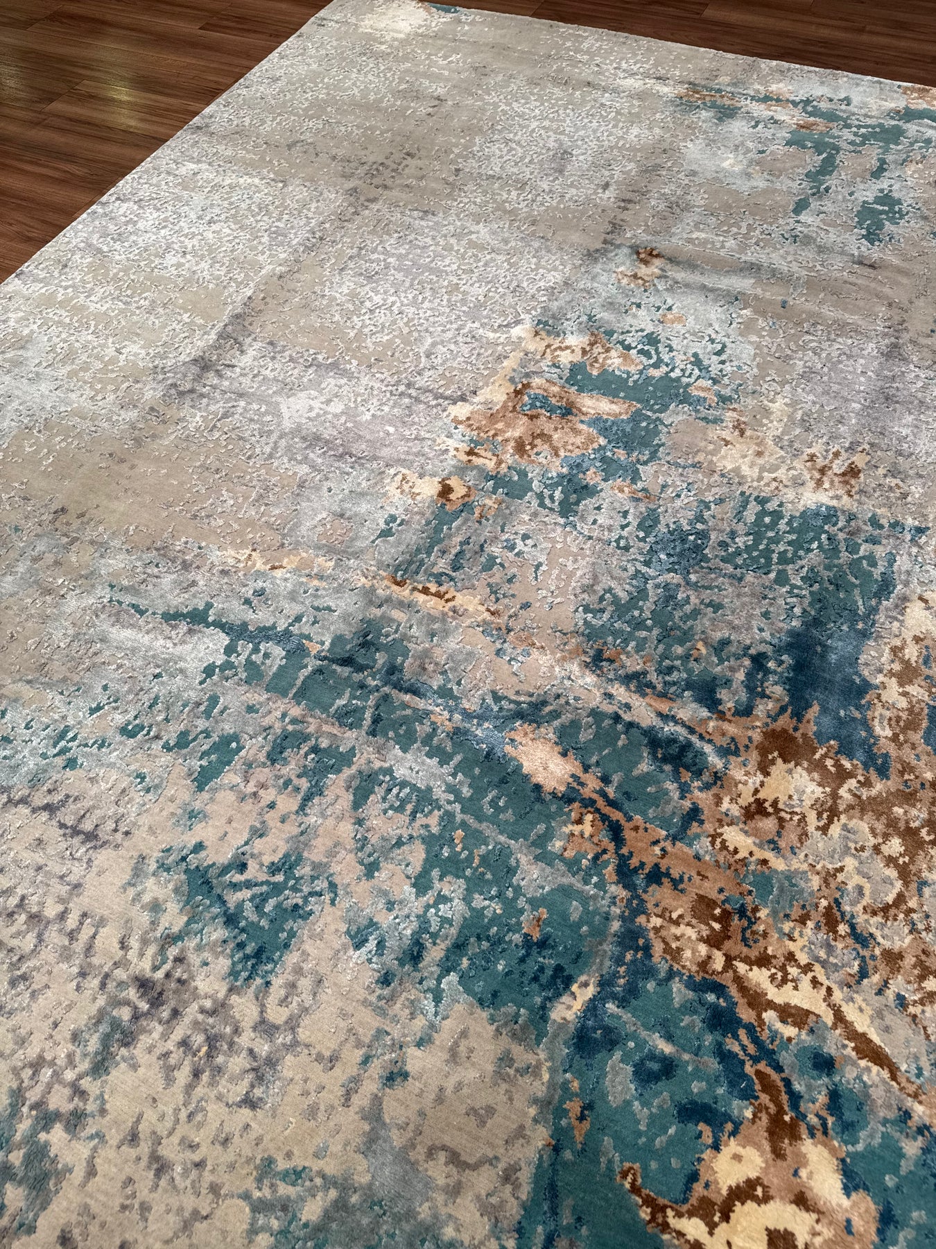 New Diamond Orijinal El Dokuması Gri Yün Bambu Halı 249x308 7.67 Metrekare - 8x10 ft