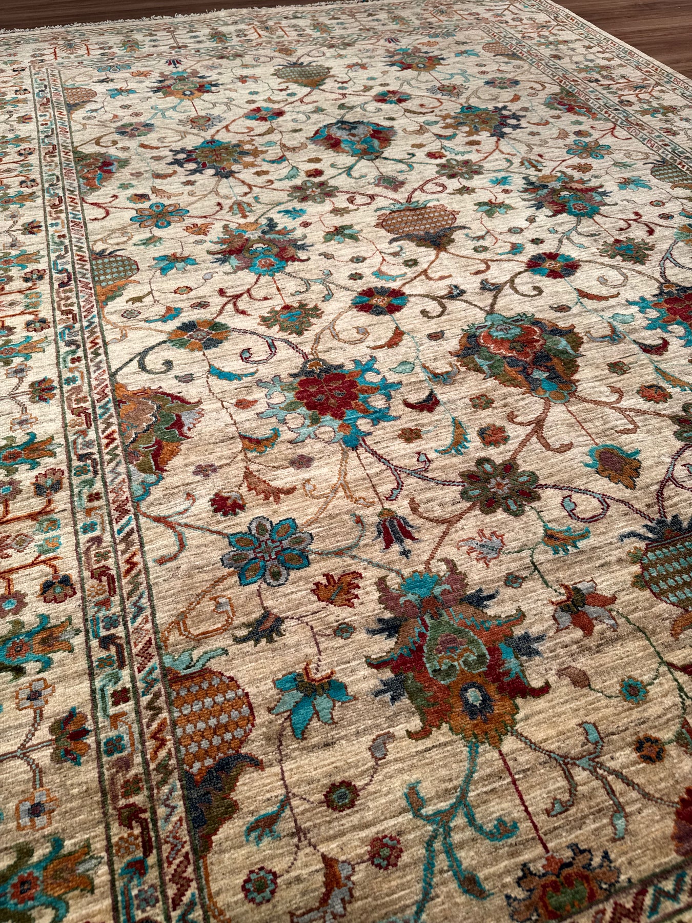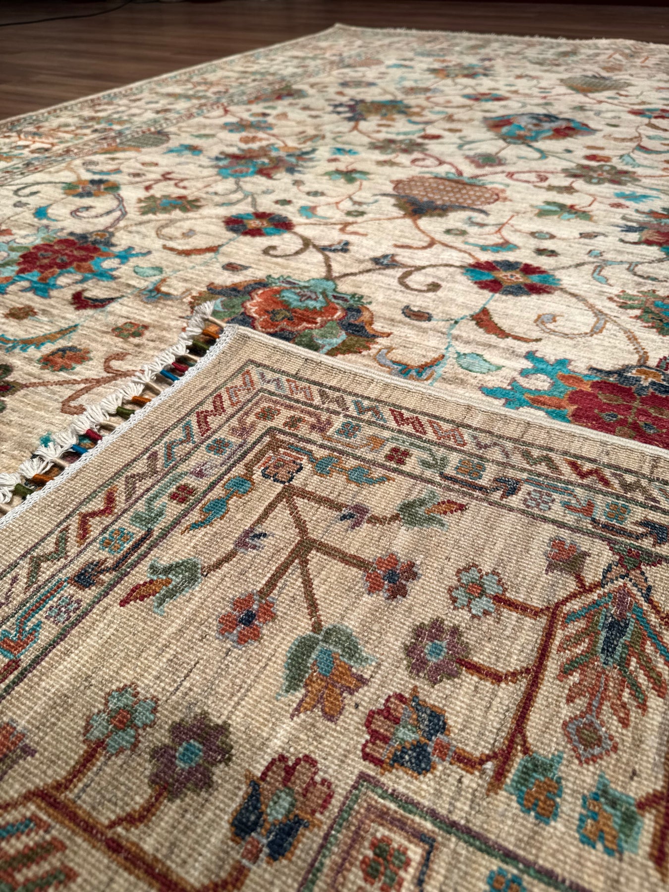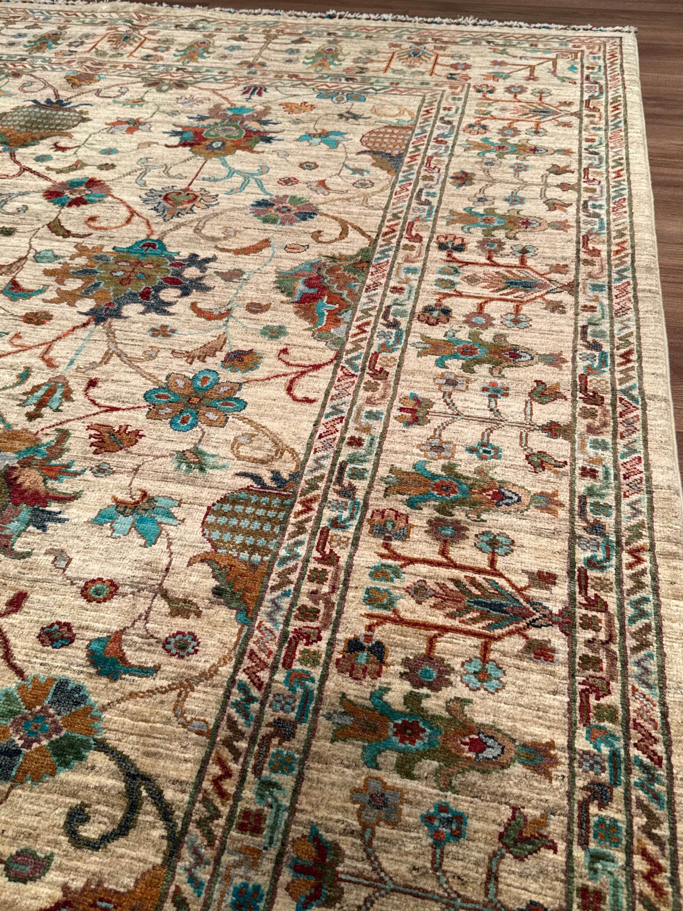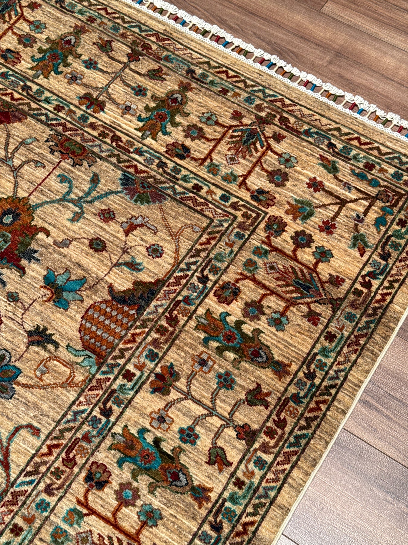Sultani Binbirgece Orijinal El Dokuması Bej Kök Boya Yün Halı 207x288 5.96 Metrekare - 7x10 ft