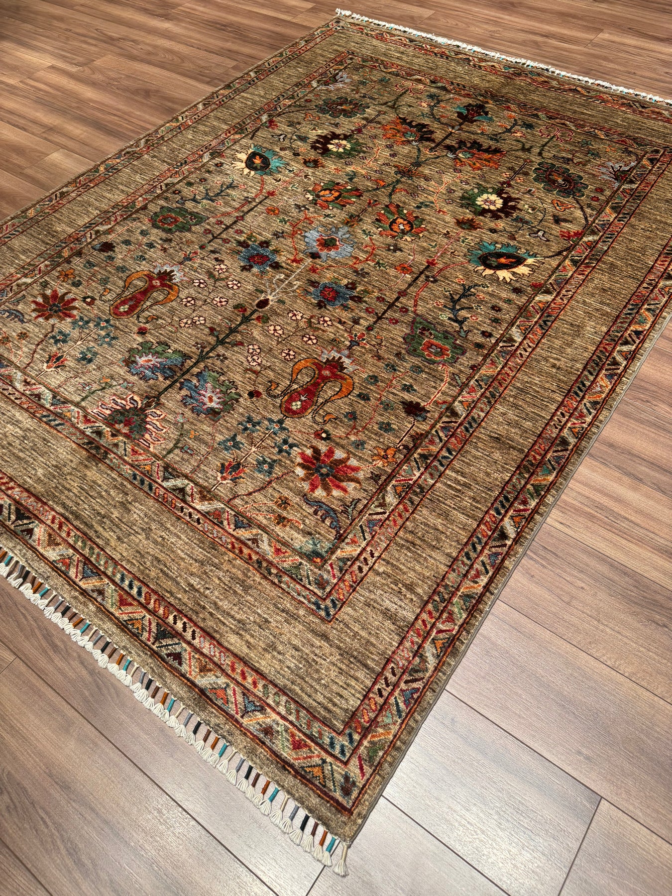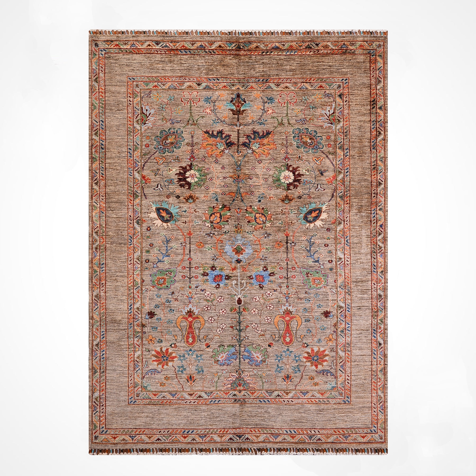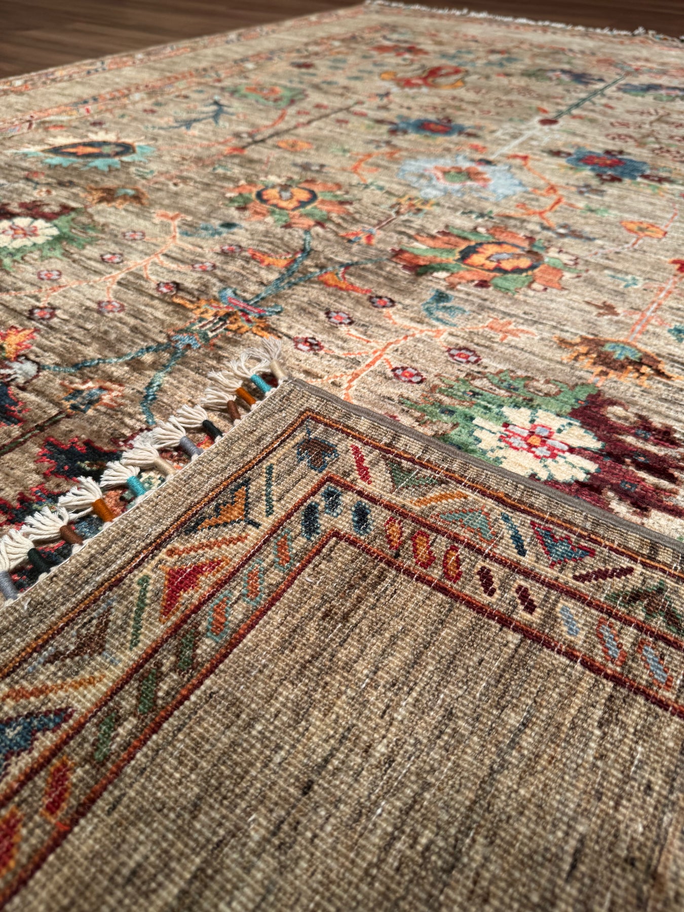 Sultani Çiçekli Orijinal El Dokuması Bej Kök Boya Yün Halı 171x230 3.93 Metrekare - 5x8 ft