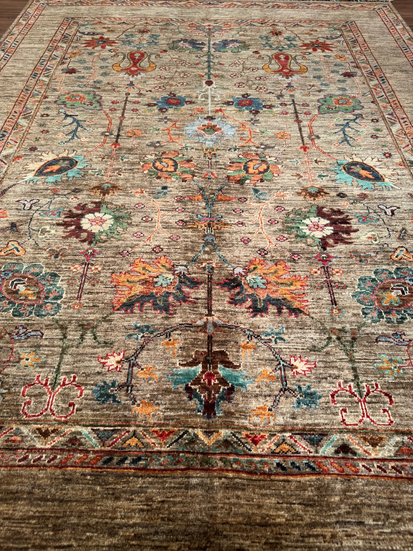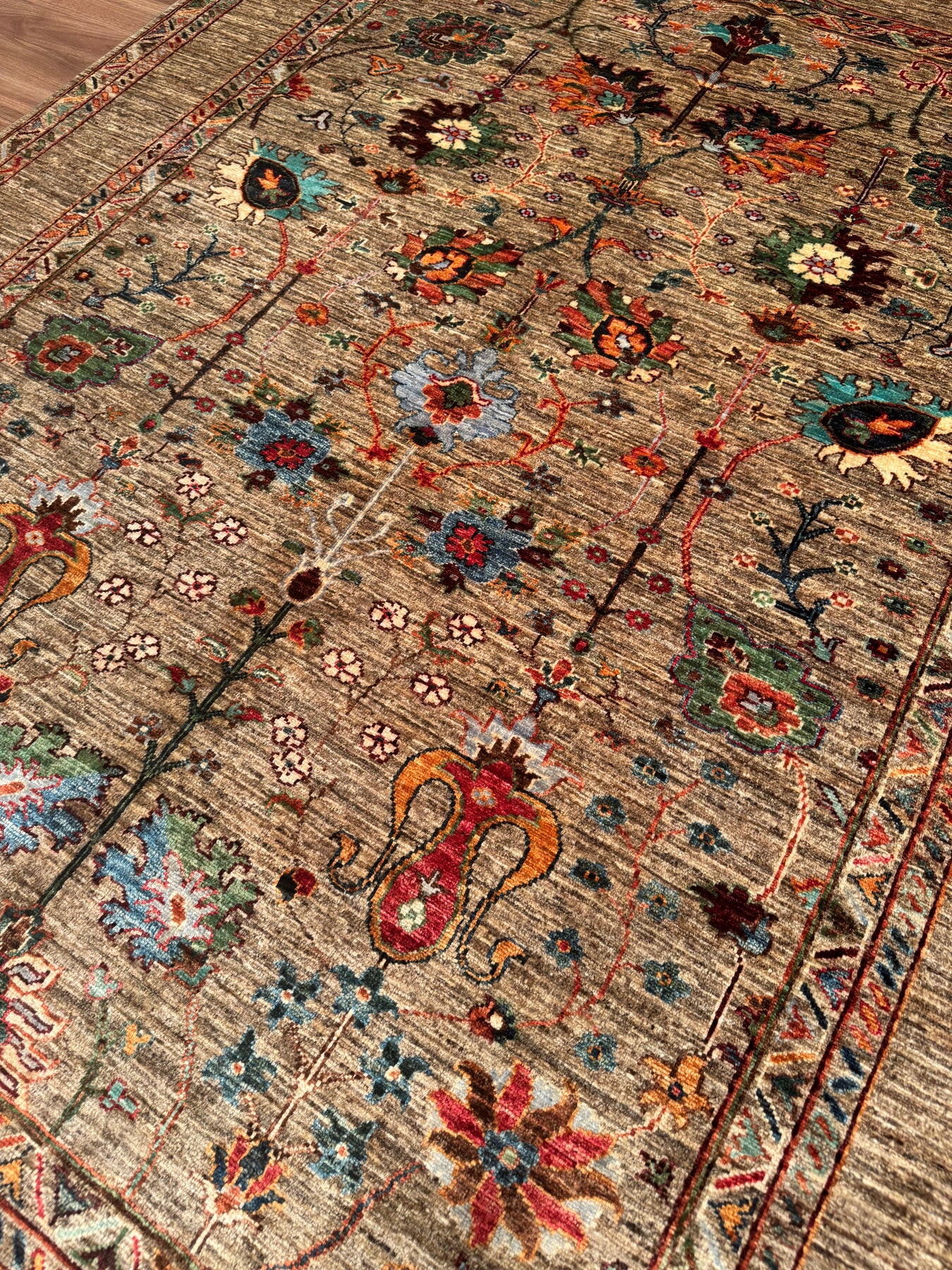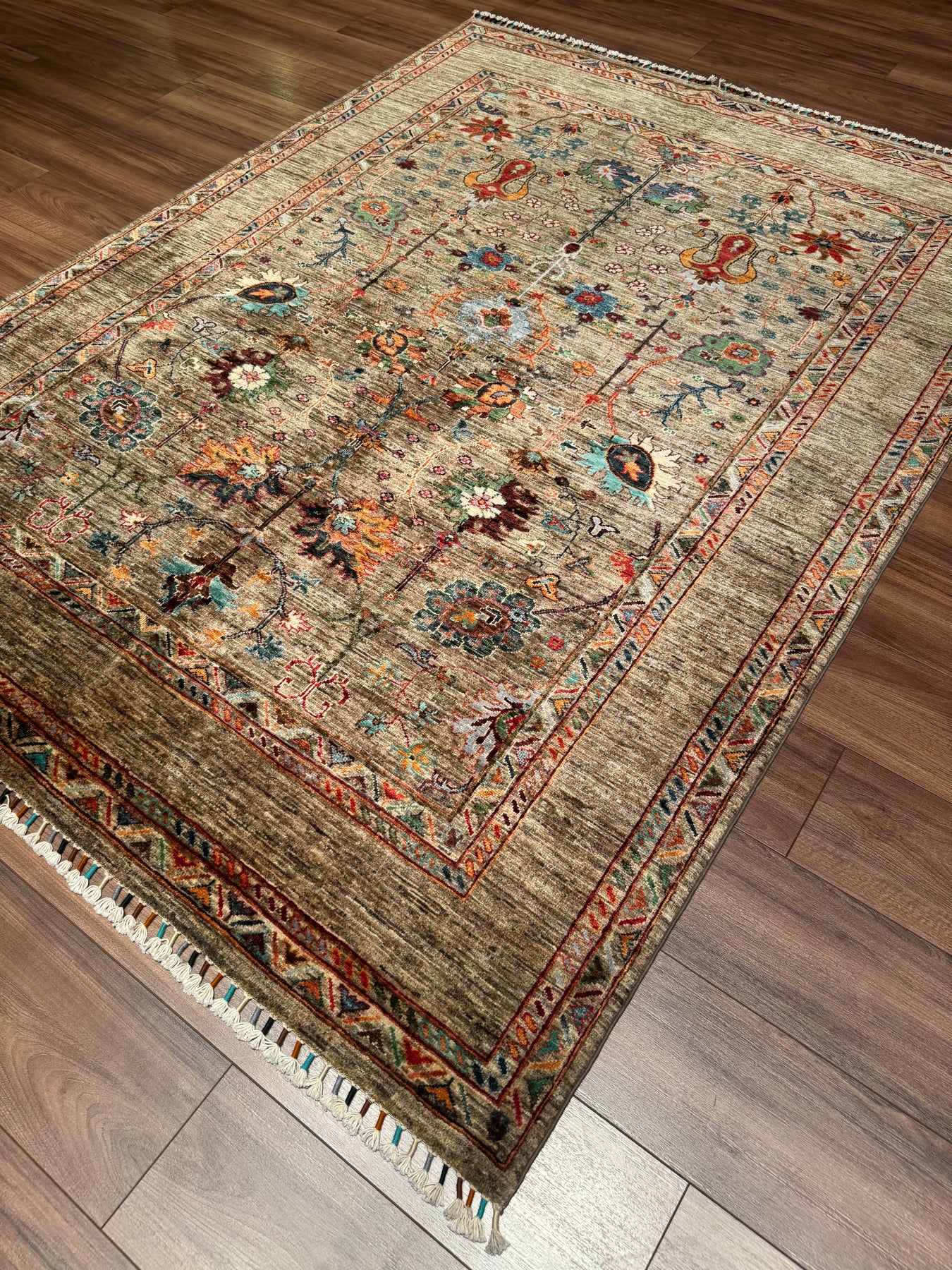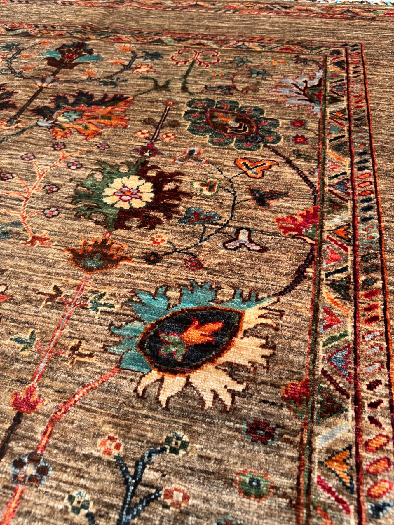 Sultani Çiçekli Orijinal El Dokuması Bej Kök Boya Yün Halı 171x230 3.93 Metrekare - 5x8 ft