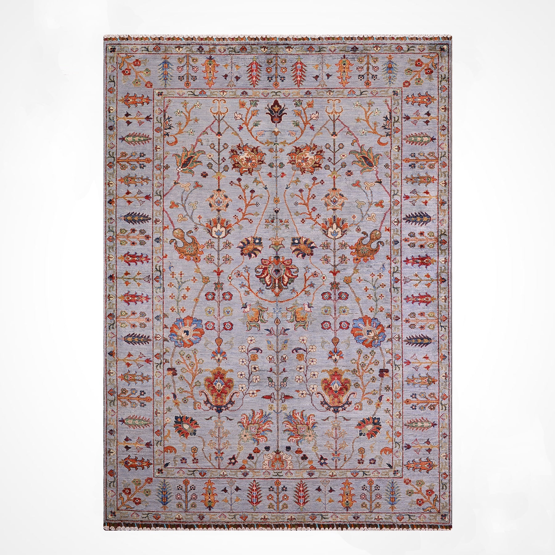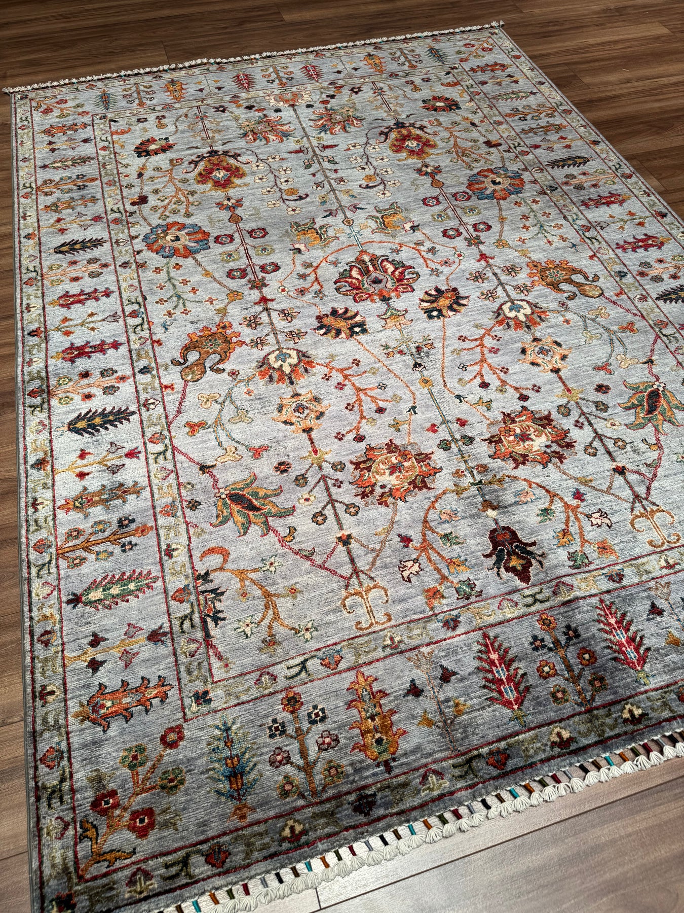 Sultani Çiçekli Orijinal El Dokuması Gri Kök Boya Yün Halı 175x236 4.13 Metrekare - 5x8 ft