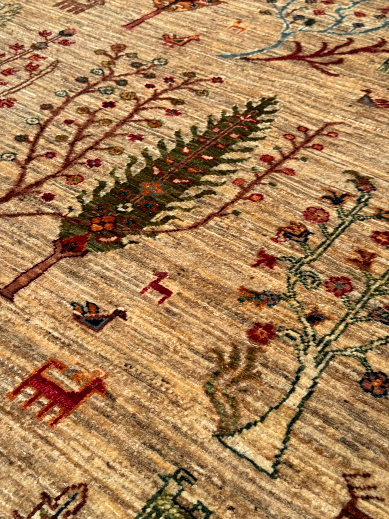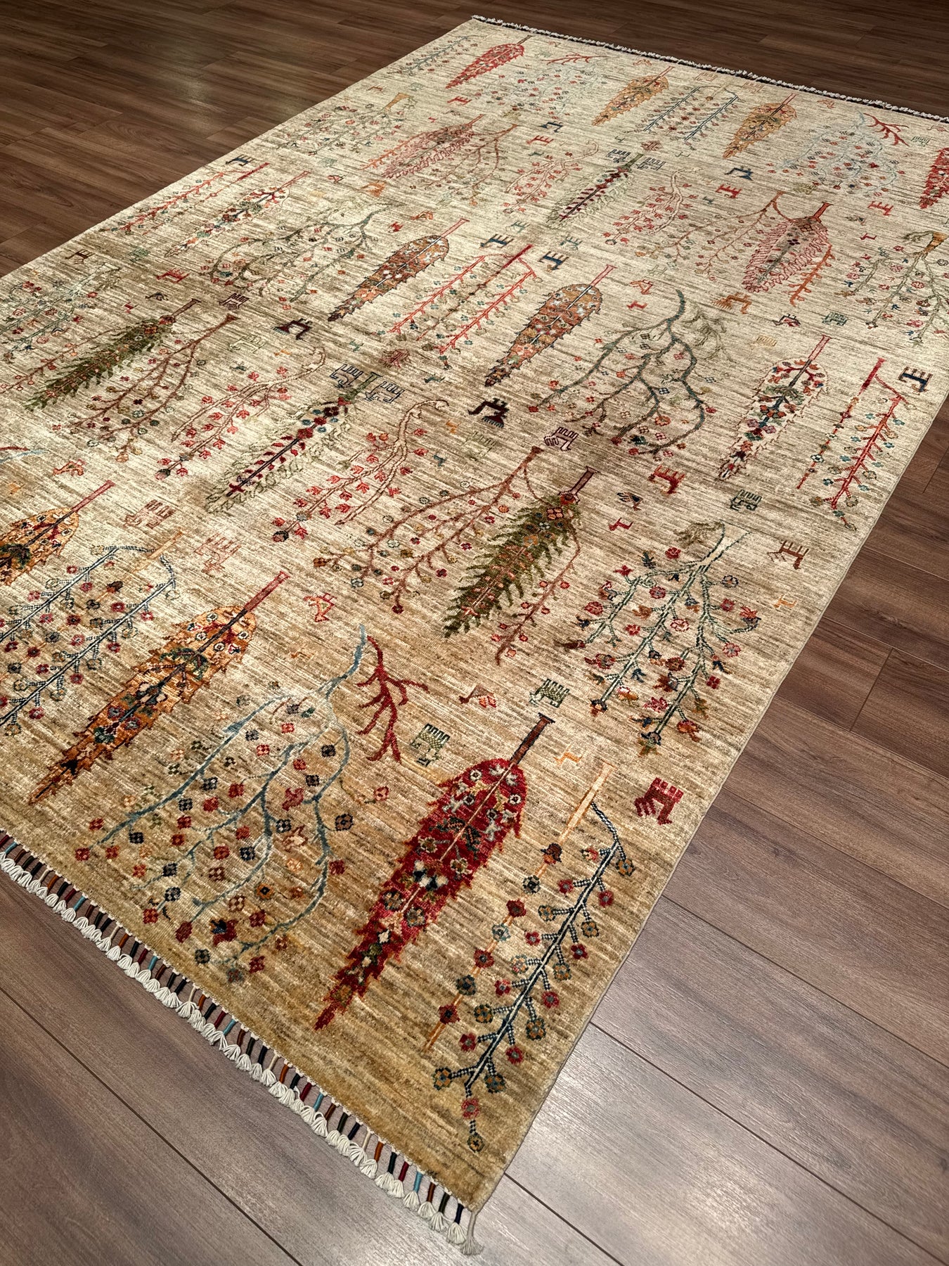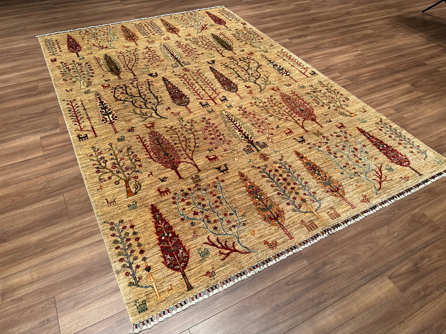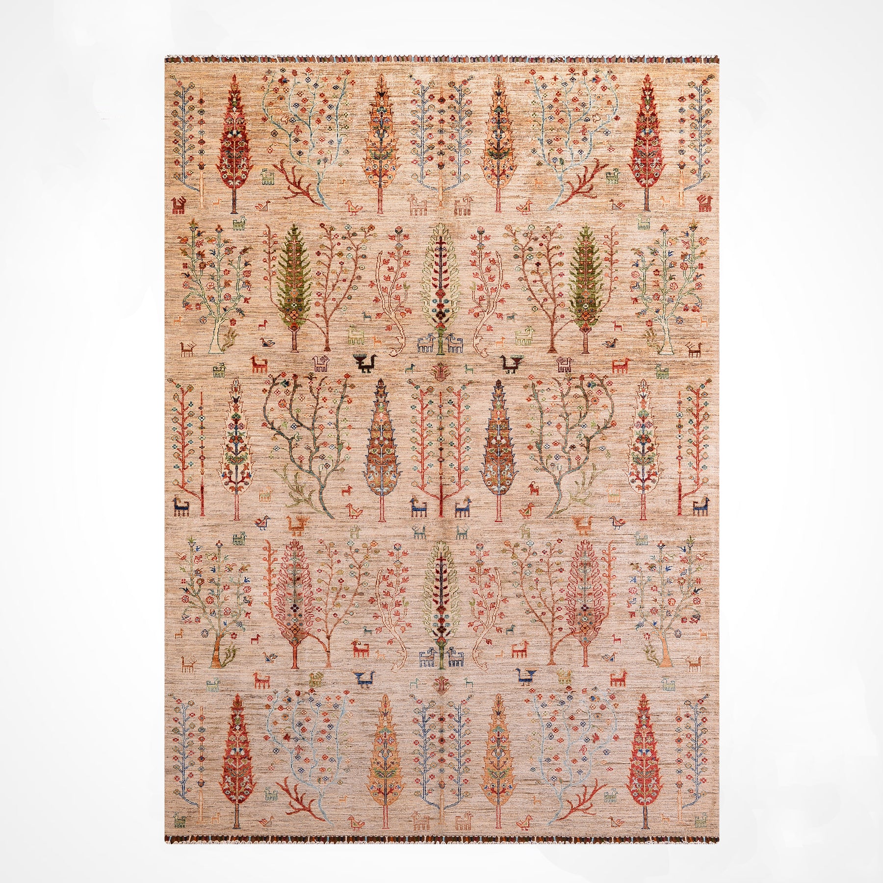 Sultani Hayat Ağacı Orijinal El Dokuması Bej Kök Boya Yün Halı 207x300 6.21 Metrekare - 8x10 ft
