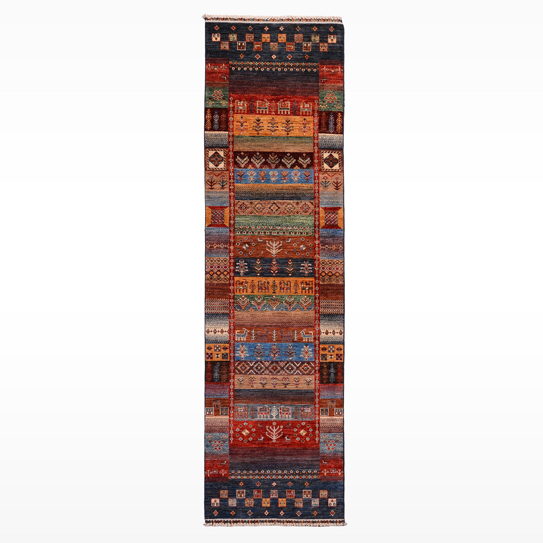Khorjin Gabbe Desenli Orijinal El Dokuması Yolluk Multi Kök Boya Yün Halı 0.79x298 2.35 Metrekare - 3x10 ft