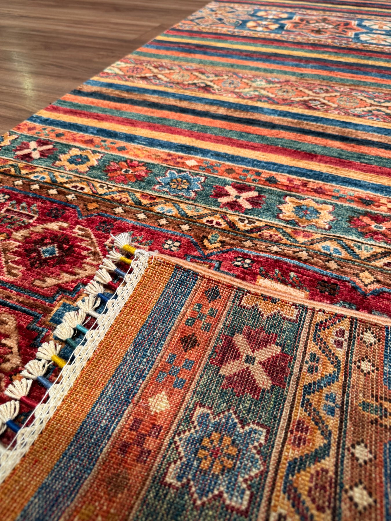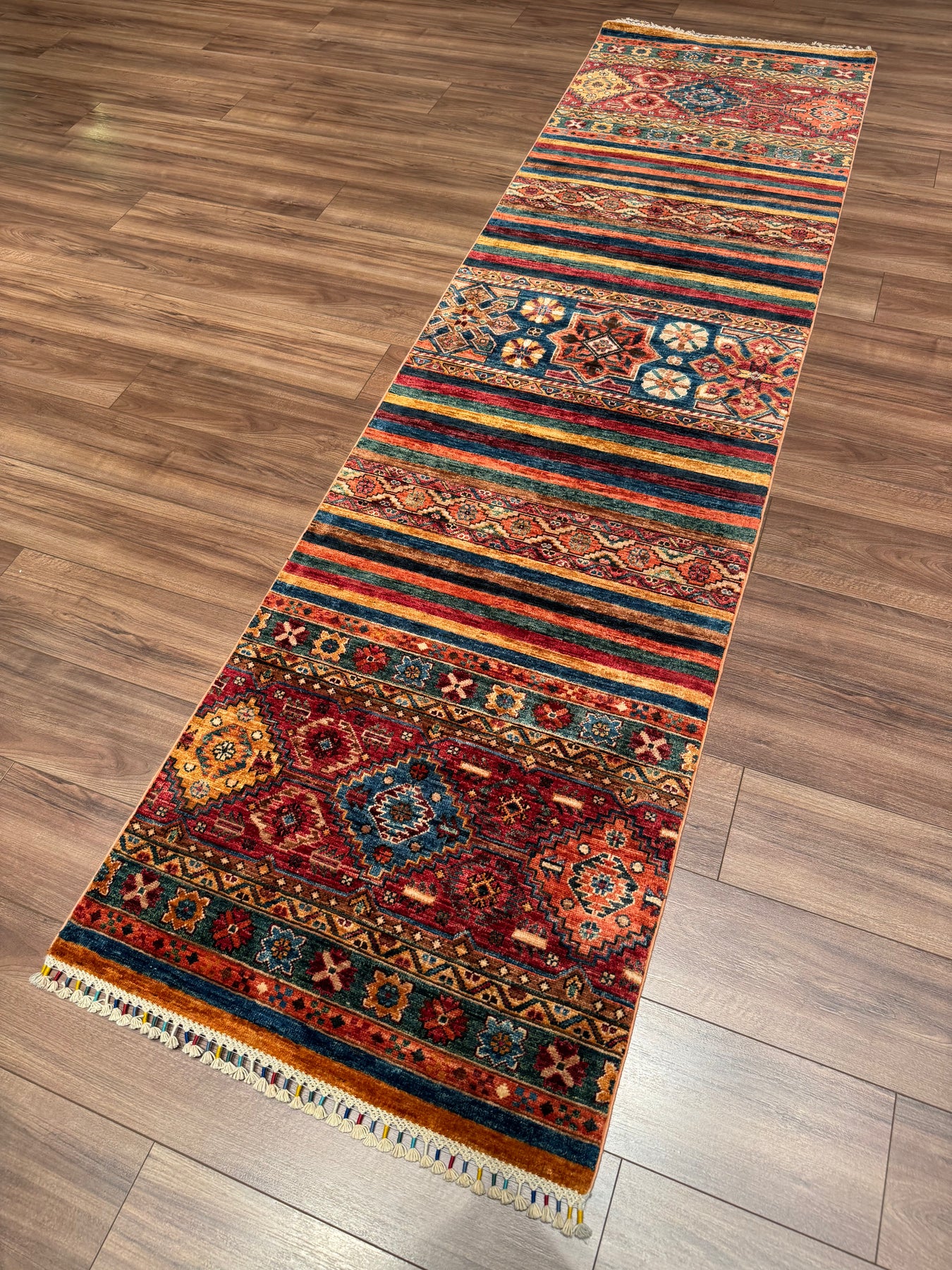 Khorjin Gabbe Desenli Orijinal El Dokuması Yolluk Multi Kök Boya Yün Halı 0.82x302 2.48 Metrekare - 3x10 ft