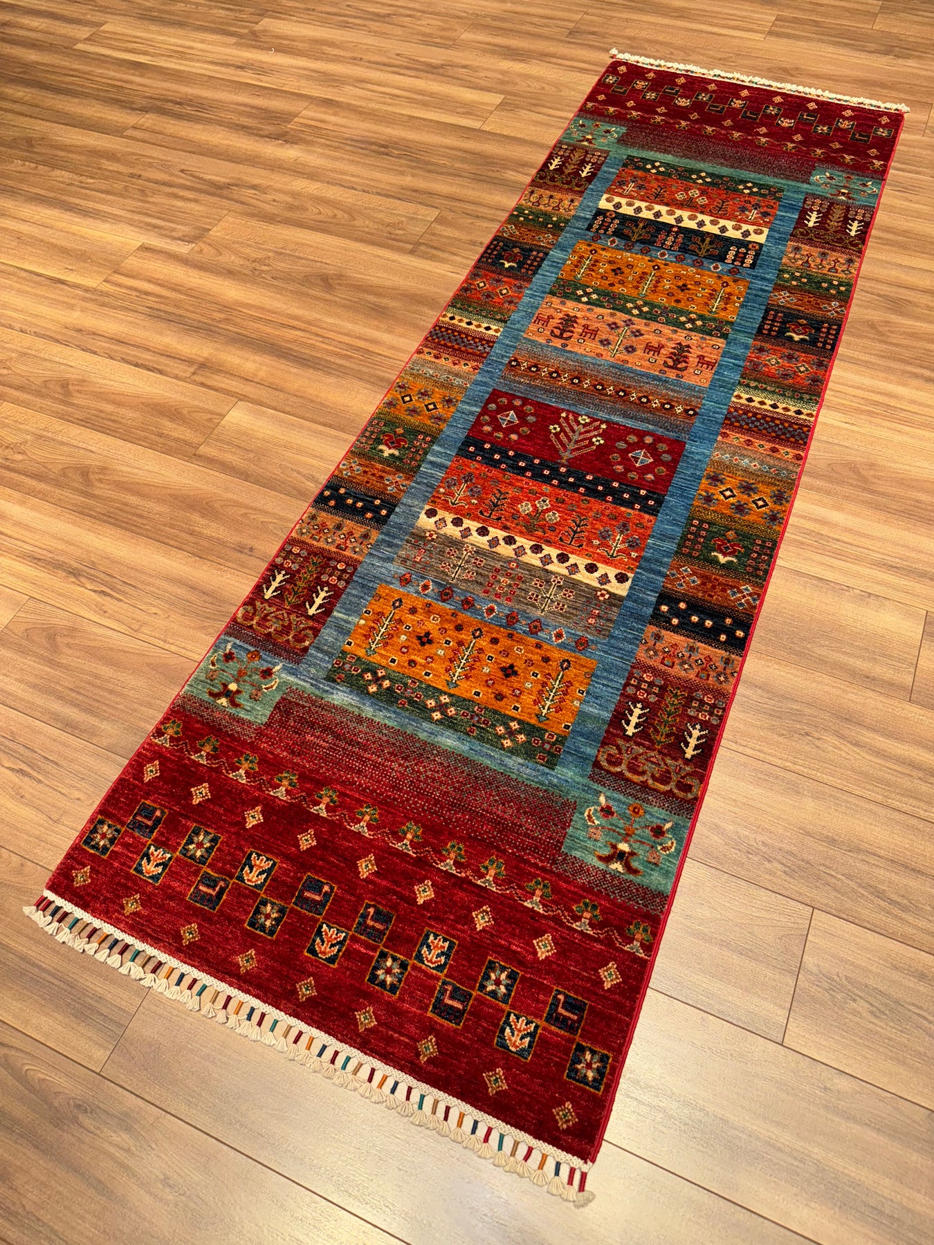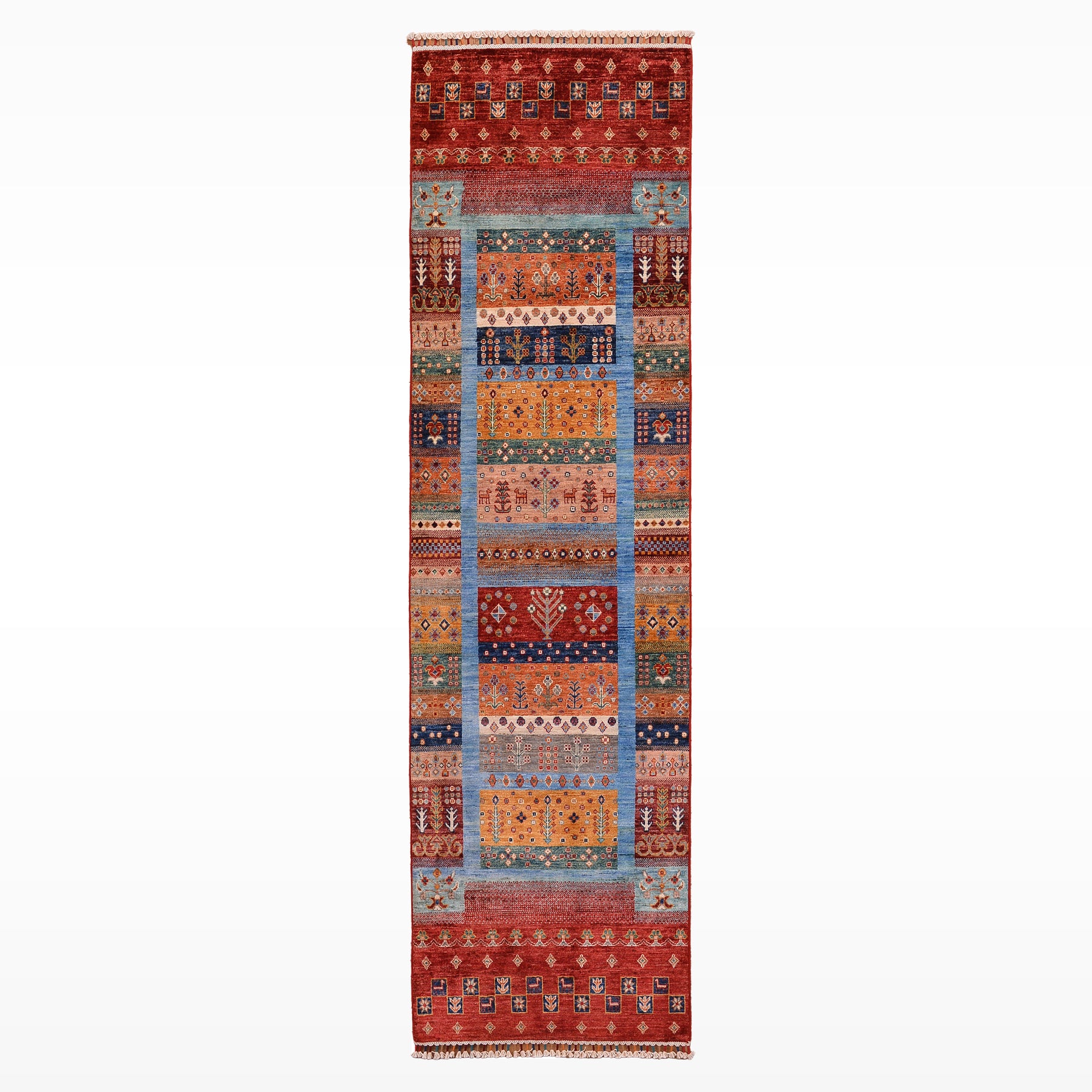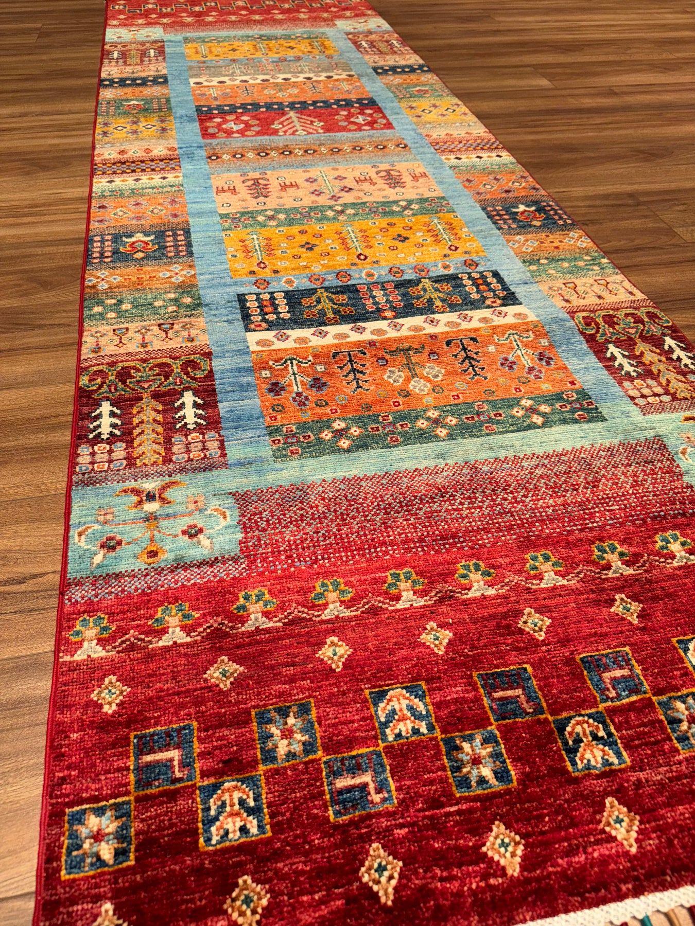 Khorjin Gabbe Desenli Orijinal El Dokuması Yolluk Multi Kök Boya Yün Halı 0.83x252 2.09 Metrekare - 3x8 ft