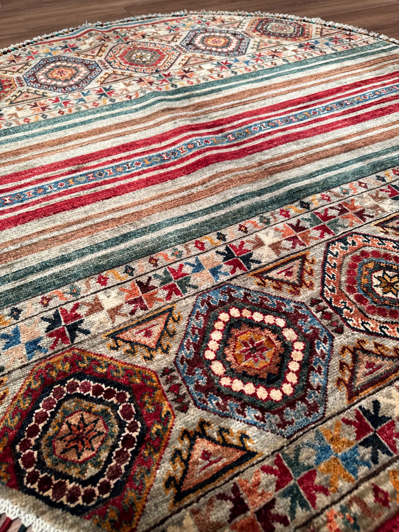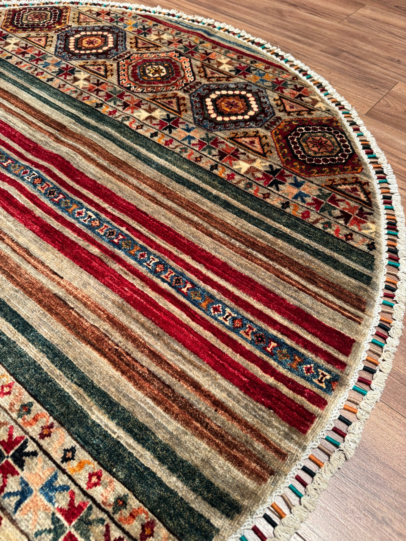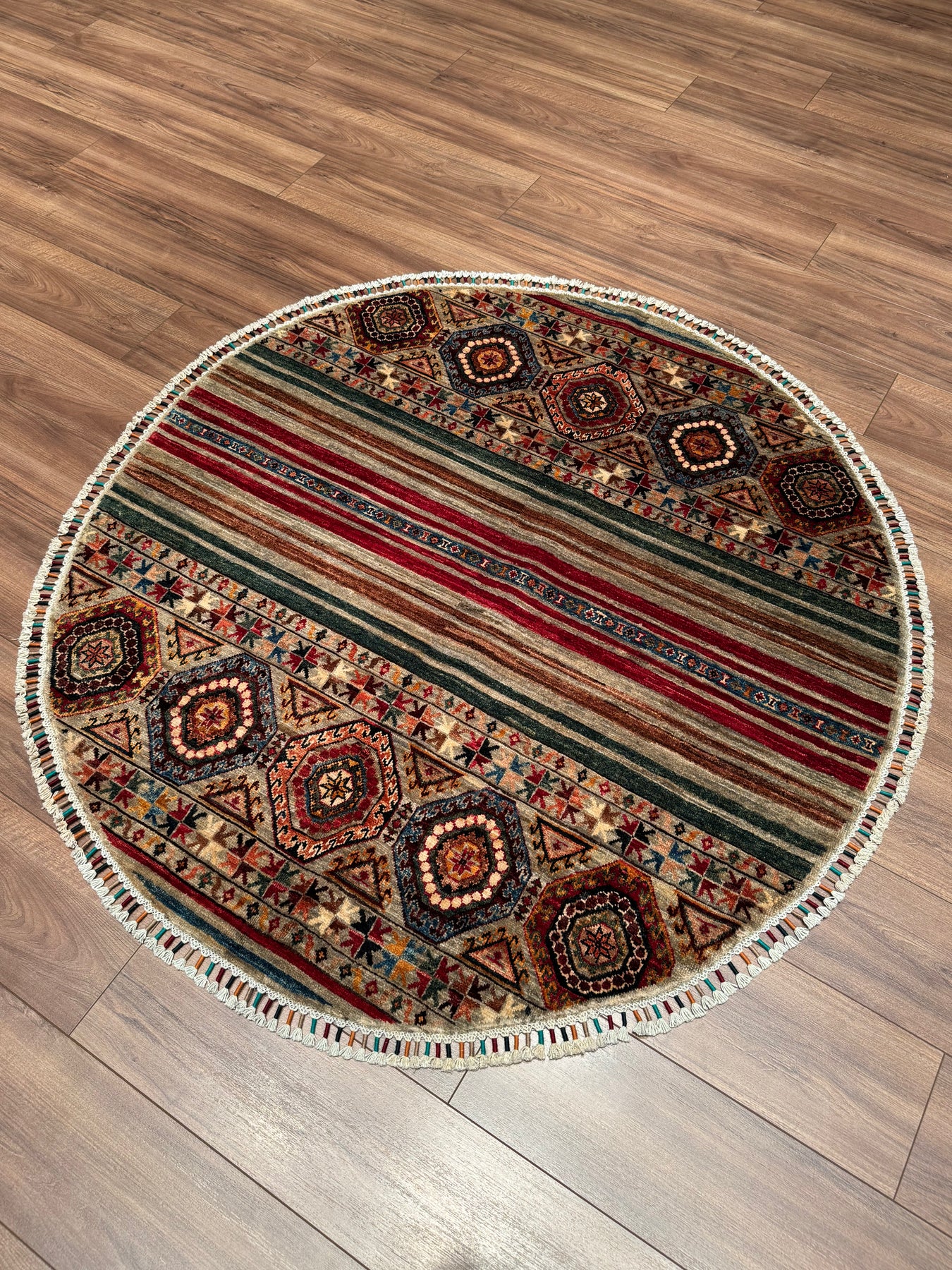 Khorjin Yuvarlak Orijinal El Dokuması Multi Kök Boya Yün Halı 140x144 2.01 Metrekare - 5x5 ft