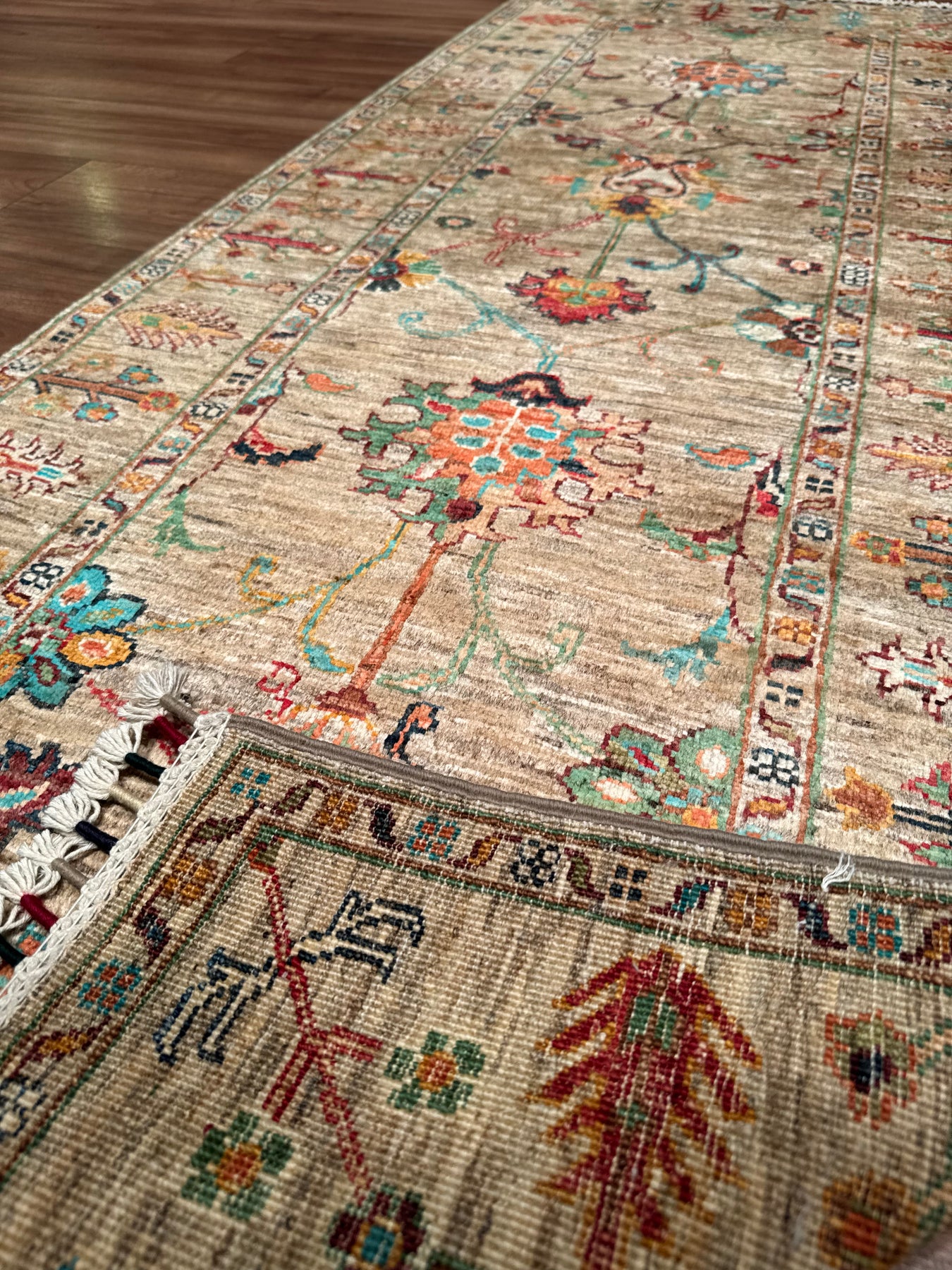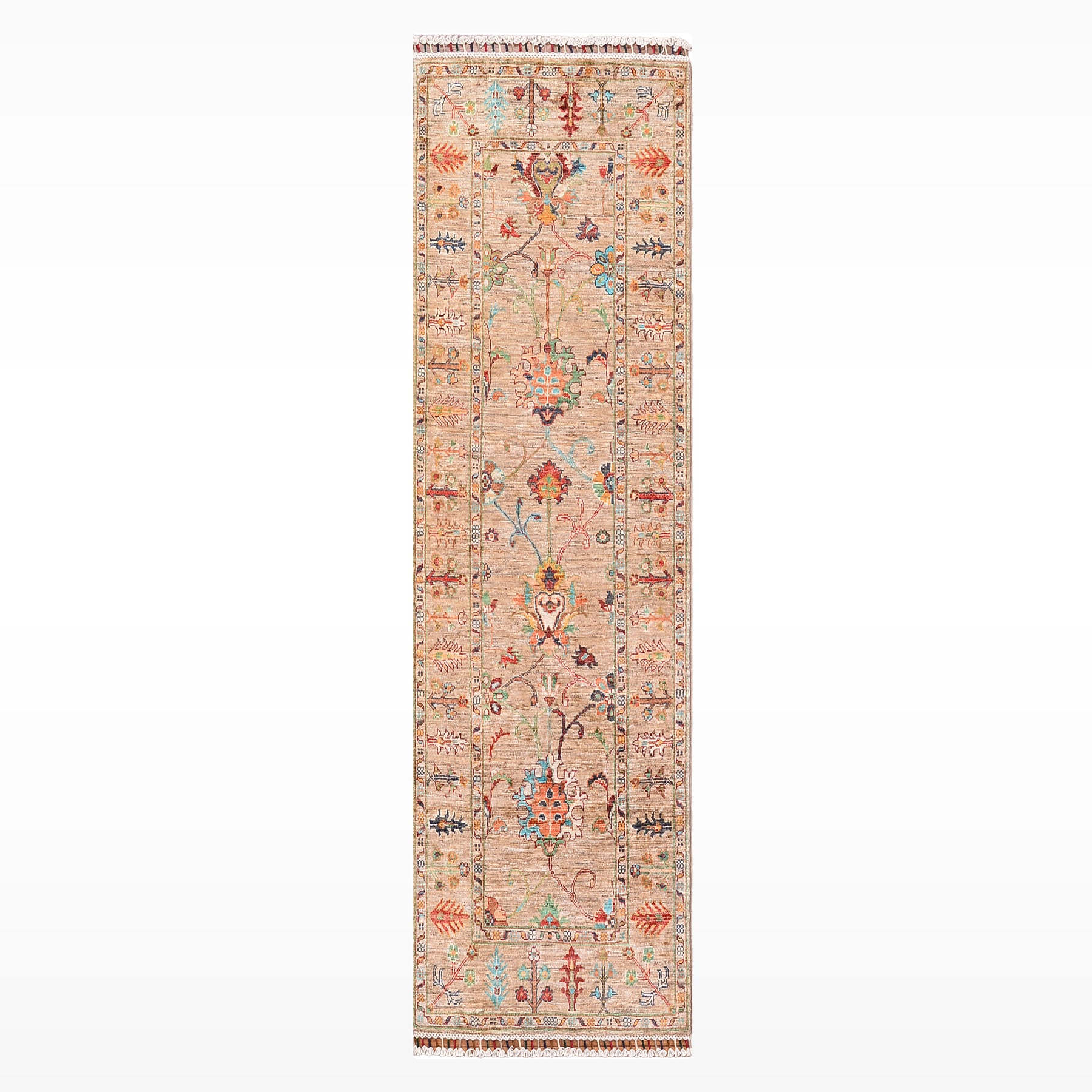 Sultani Binbirgece Yolluk Orijinal El Dokuması Bej Kök Boya Yün Halı 0.75x201 1.51 Metrekare - 3x6 ft