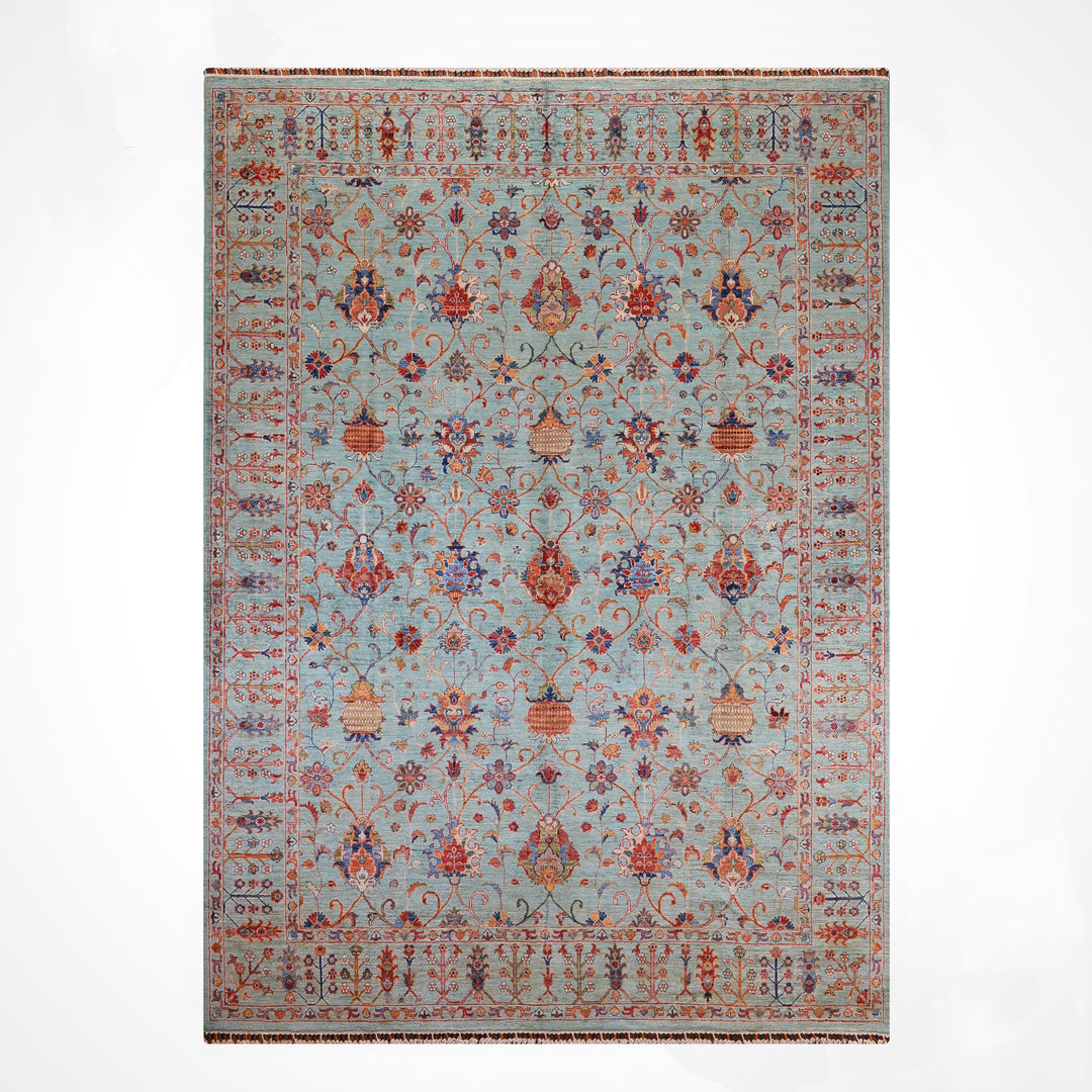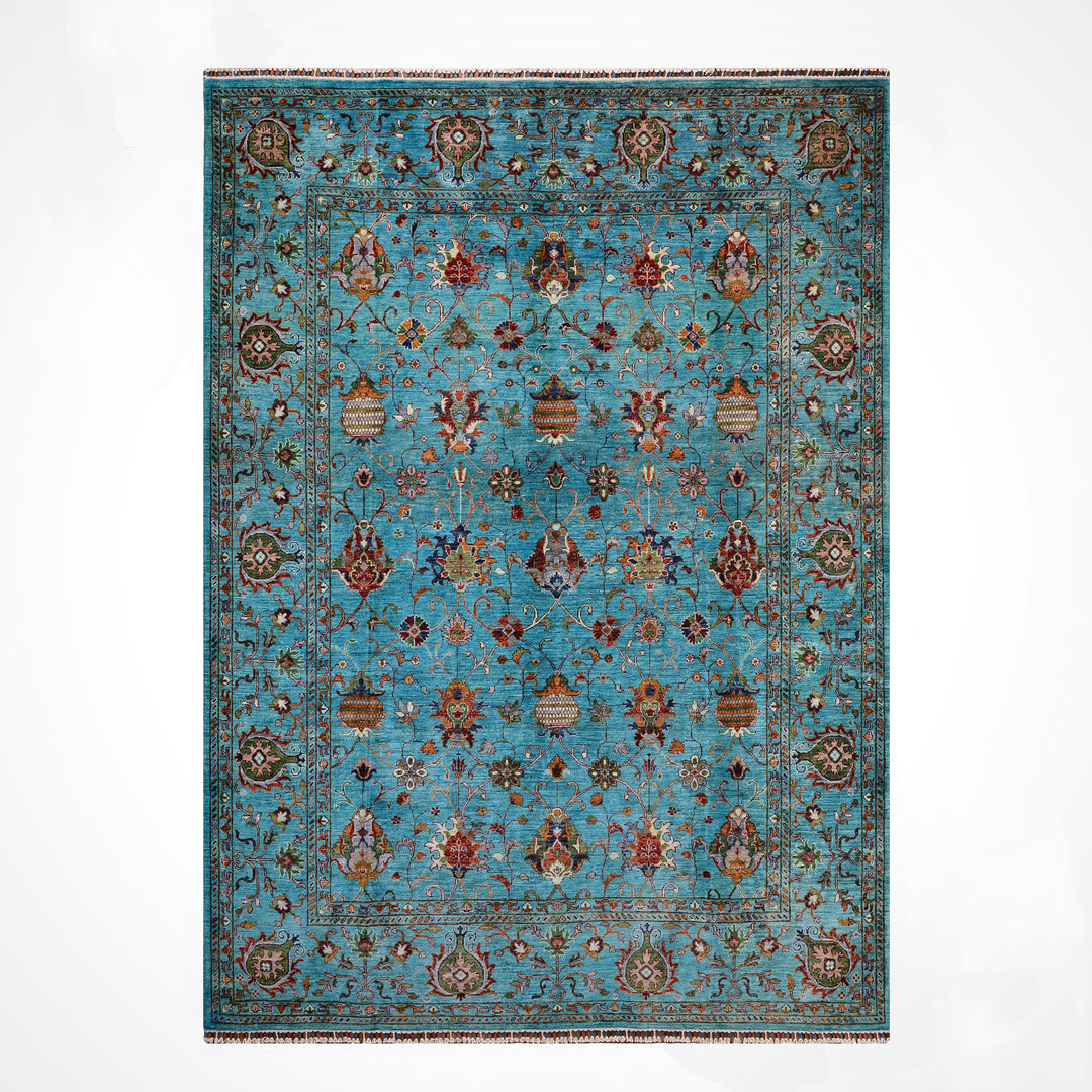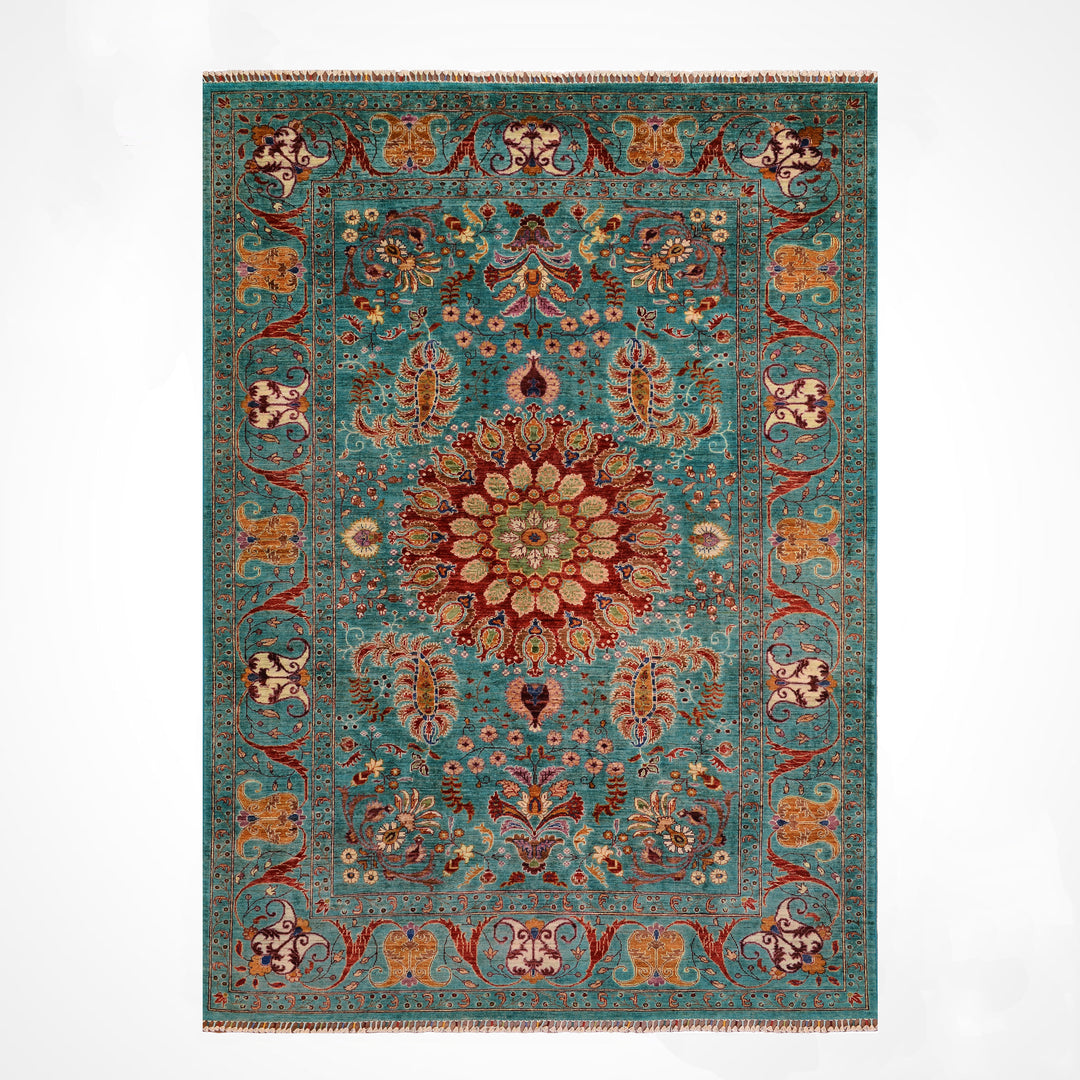 Turkuaz, mavi ve yeşil tonlarının zarif bir birleşimidir. Bu özel renk, doğada su ve gökyüzü gibi huzur verici öğelerle bağdaştırıldığı için yaşam alanlarında kullanıldığında stres azaltıcı ve pozitif bir atmosfer yaratır. Turkuaz halılar, hem klasik hem modern dekorasyon tarzlarına uyum sağlayarak bulunduğu ortamda dikkat çeken ama göz yormayan bir vurgu görevi üstlenir.