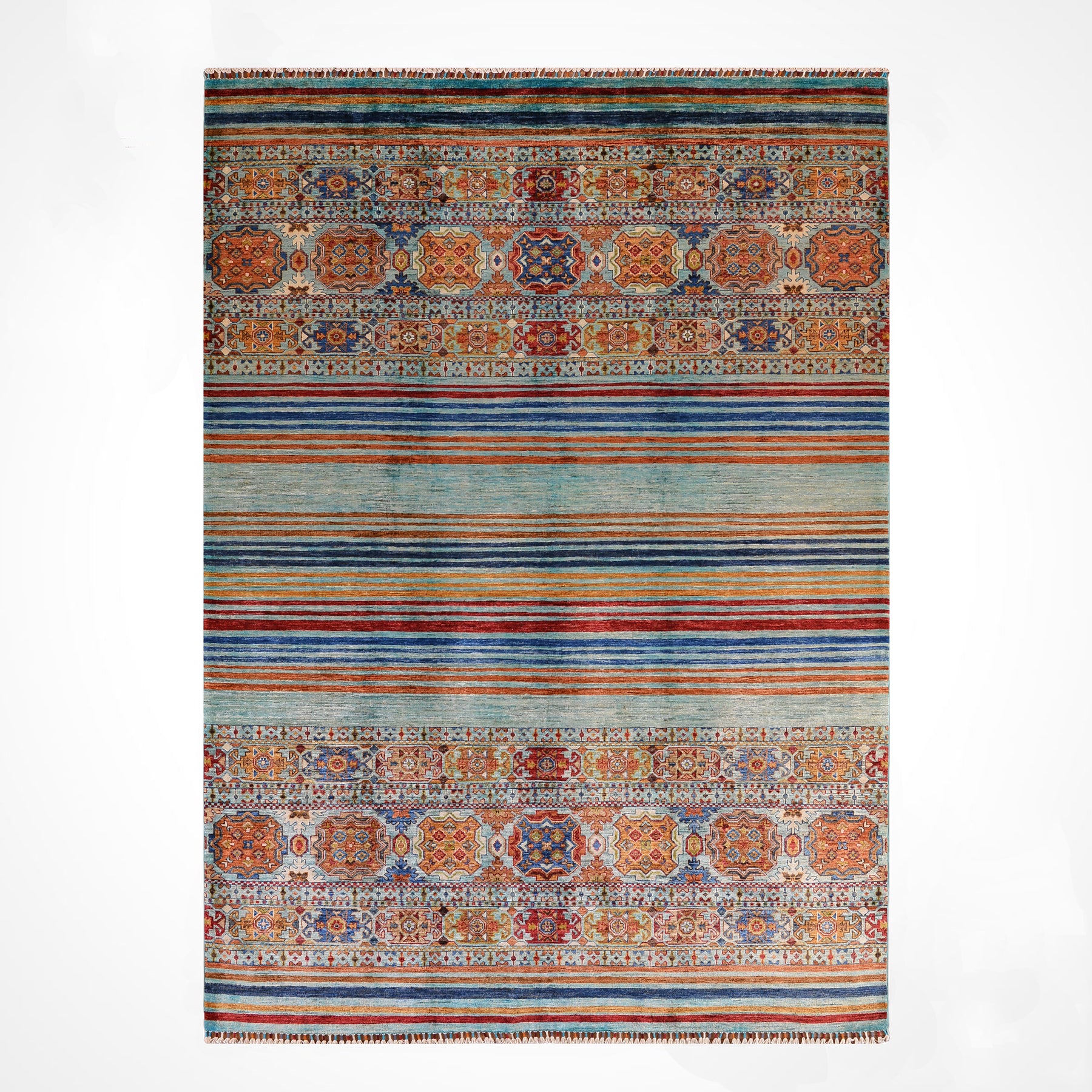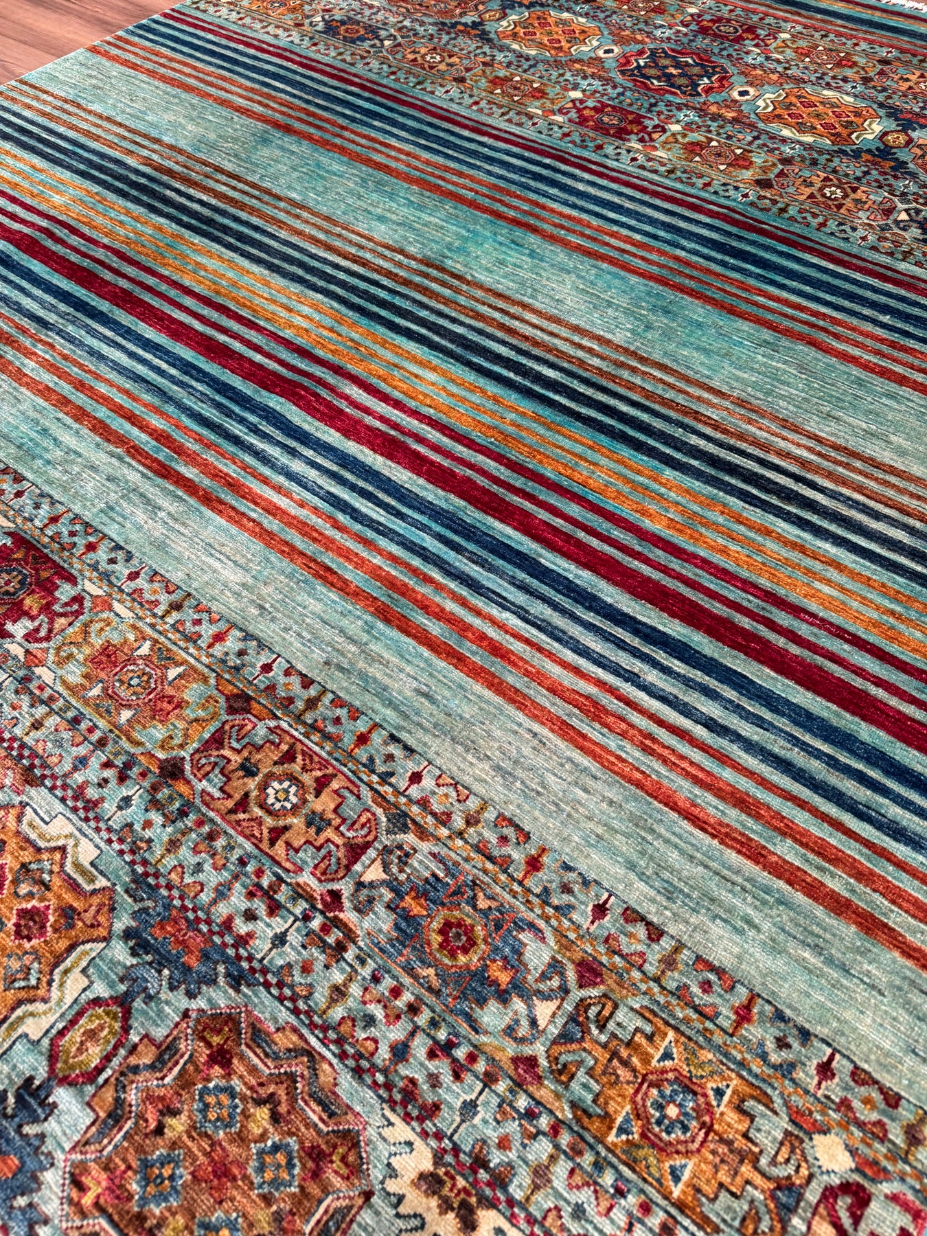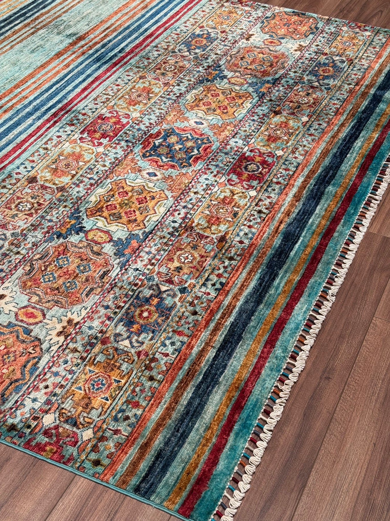 Khorjin Orijinal El Dokuması Turkuaz Kök Boya Yün Halı 206x292 6.02 Metrekare - 7x10 ft