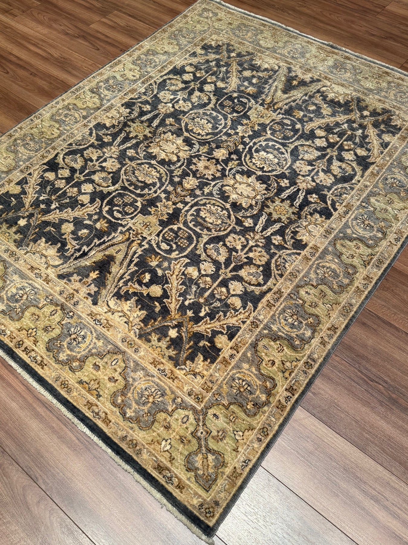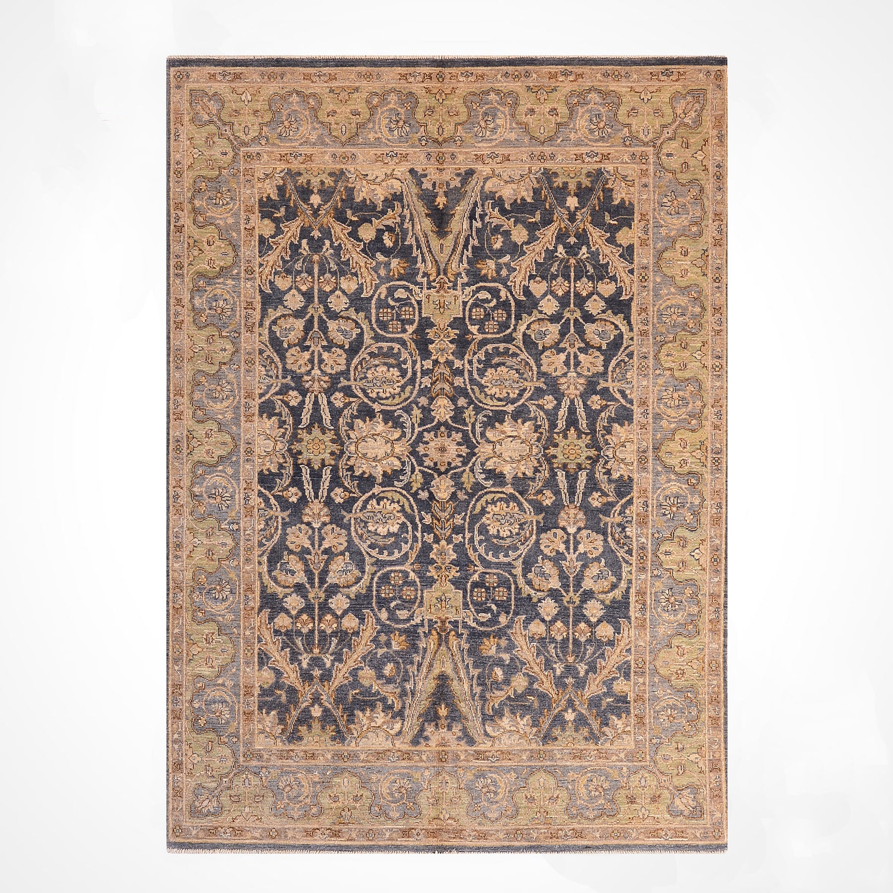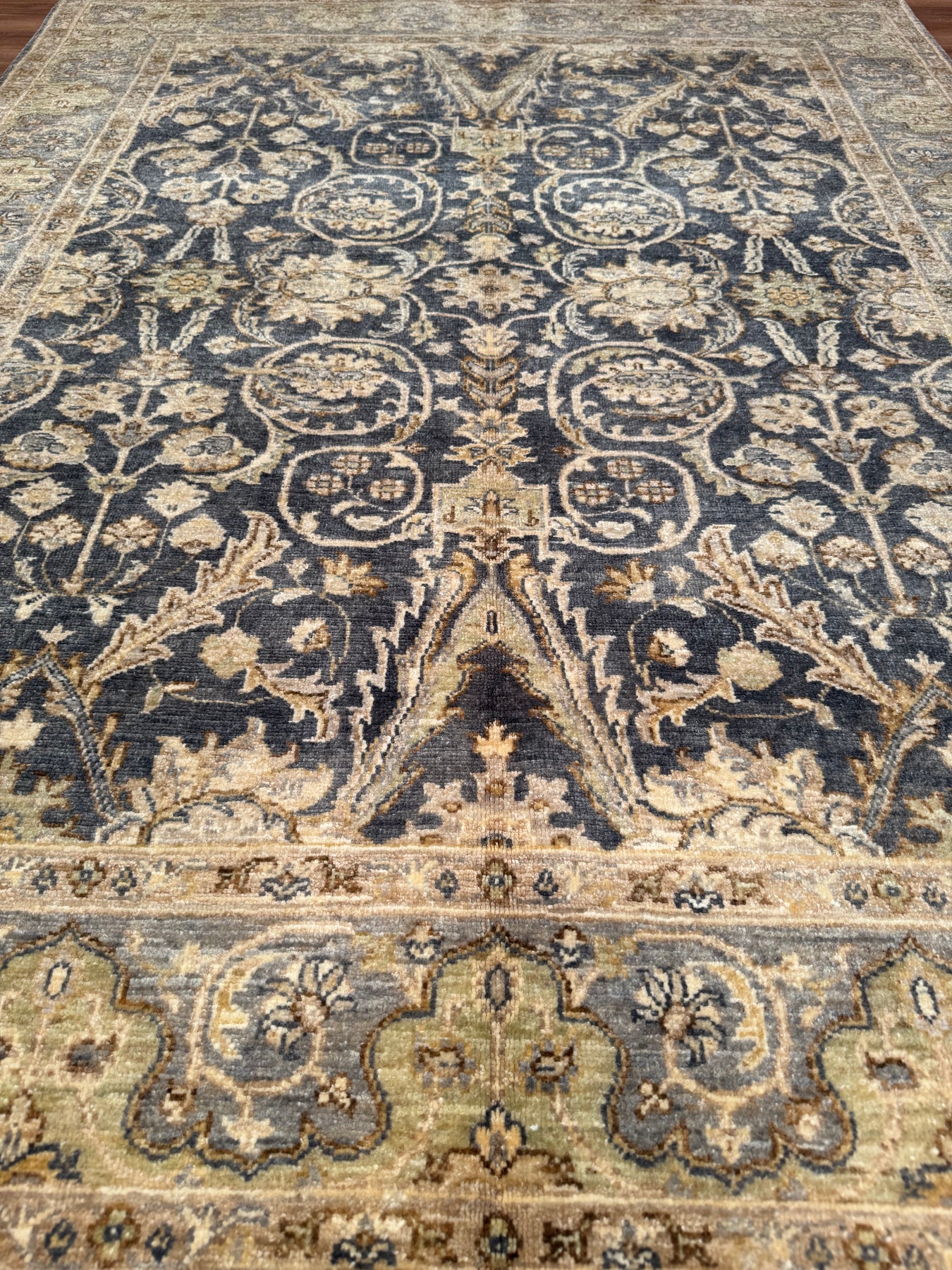Uşak Orijinal El Dokuması Gri Krem Kök Boya Yün Halı 152x196 2.98 Metrekare - 6x8 ft