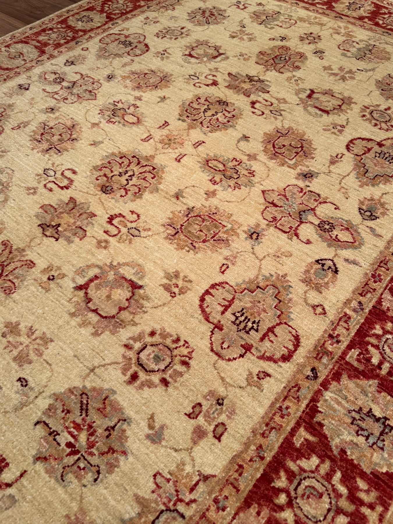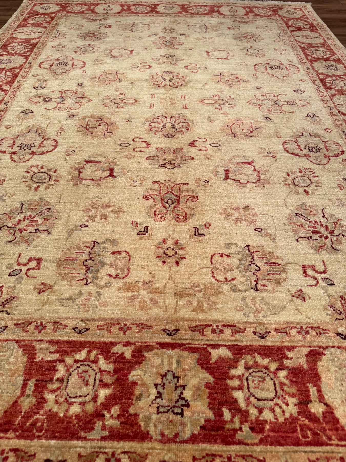 Uşak Orijinal El Dokuması Kırmızı Krem Kök Boya Yün Halı 147x204 3.00 Metrekare - 6x8 ft