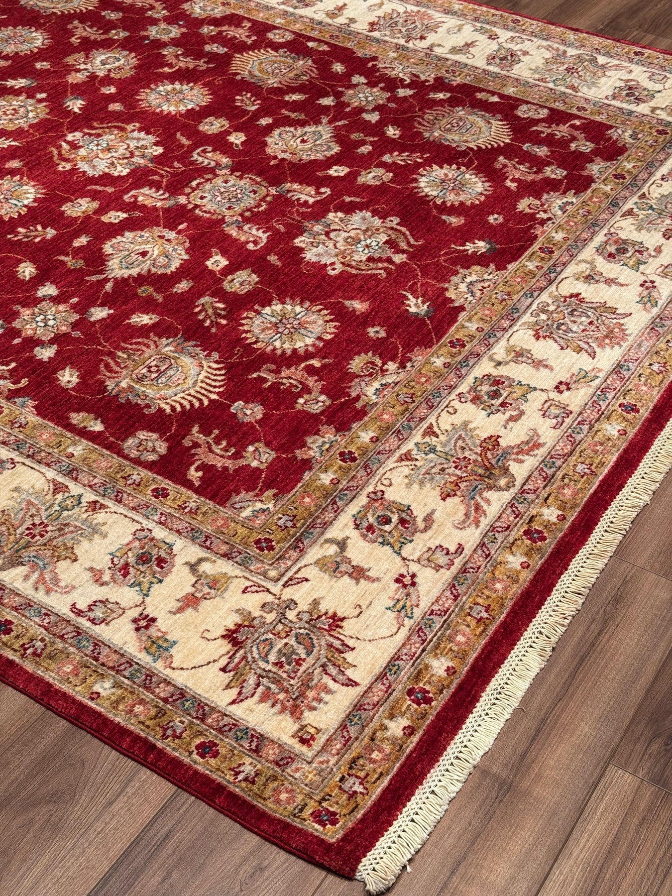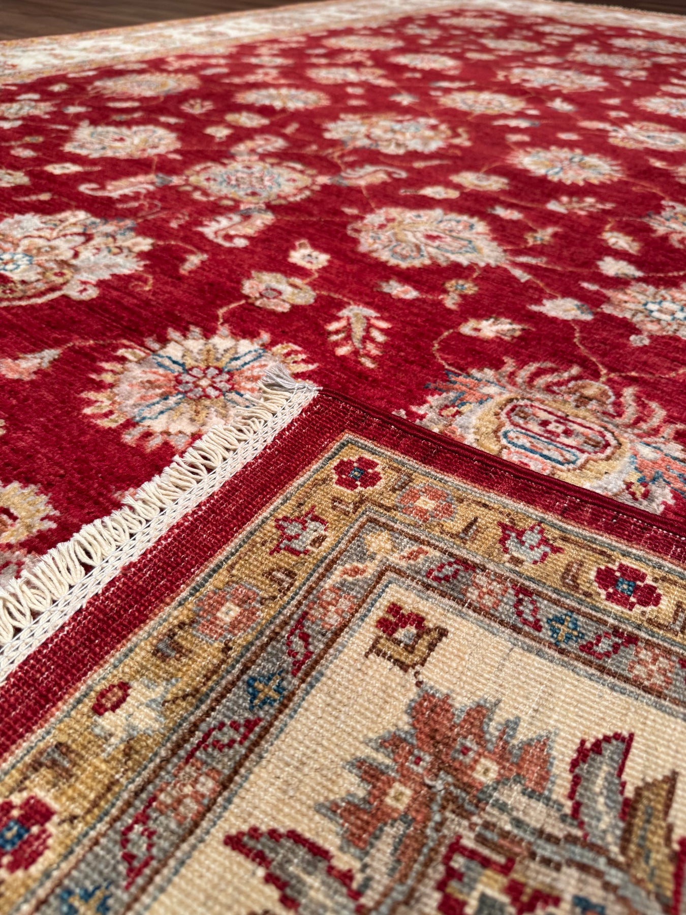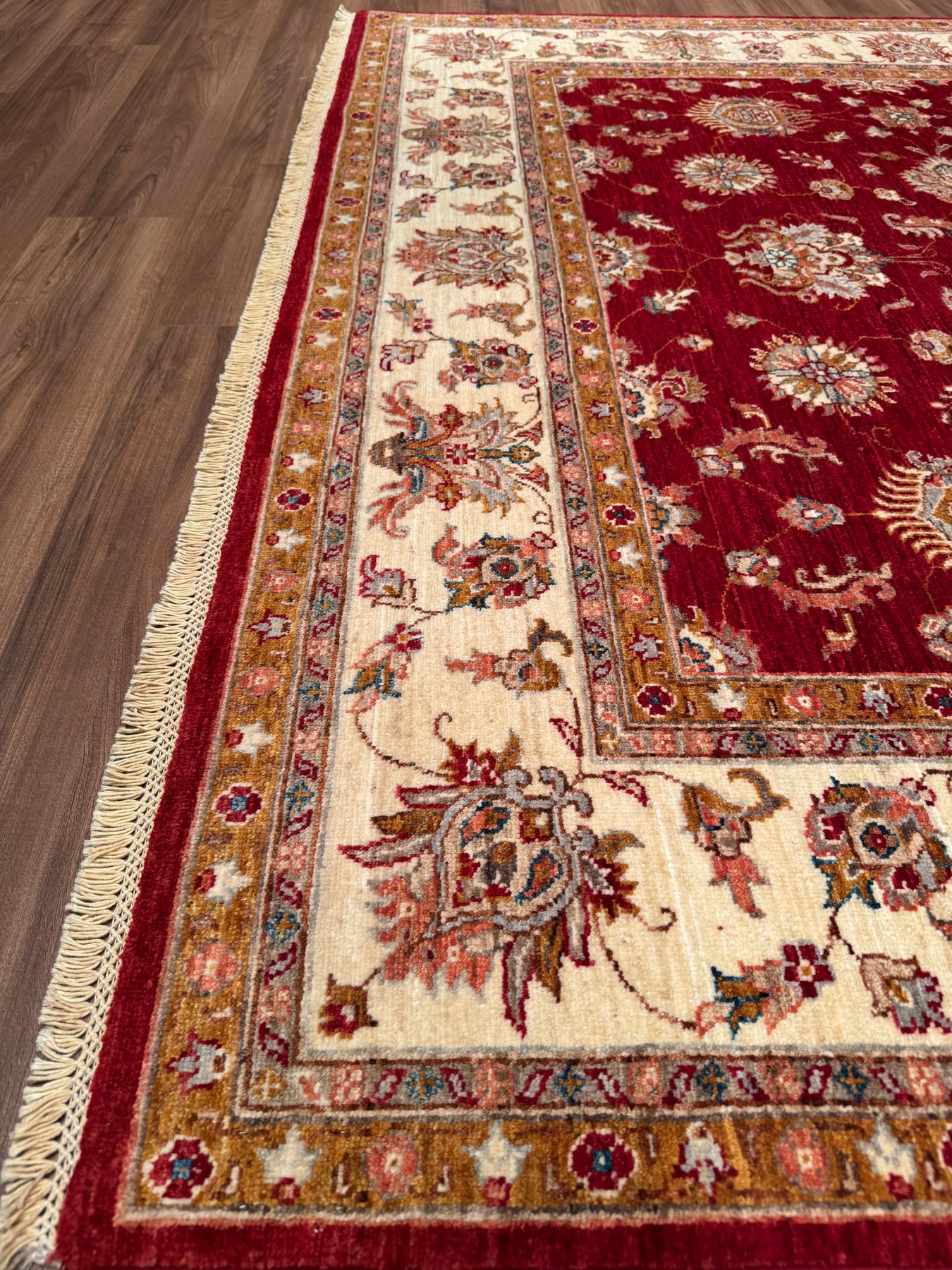 Uşak Orijinal El Dokuması Kırmızı Krem Kök Boya Yün Halı 211x296 6.25 Metrekare - 7x10 ft