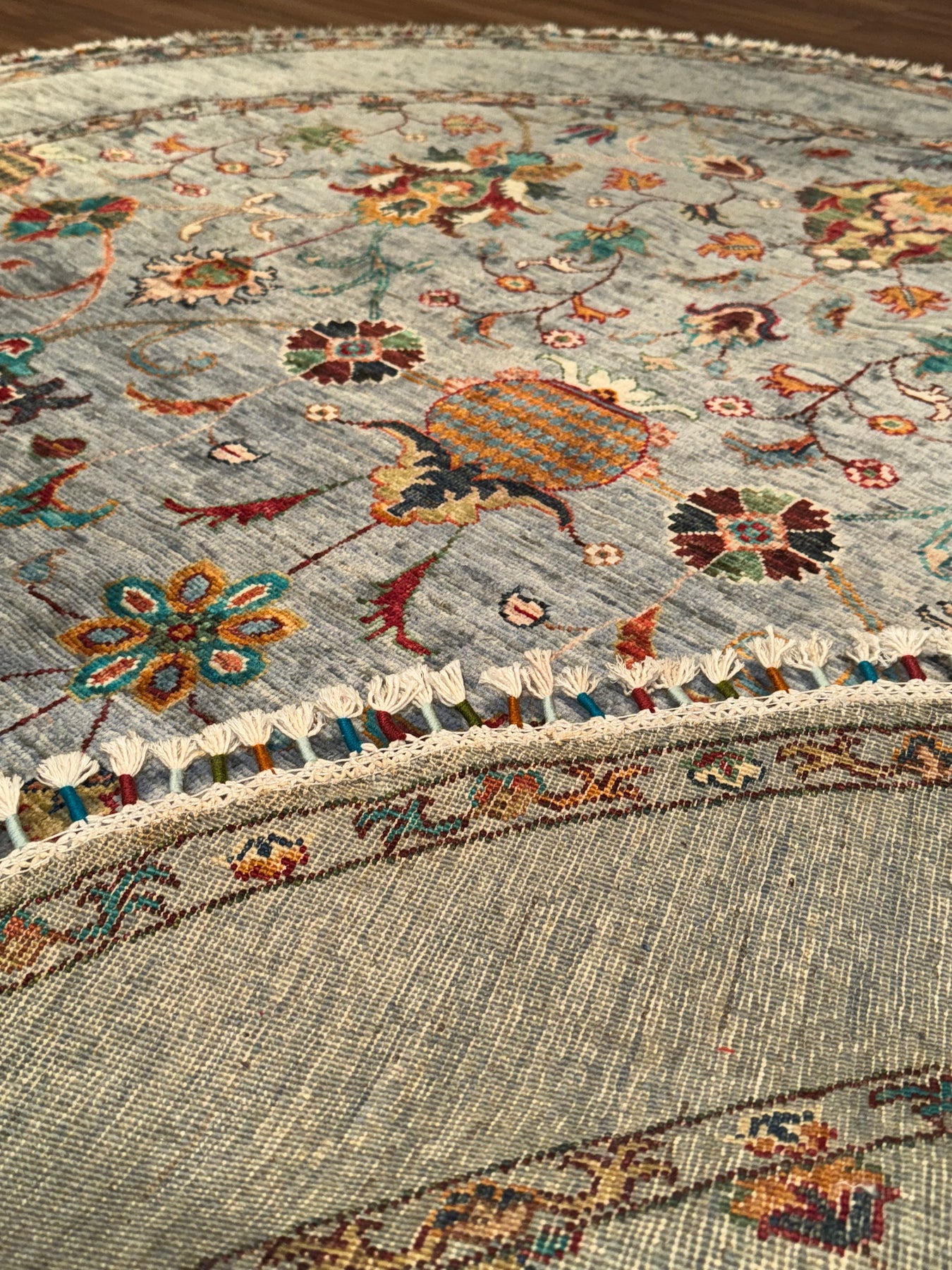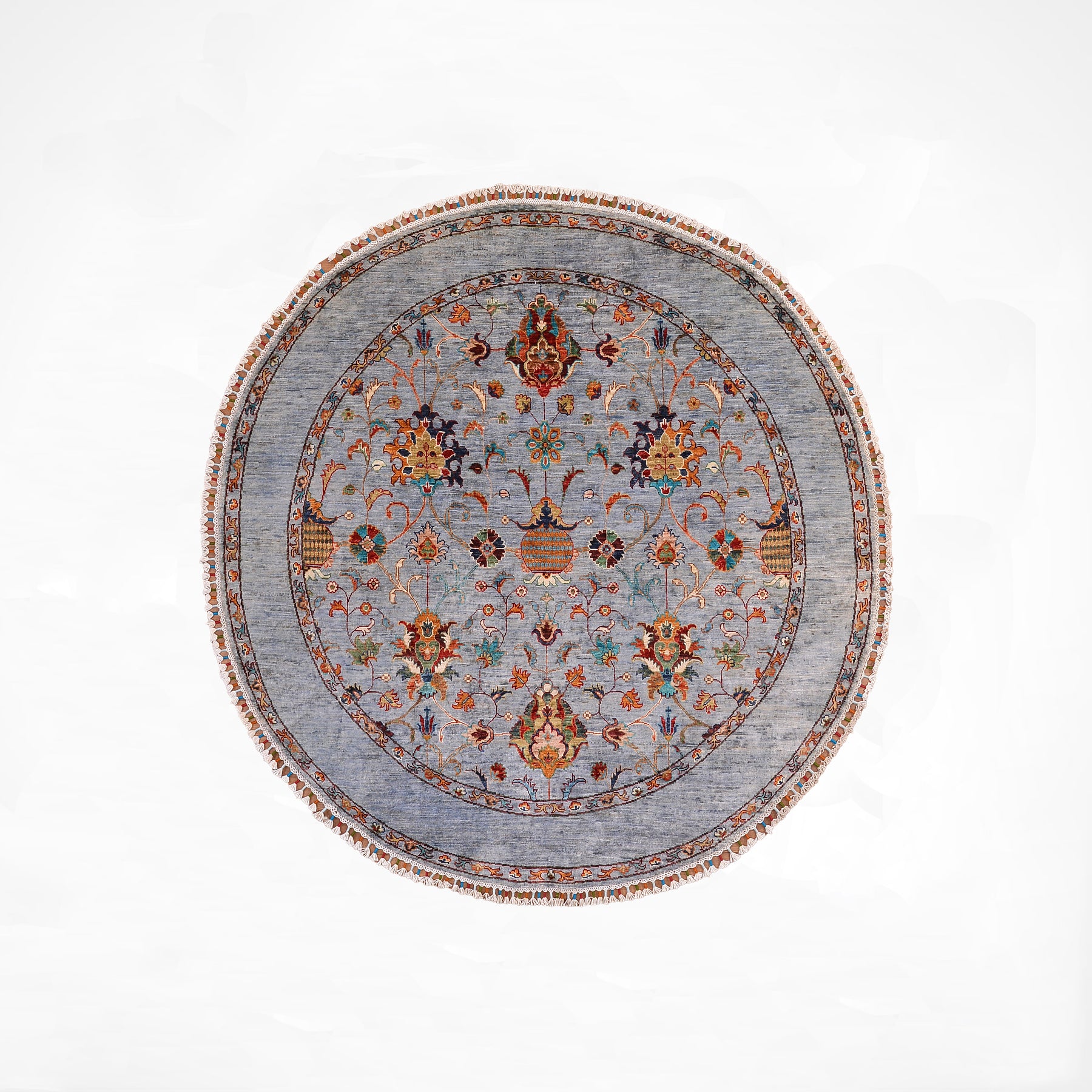 Sultani Binbirgece Yuvarlak Orijinal El Dokuması Gri Kök Boya Yün Halı 167x172 2.87 Metrekare - 5x5 ft